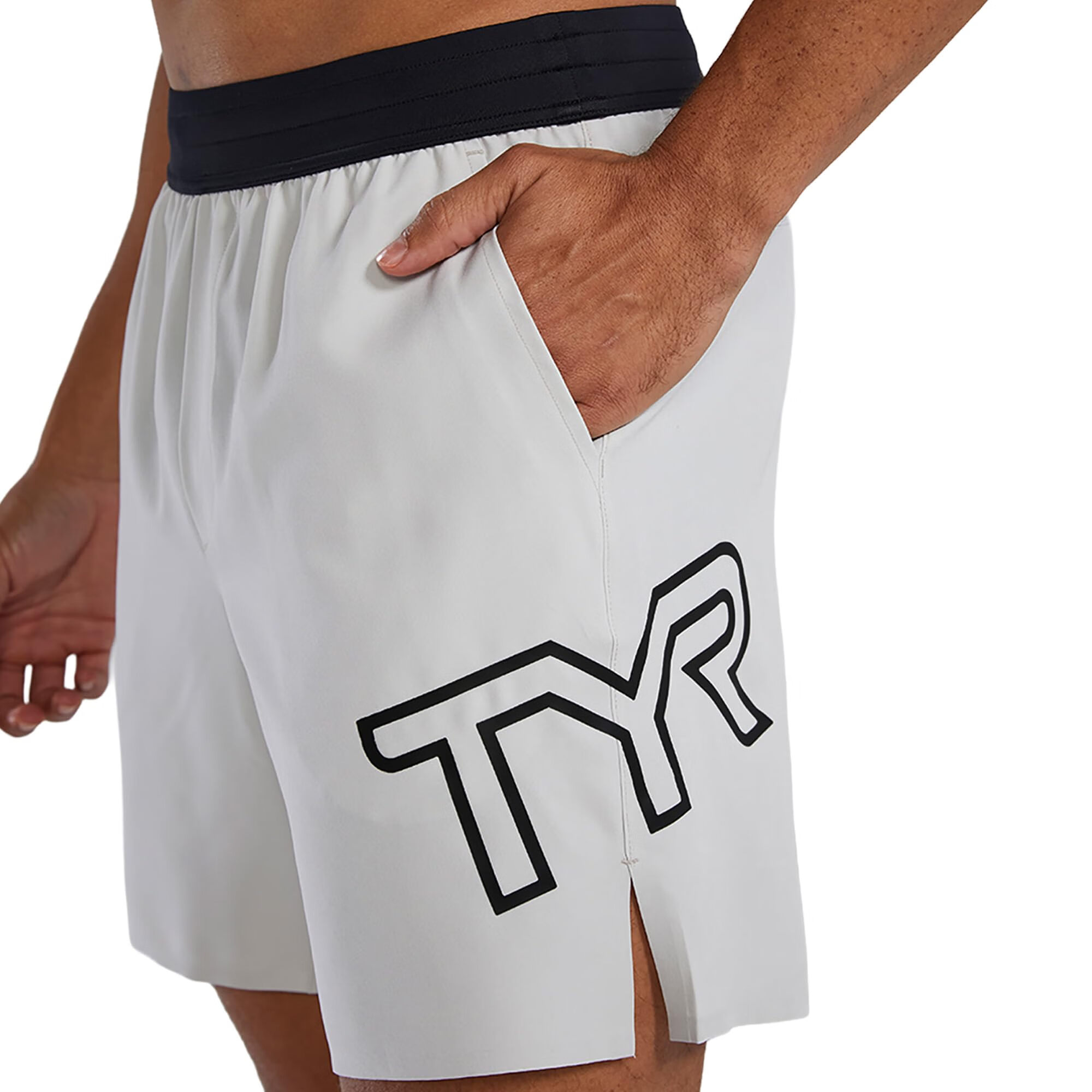 TYR 男式运动性能锻炼无衬里短裤 7 英寸 黑色/标志 L