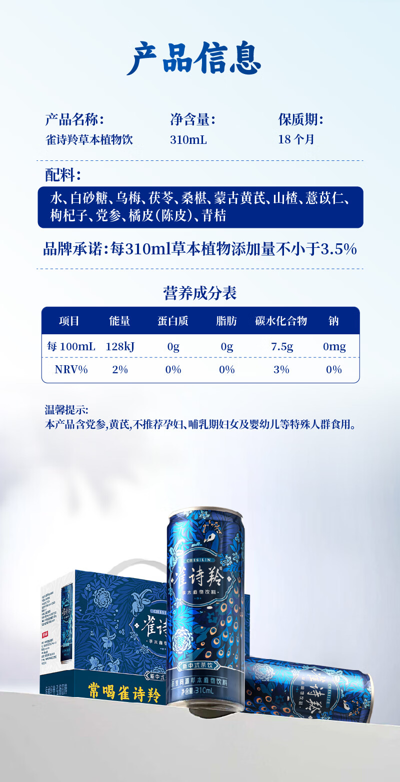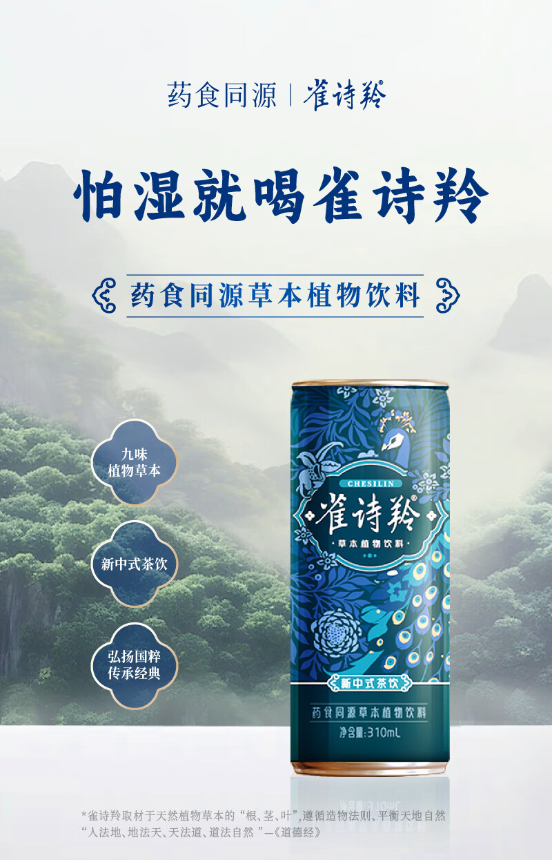 雀诗羚草本植物饮料解腻清爽祛养生湿健康药食同源饮品310ml20罐