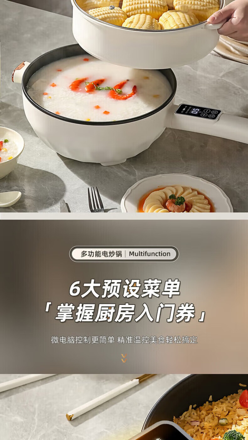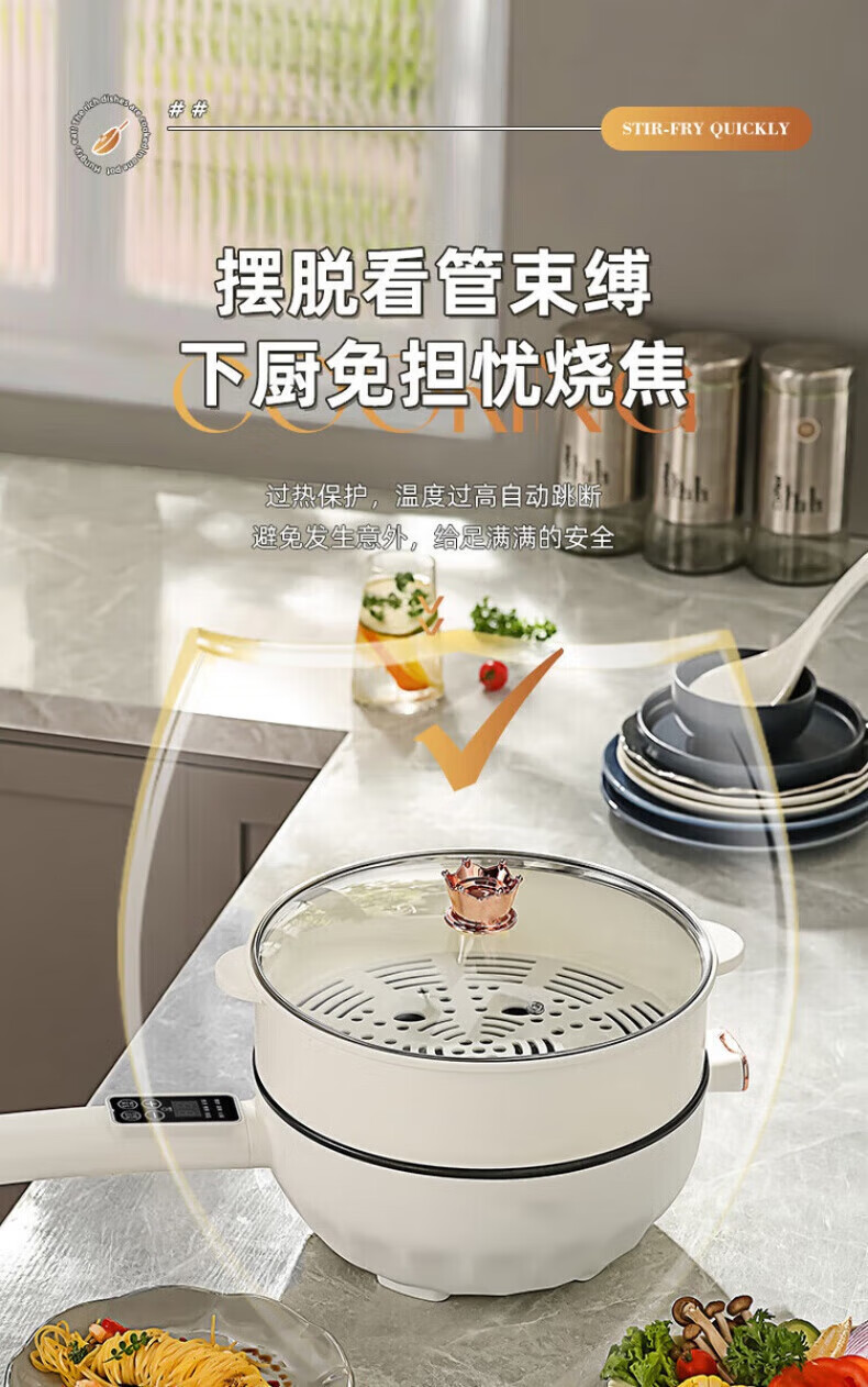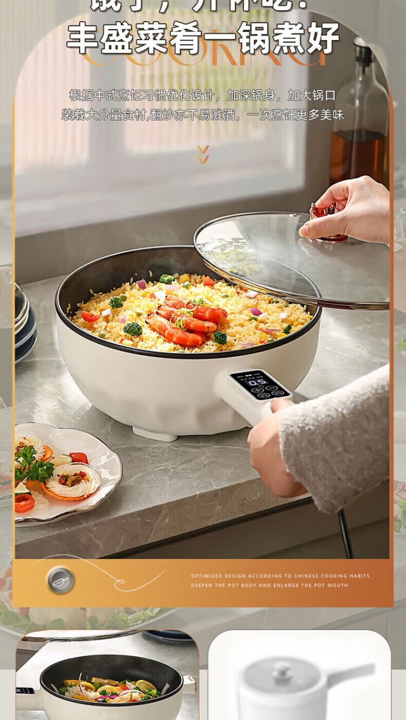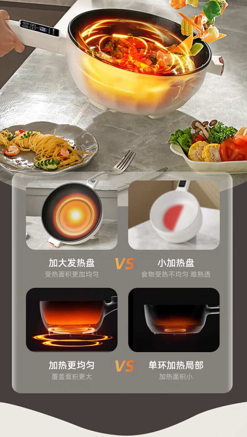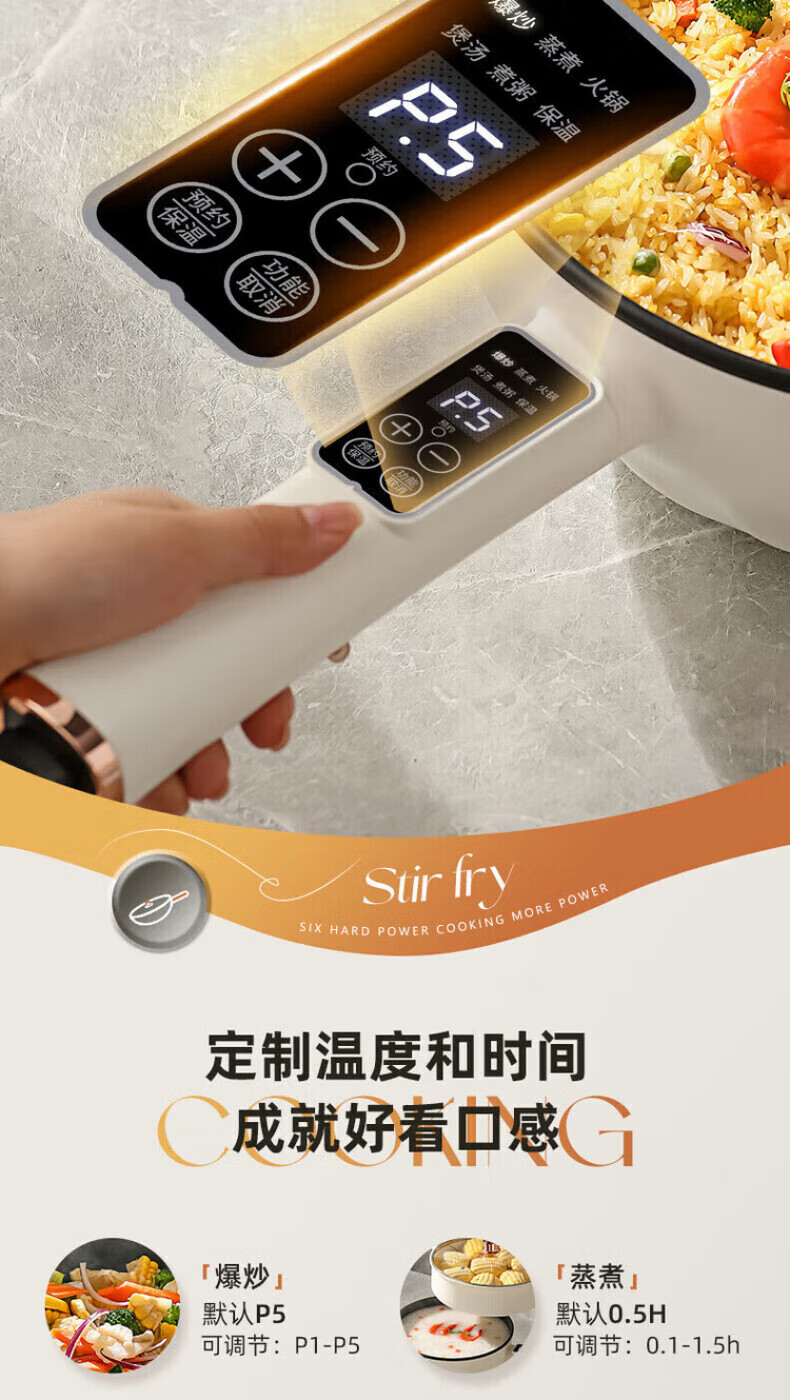 德国2025新款电炒锅不粘锅一体插电多功能铁锅3-4-1-2个人炒菜用 智能款不粘锅[煎炒涮煮]送木 5L