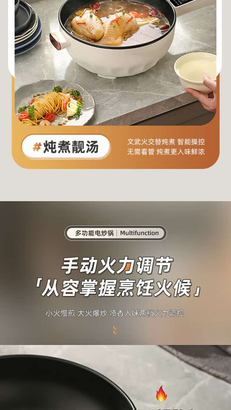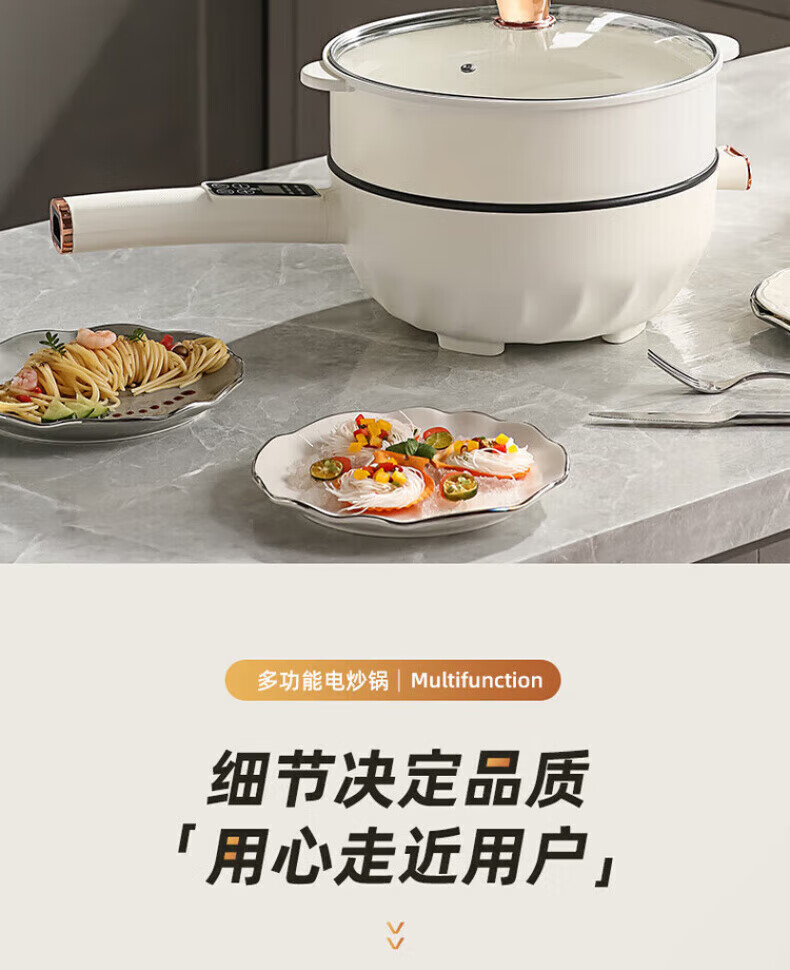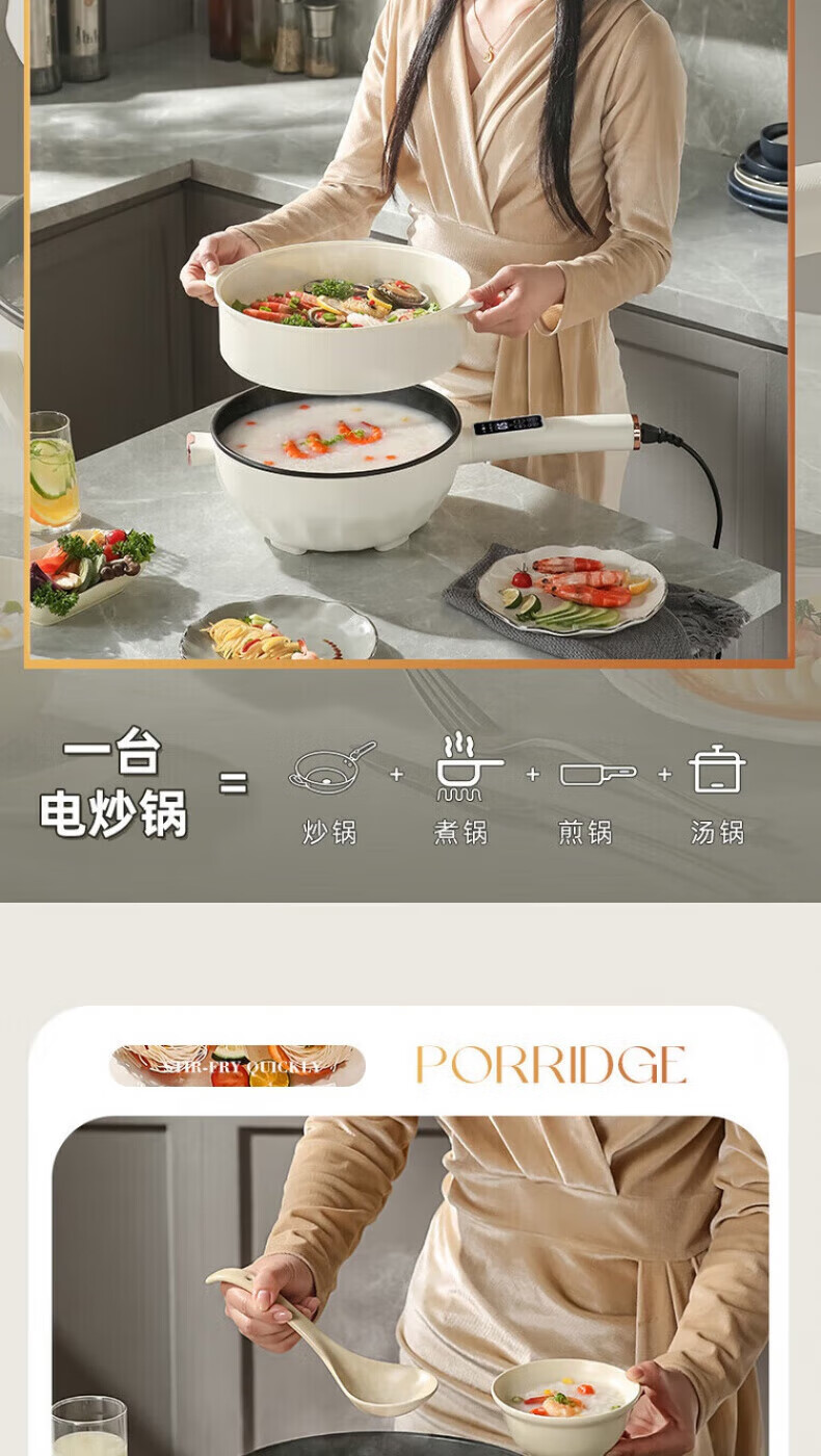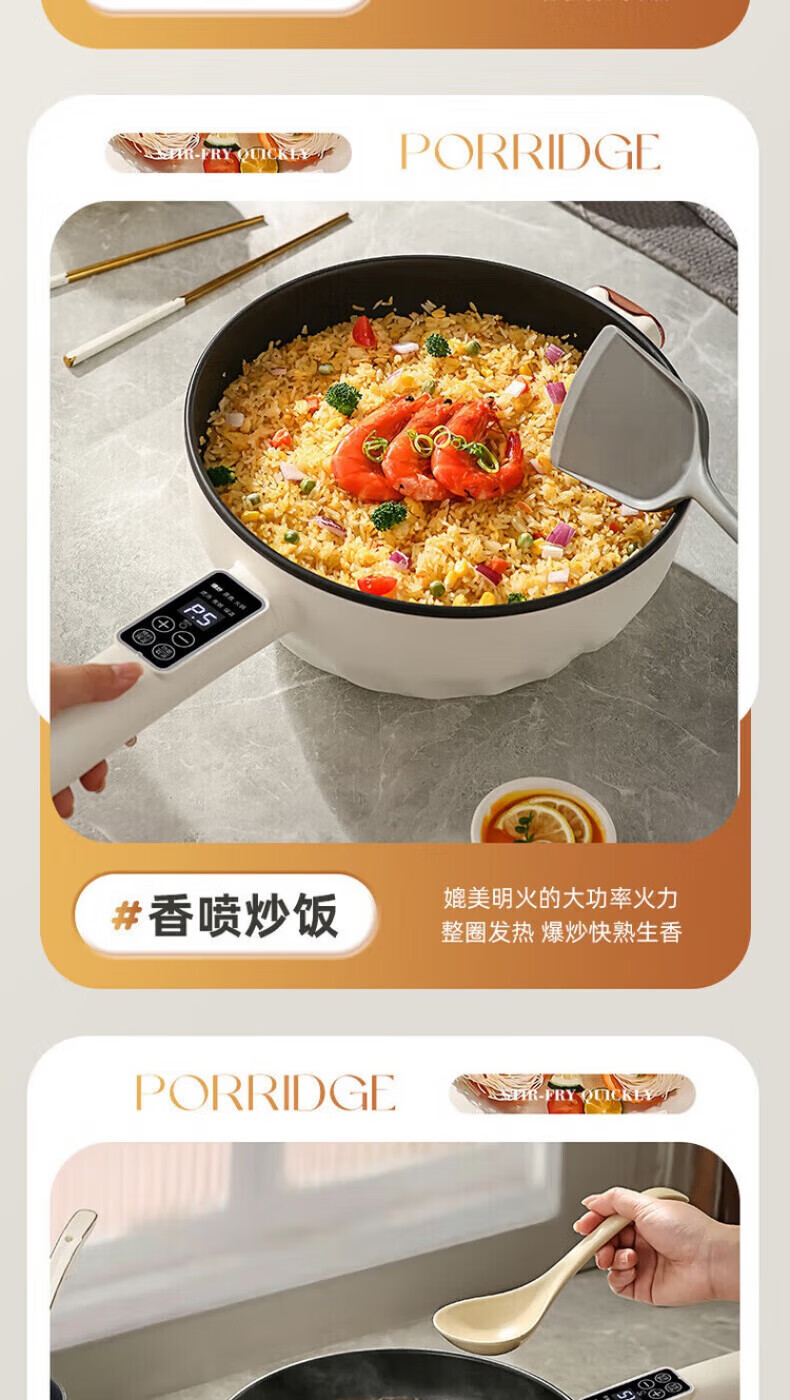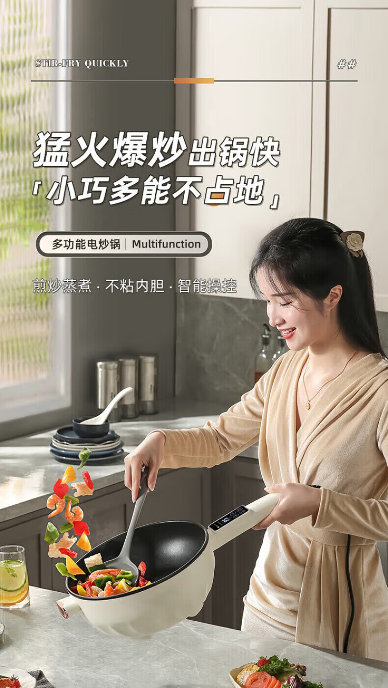 德国2025新款电炒锅不粘锅一体插电多功能铁锅3-4-1-2个人炒菜用 智能款不粘锅[煎炒涮煮]送木 5L
