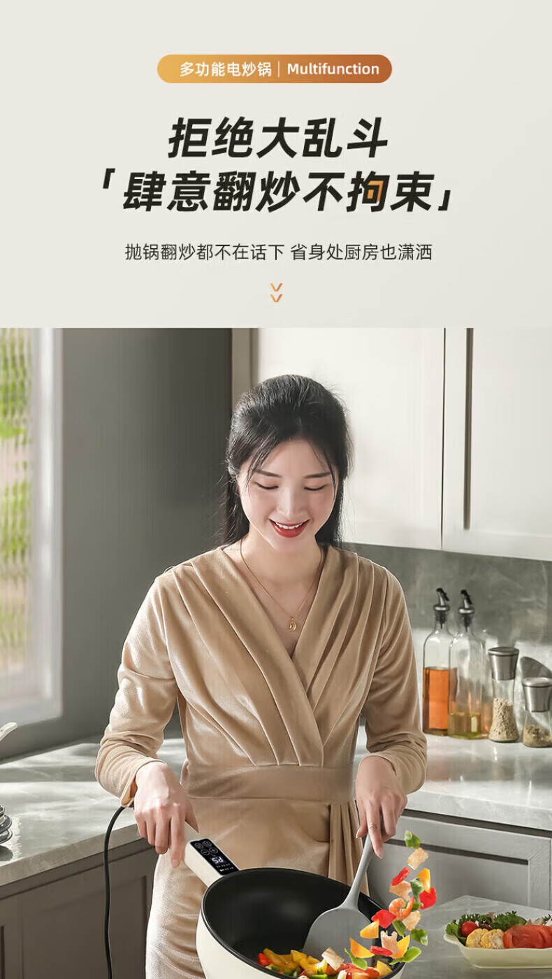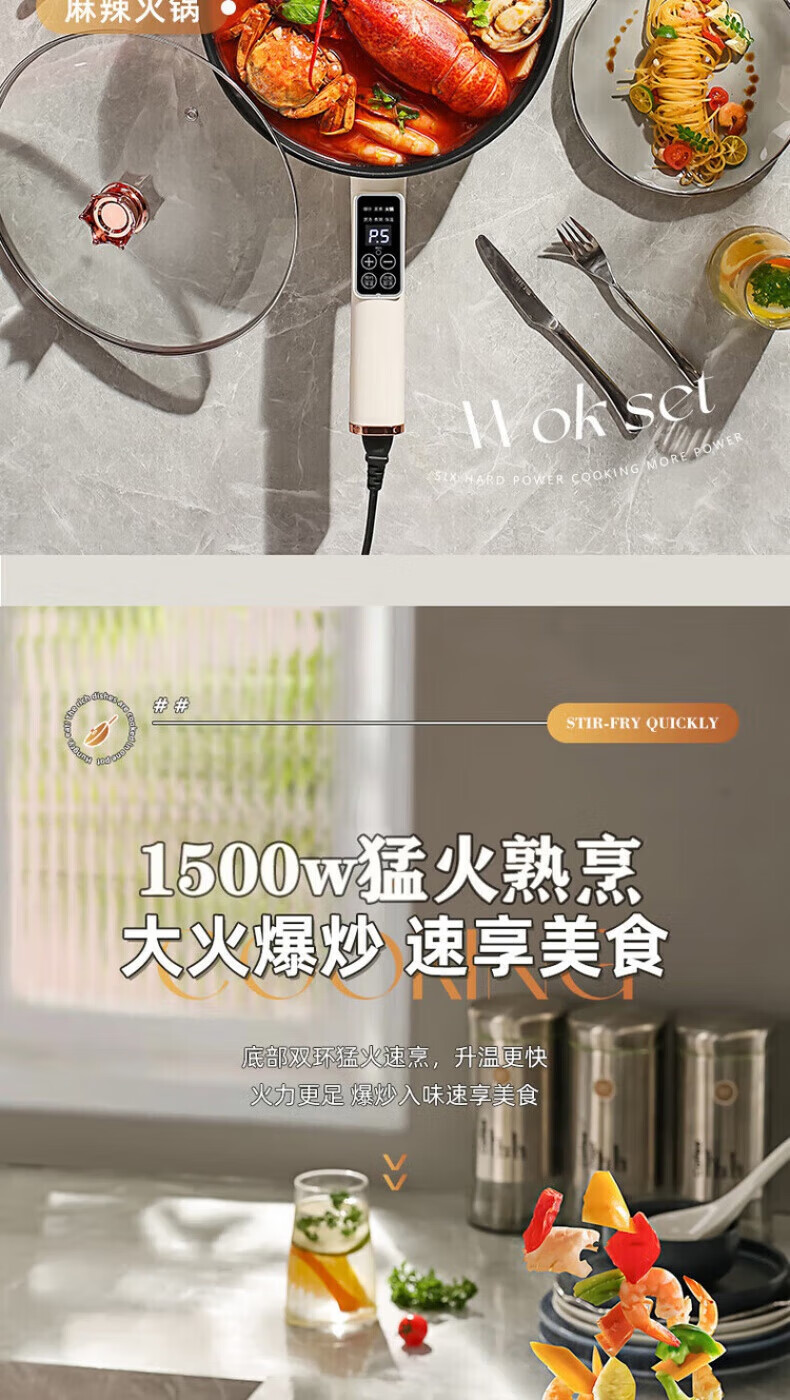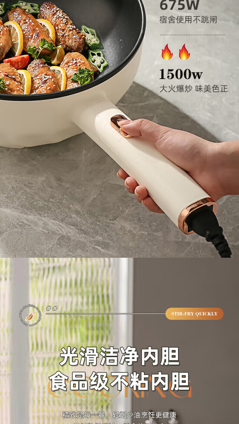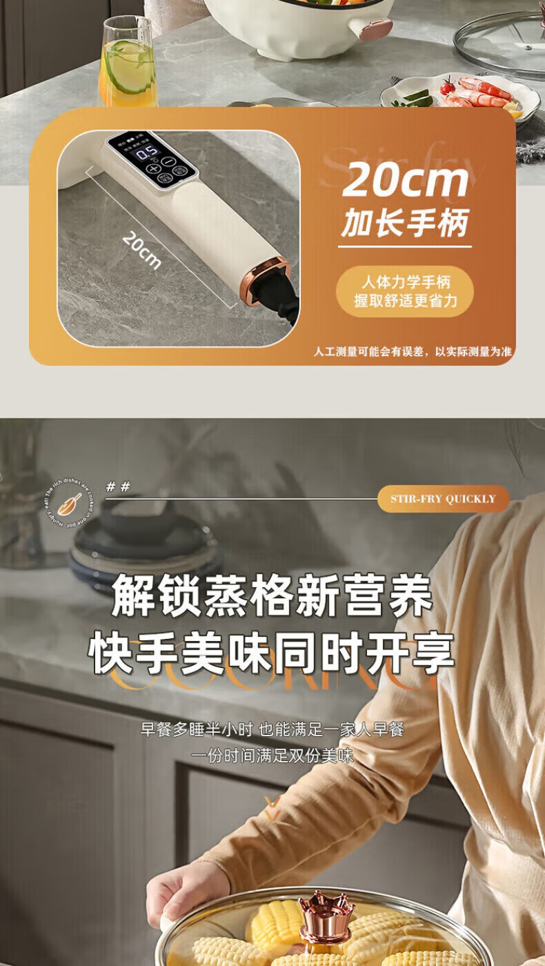 德国2025新款电炒锅不粘锅一体插电多功能铁锅3-4-1-2个人炒菜用 智能款不粘锅[煎炒涮煮]送木 5L