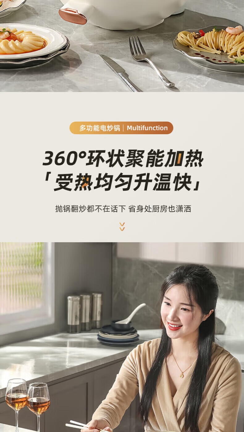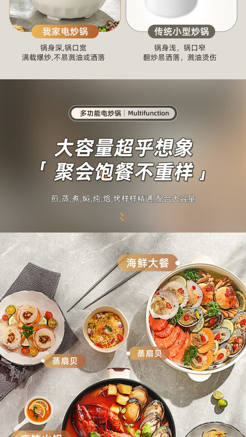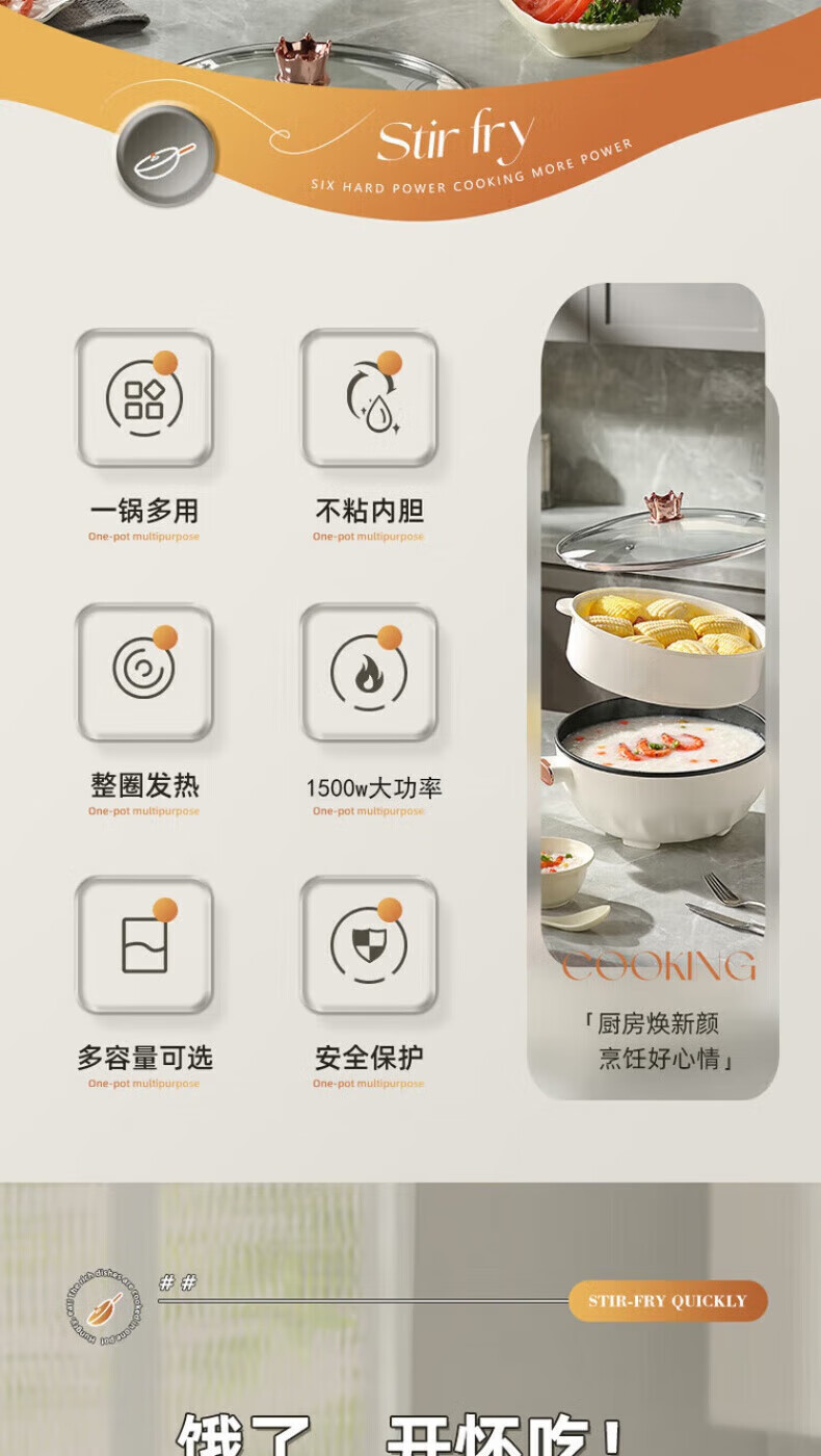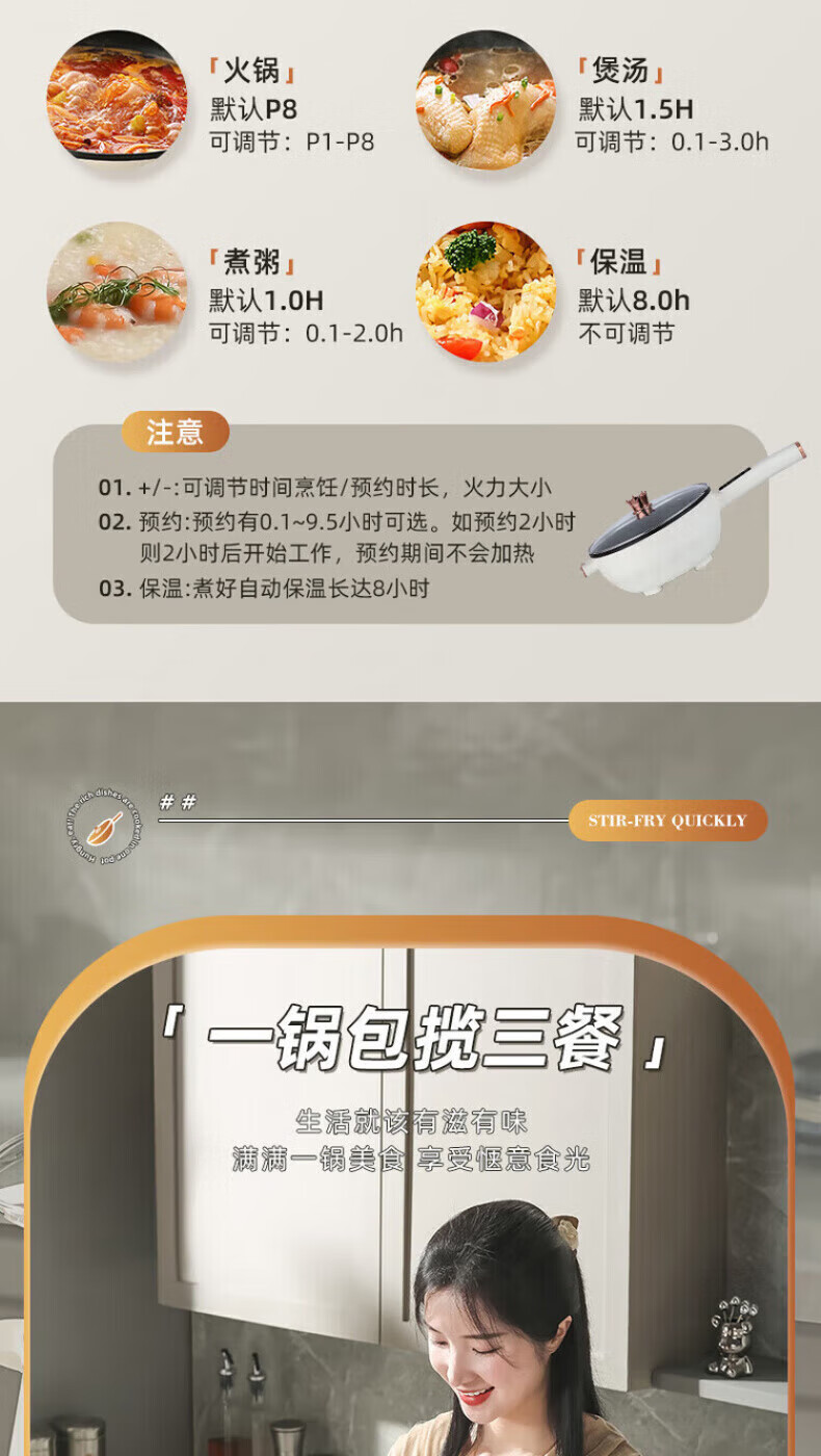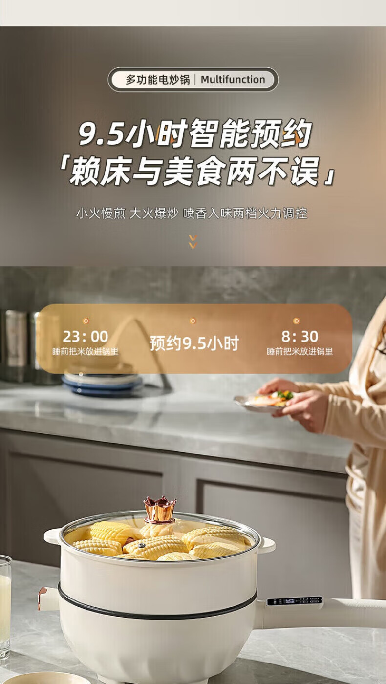 德国2025新款电炒锅不粘锅一体插电多功能铁锅3-4-1-2个人炒菜用 智能款不粘锅[煎炒涮煮]送木 5L