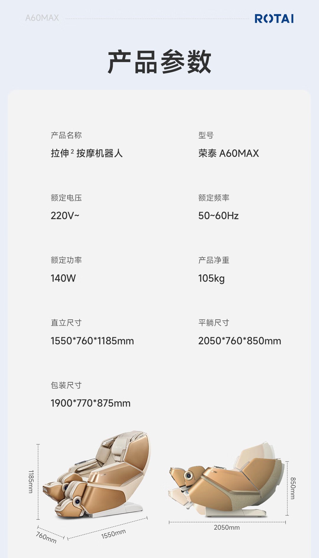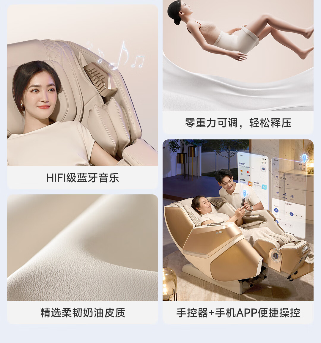 荣泰(RONGTAI)按摩椅家用全身豪华智能零重力太空舱2025十大品牌电动送父母生日礼物A60MAX摩登米色