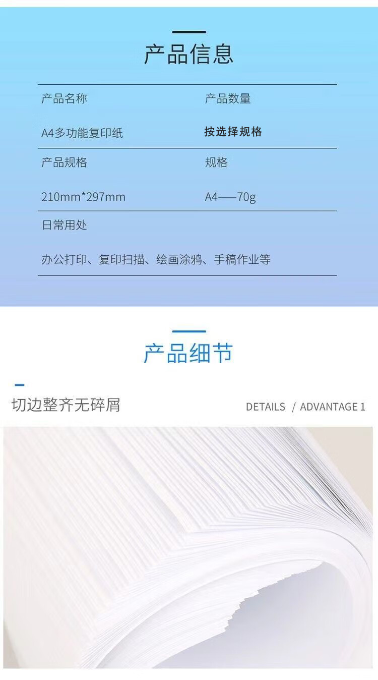 A4复印纸打印纸70g空白凭证A4白纸草稿纸画画纸双面便宜办公打印纸 A4-70g-50张/包