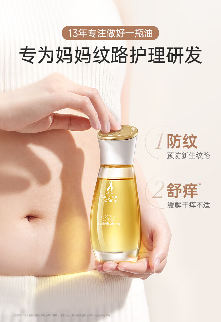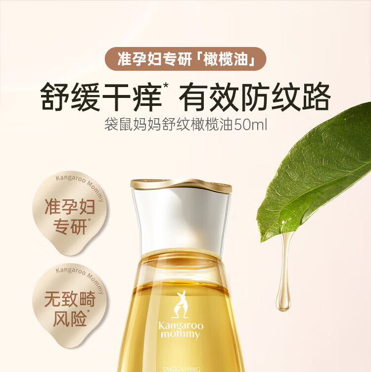 袋鼠妈妈(Kangaroo Mommy)妊娠油准孕妇橄榄油精华妊娠纹舒缓干痒预防腹纹紧致准孕期护肤品 【划算·到手110ml】橄榄油50ml*2