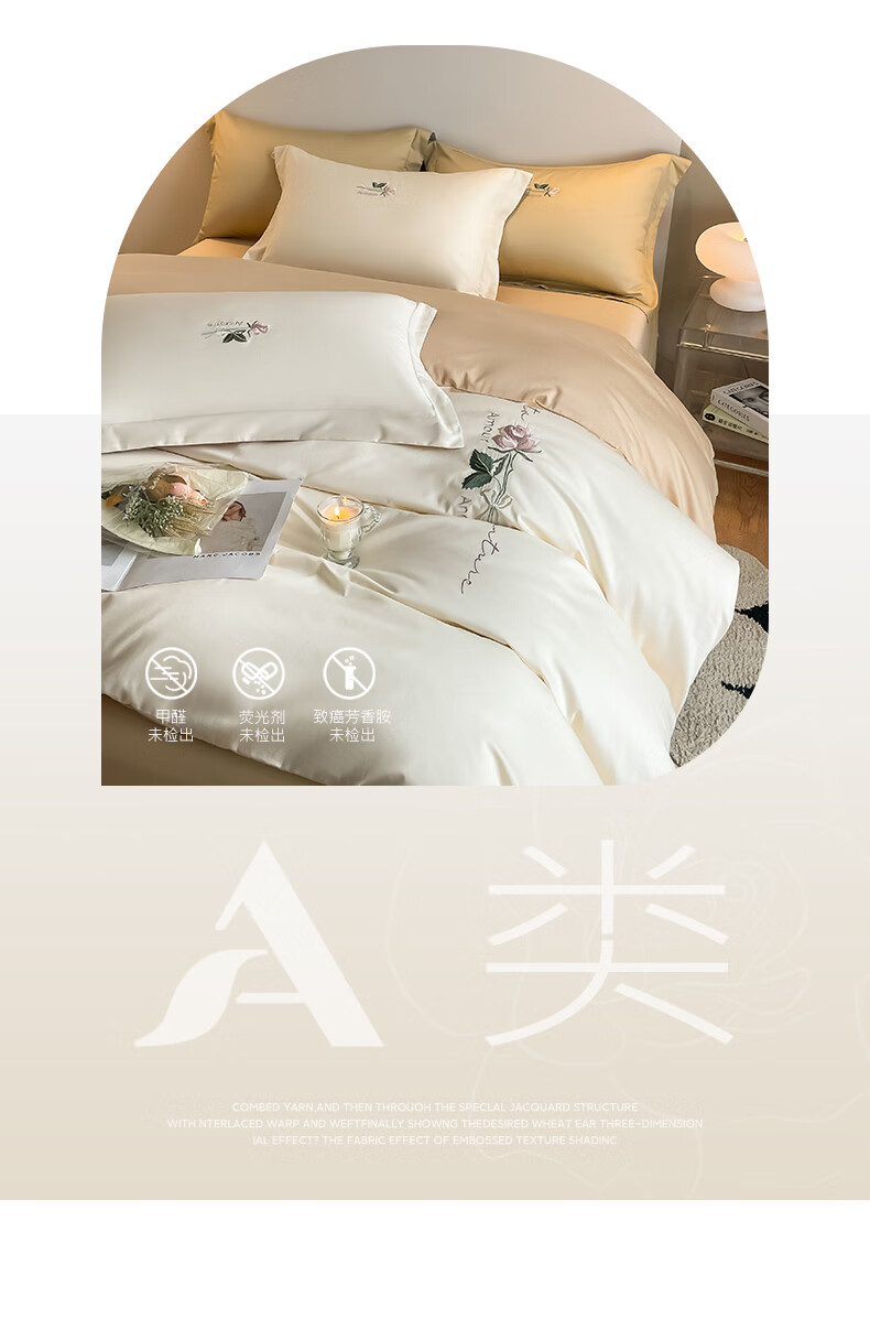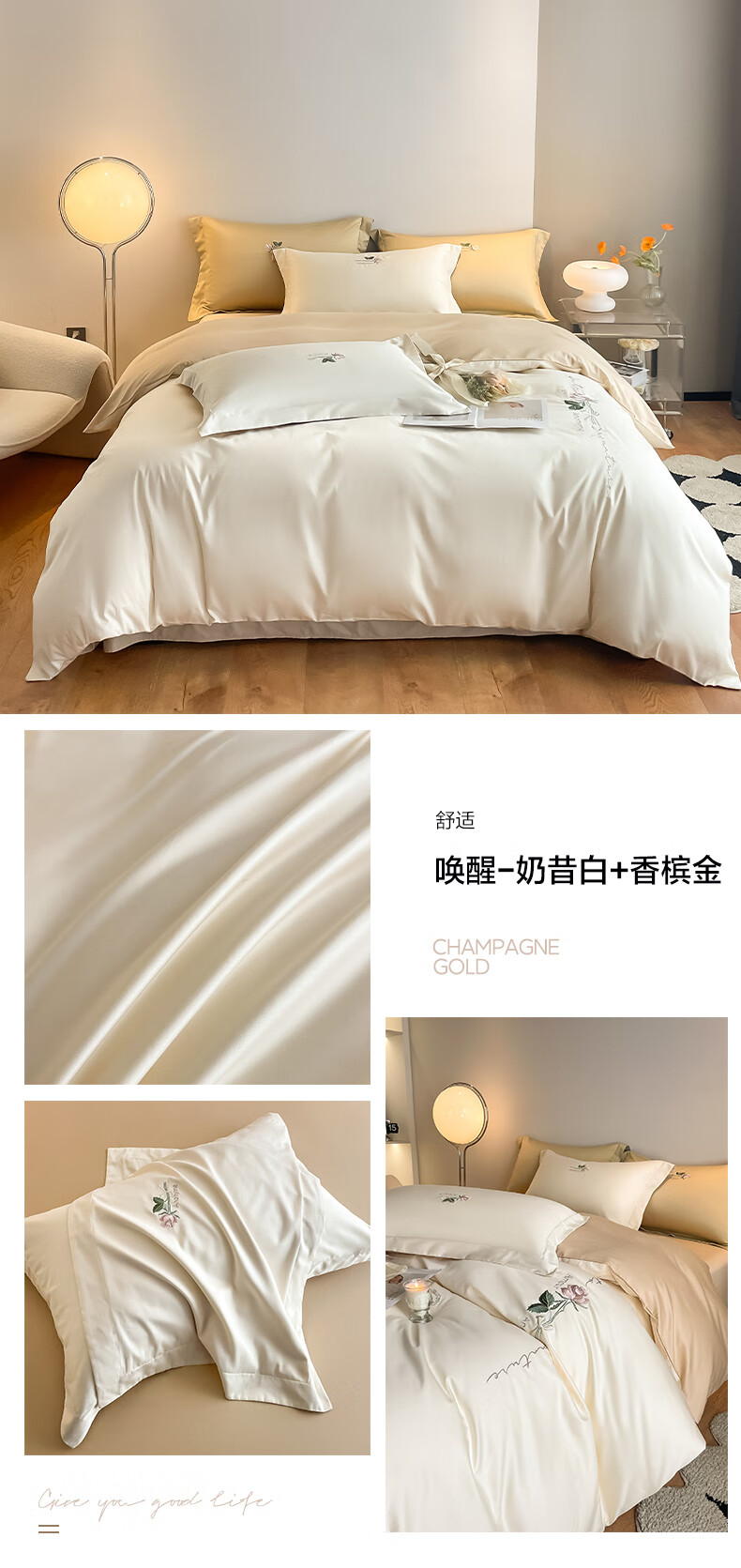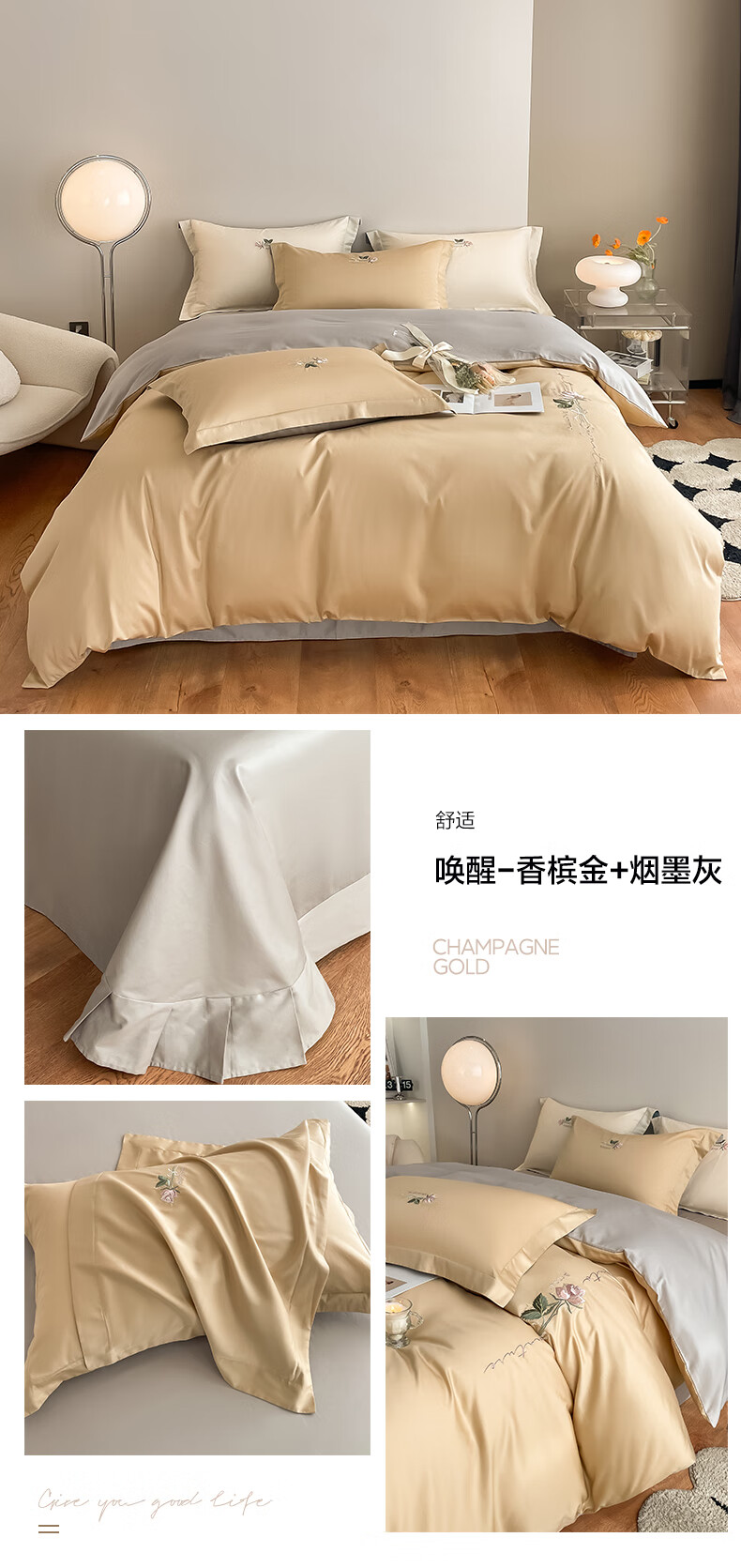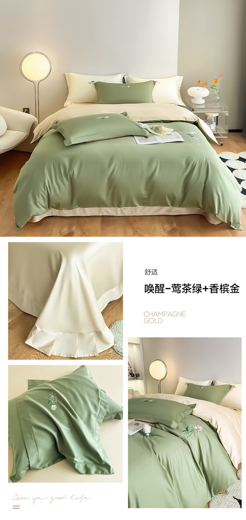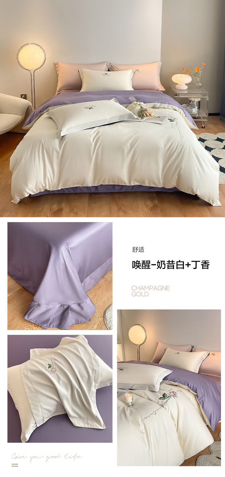 元族2025新款A类纯棉四件套轻奢刺绣全棉被套简约纯色四件套-唤醒 唤醒-天空蓝+茱萸粉 床单款 1.8m四件套