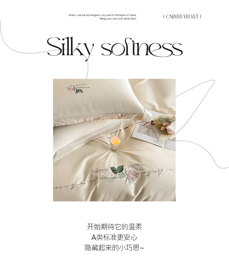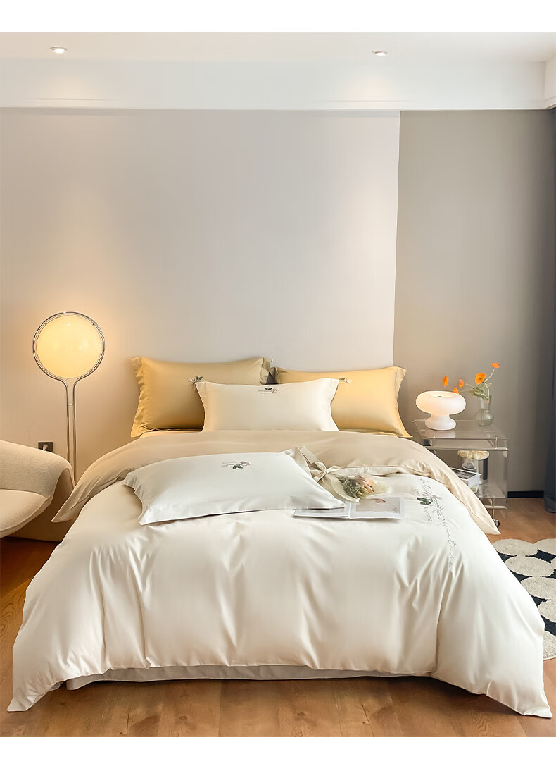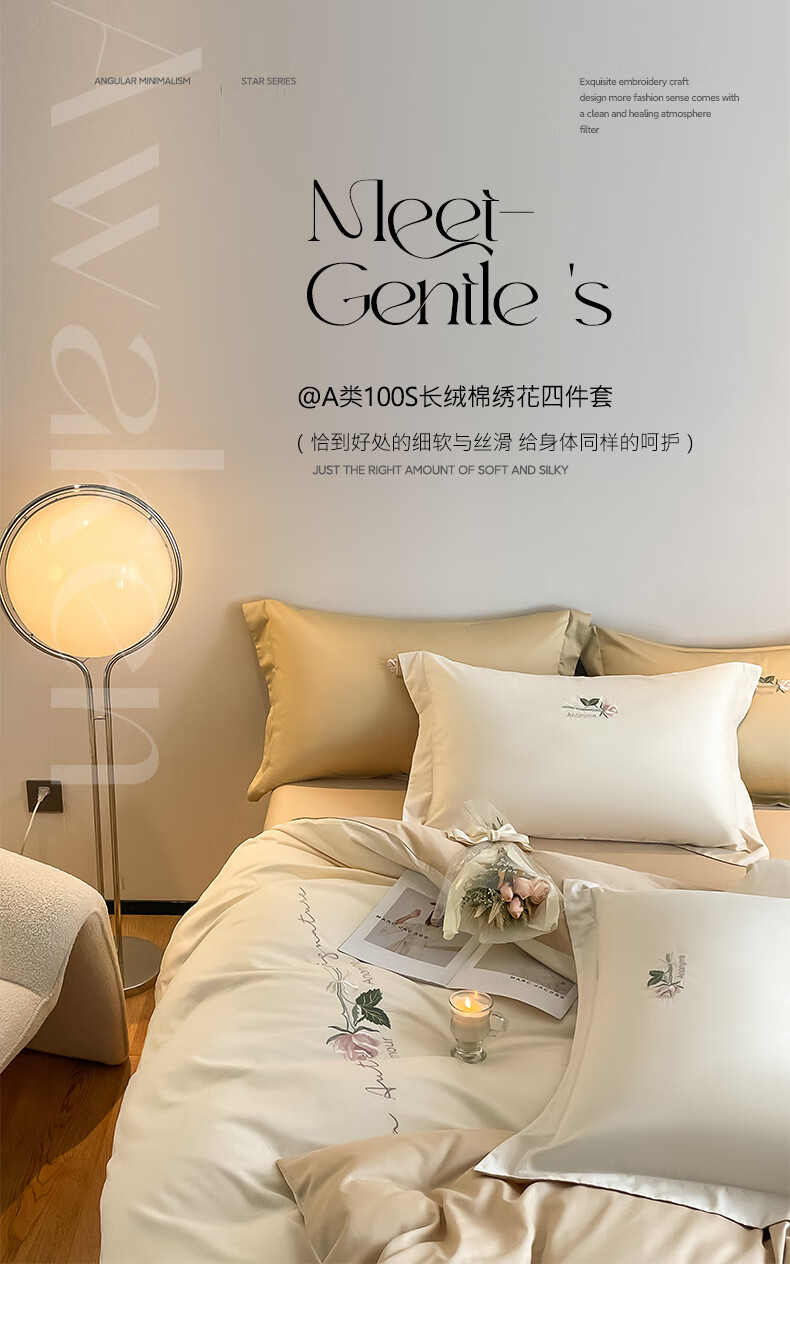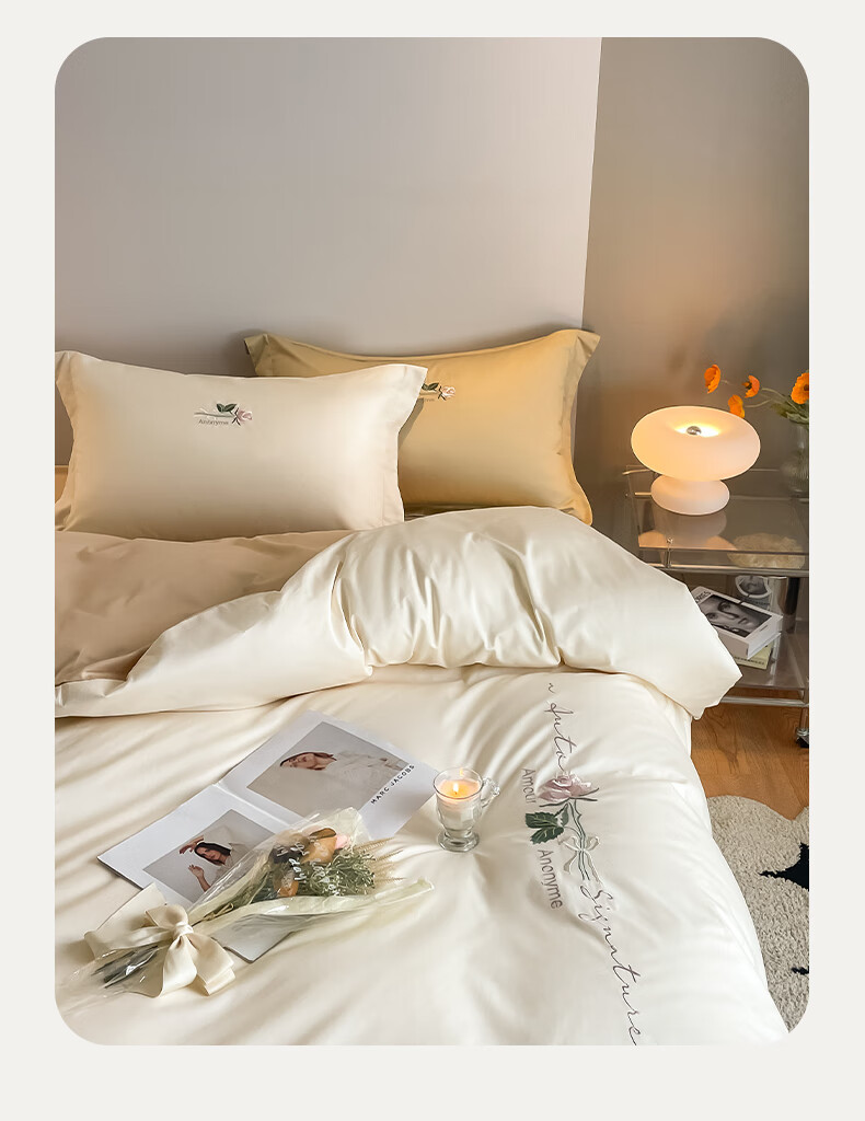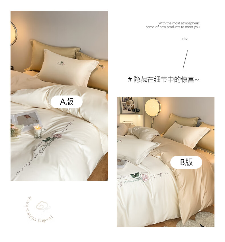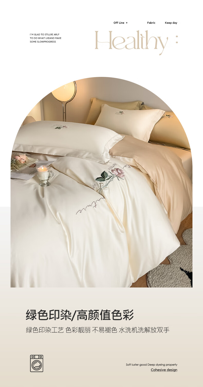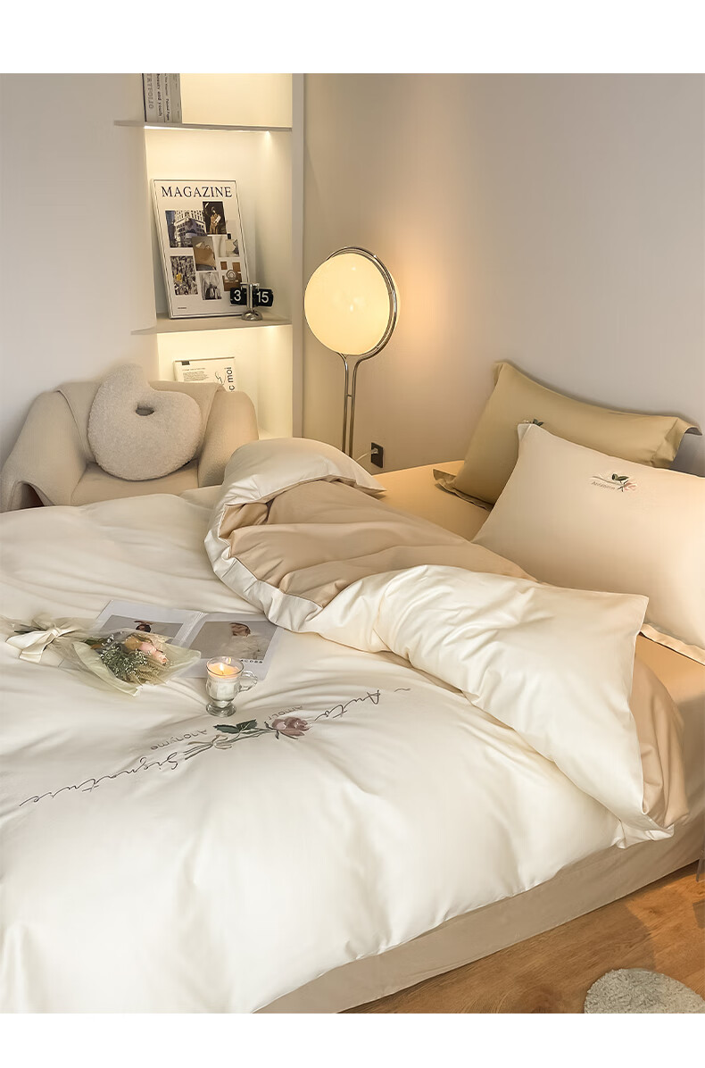 元族2025新款A类纯棉四件套轻奢刺绣全棉被套简约纯色四件套-唤醒 唤醒-天空蓝+茱萸粉 床单款 1.8m四件套