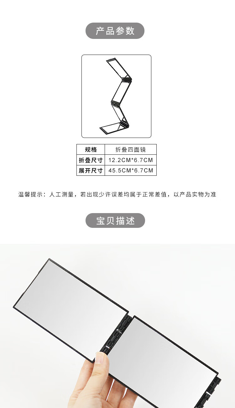 阿嚓热(ACARE)T镜子/折叠/四面A1vaq001-镜子化妆镜折叠便携随身梳妆镜学生镜子 折叠四面镜 1件