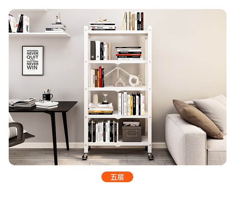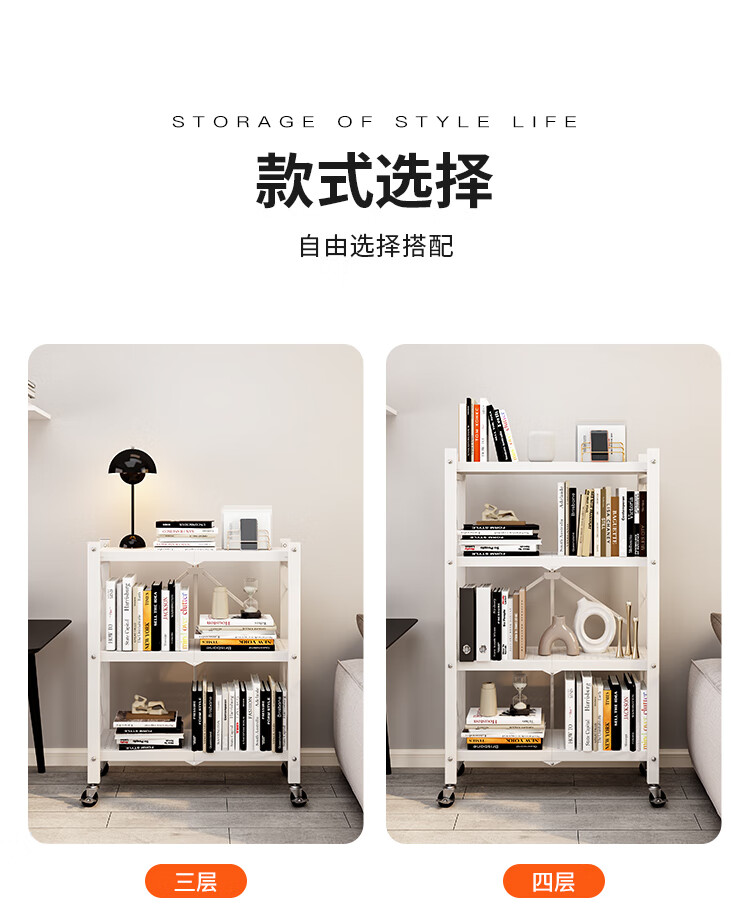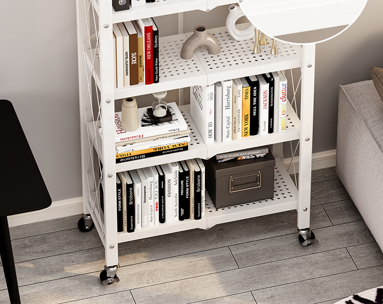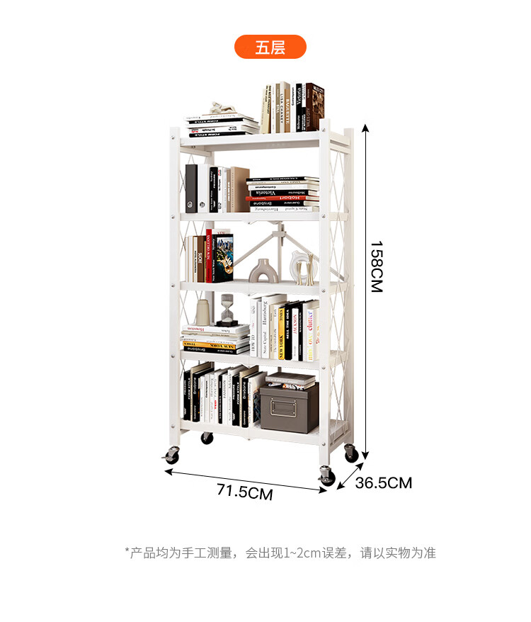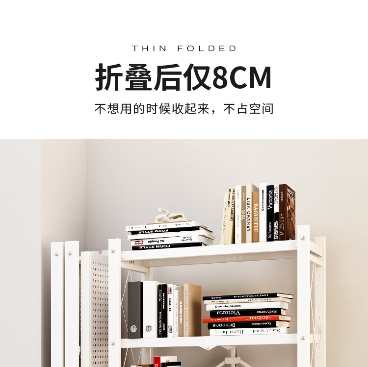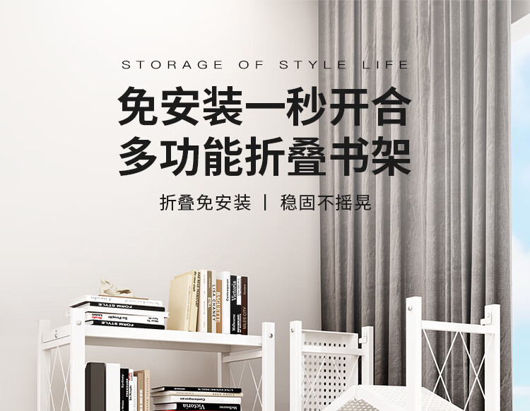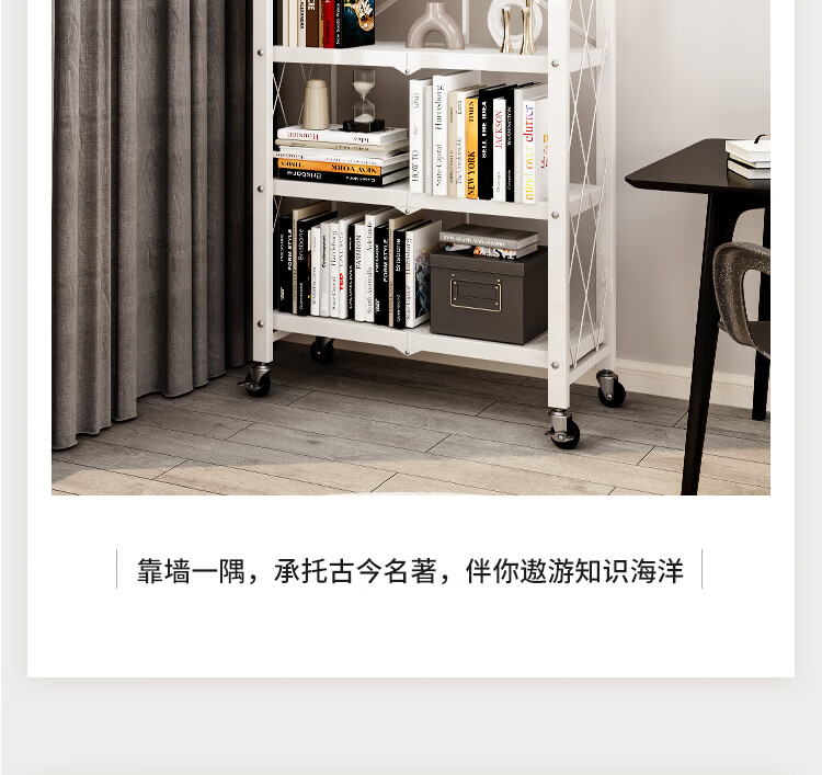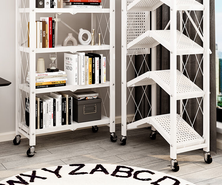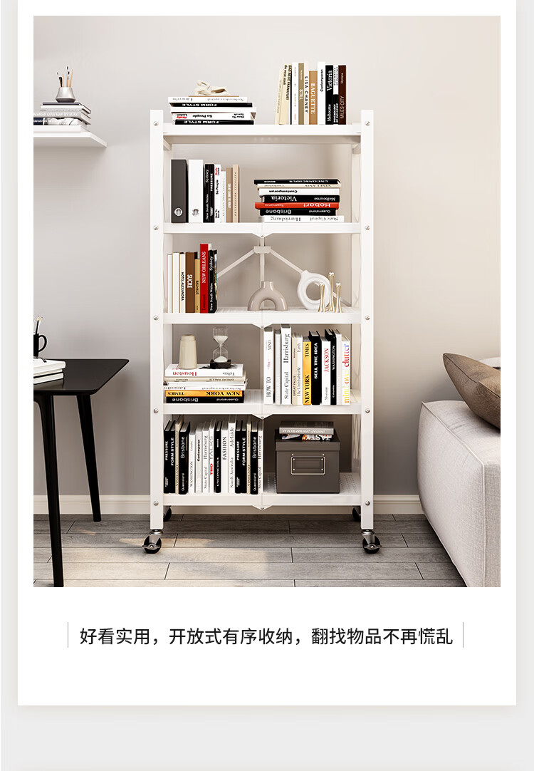 溢彩年华 书架落地客厅免安装置物架可移动折叠铁艺书柜书本收纳架子6060