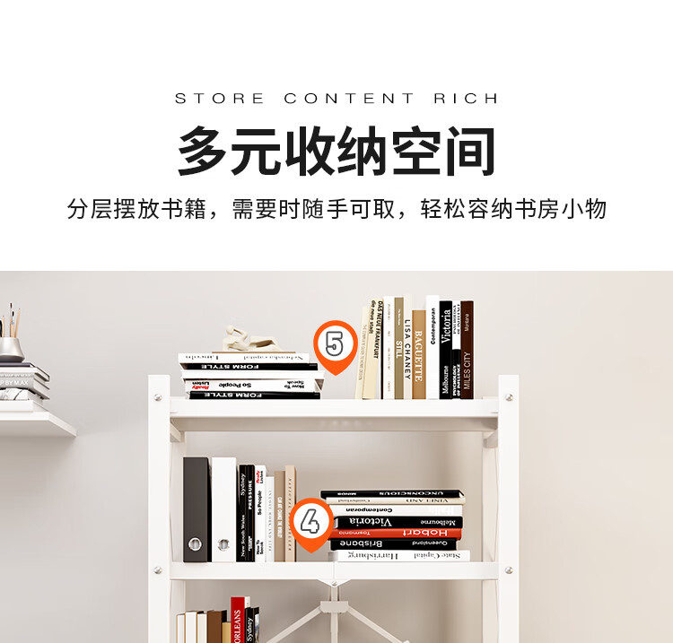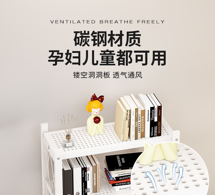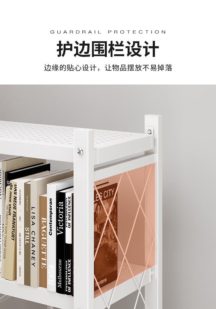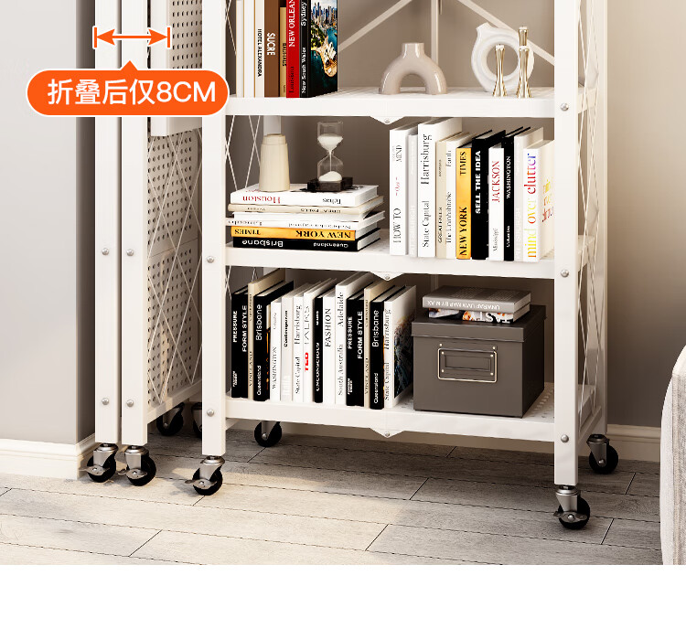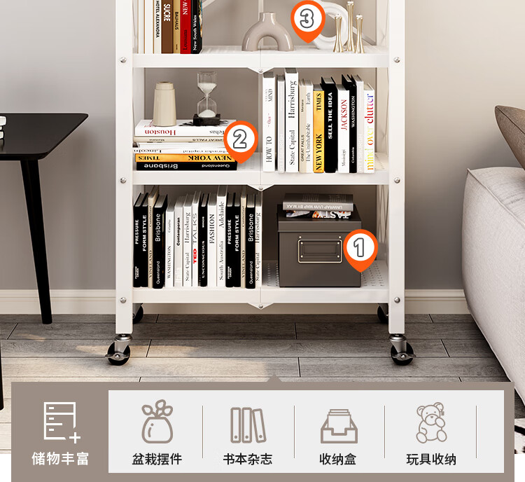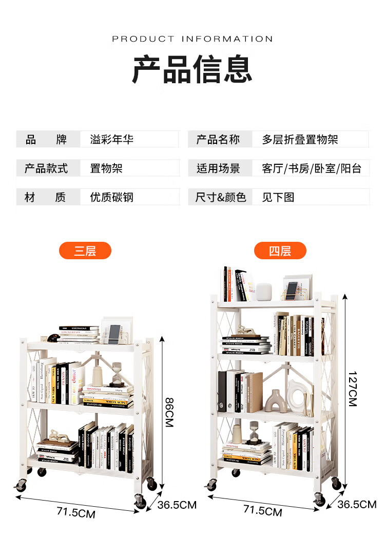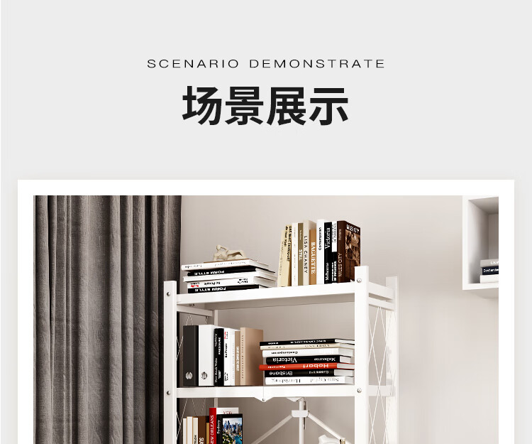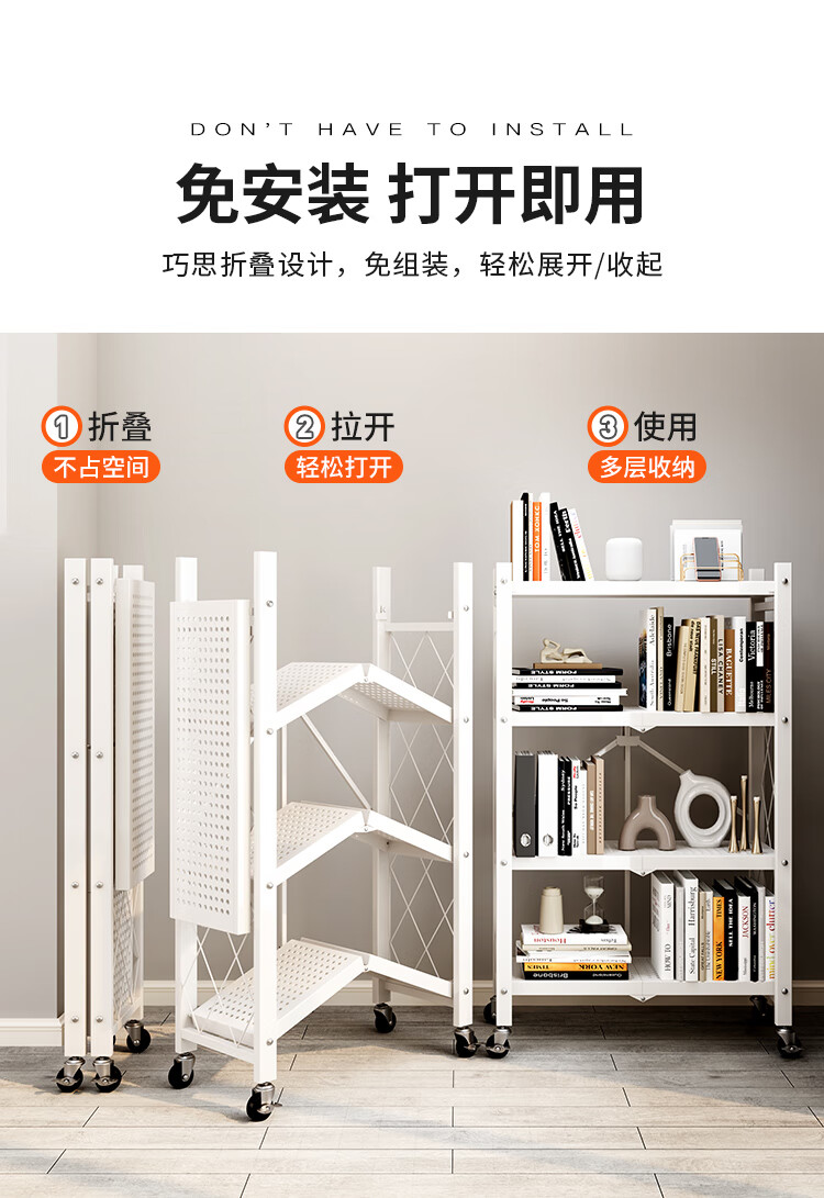 溢彩年华 书架落地客厅免安装置物架可移动折叠铁艺书柜书本收纳架子6060