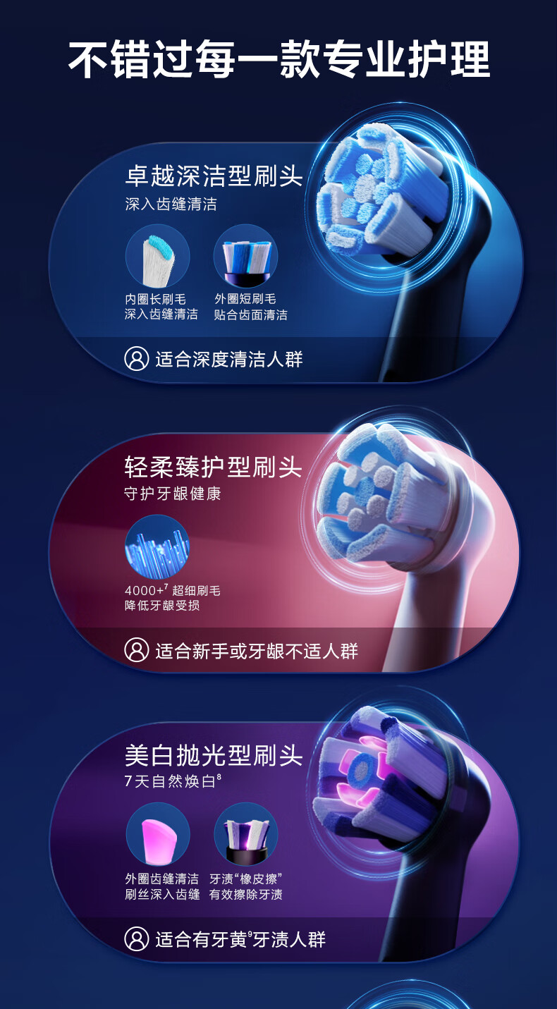 欧乐B电动牙刷头iO系列刷头组合9支装(卓越深洁+轻柔臻护+美白至臻)适用iO9/iO7/iO5/iO3/iO2深度清洁
