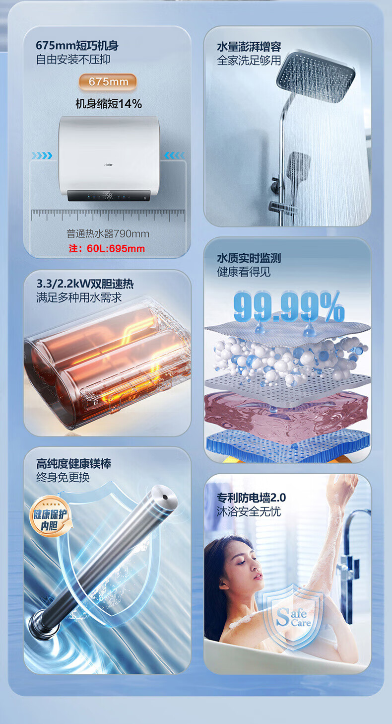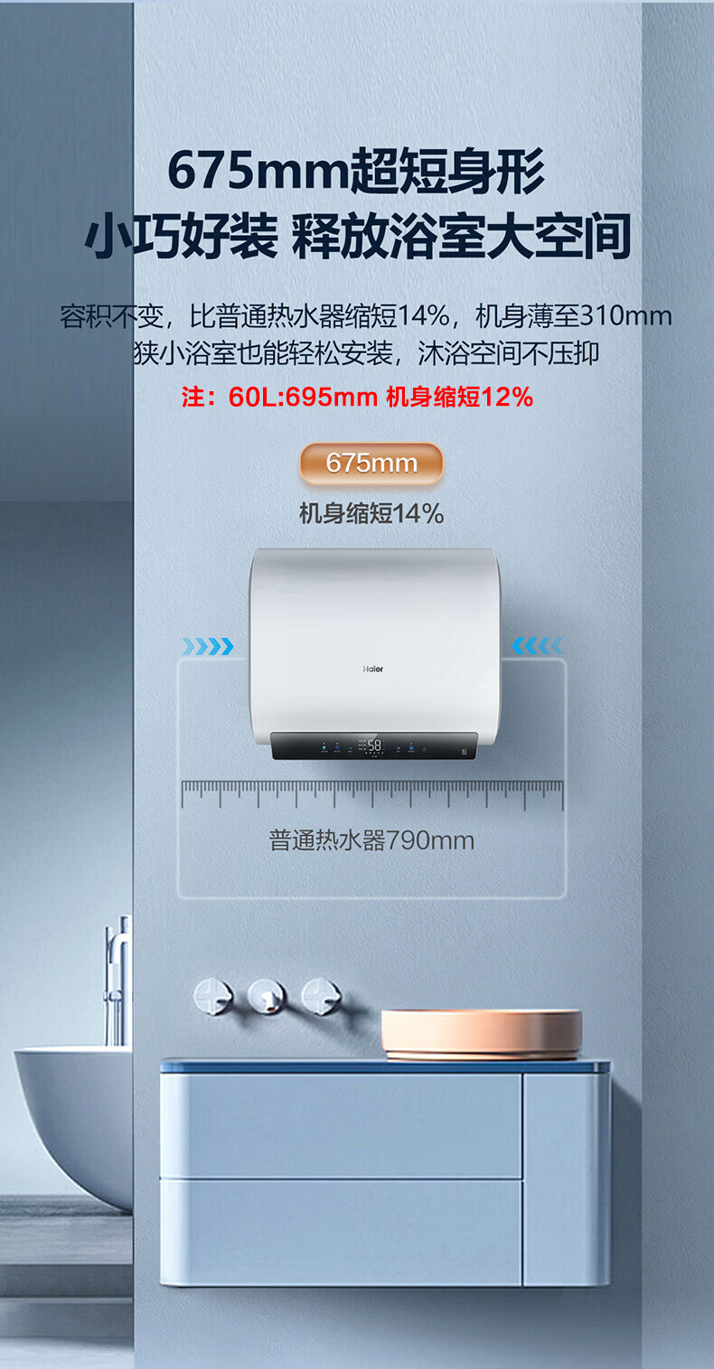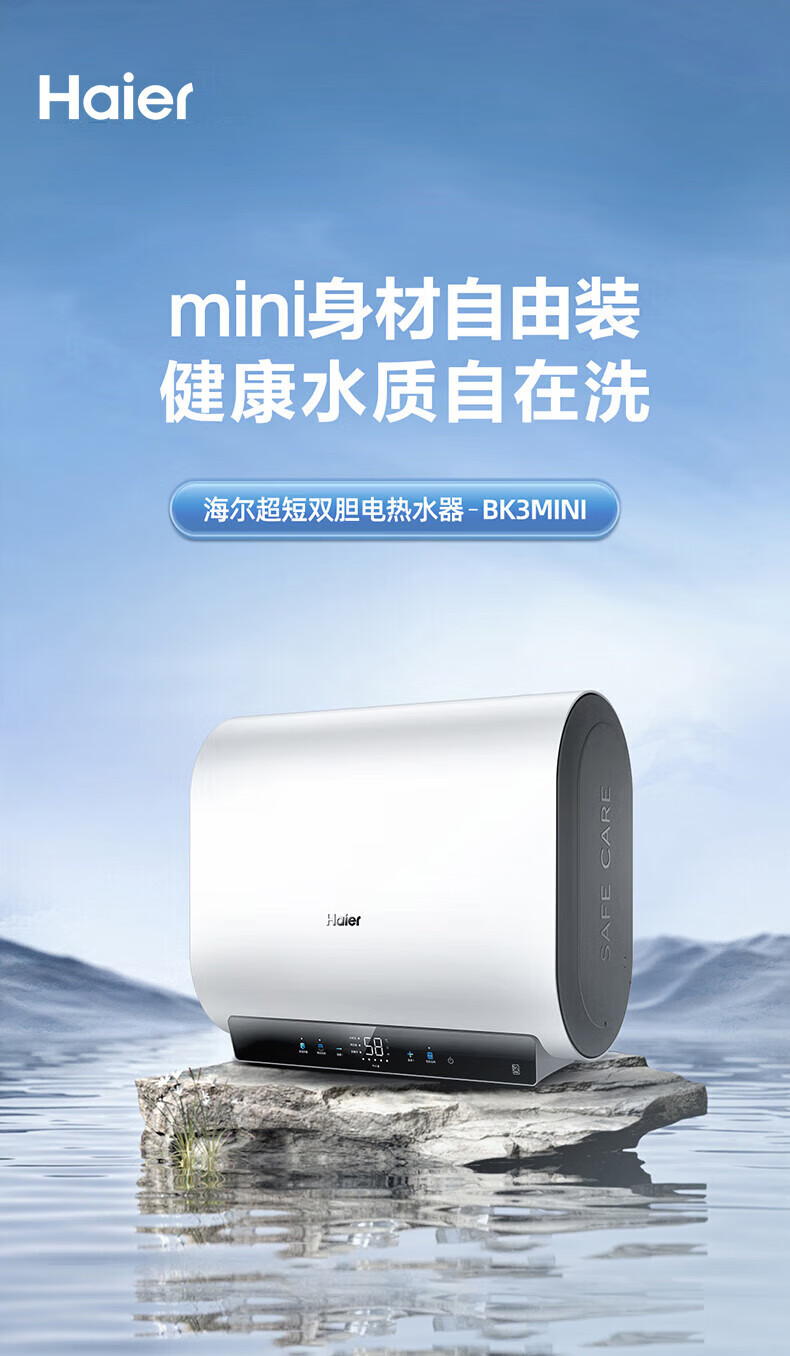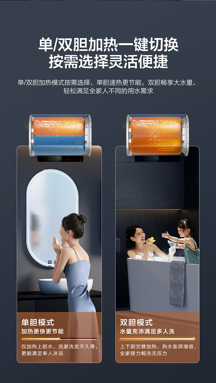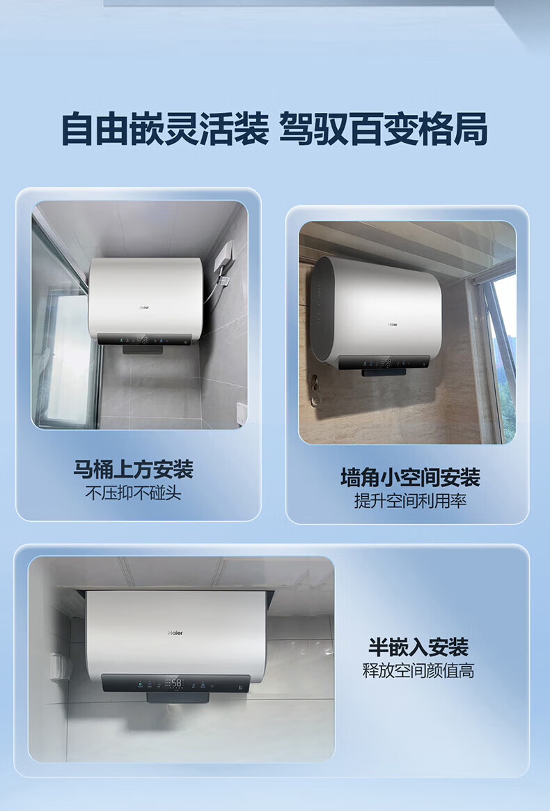 海尔(Haier)热水器 超薄双胆 电热水器60升 一级能效扁桶储水式BK1SE/BK3MINI 镁棒免更换WIFI智控 60L 2200W BK1SE升级款