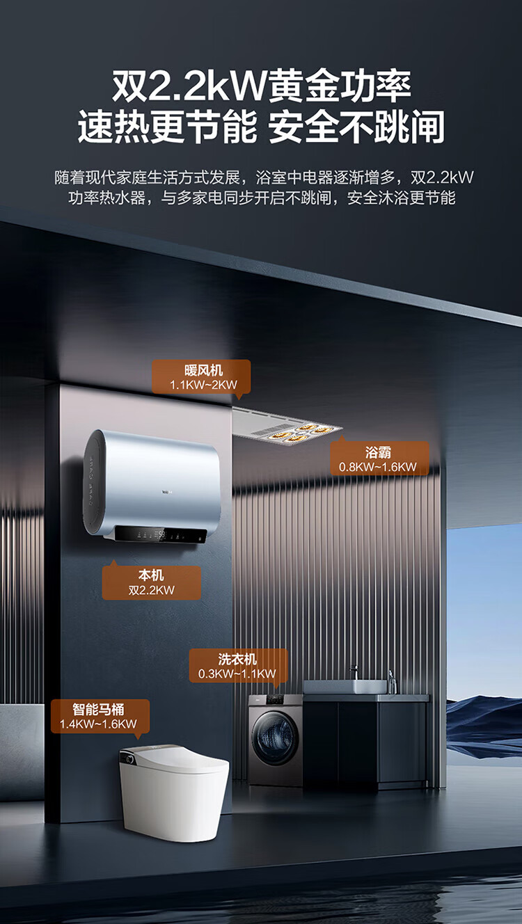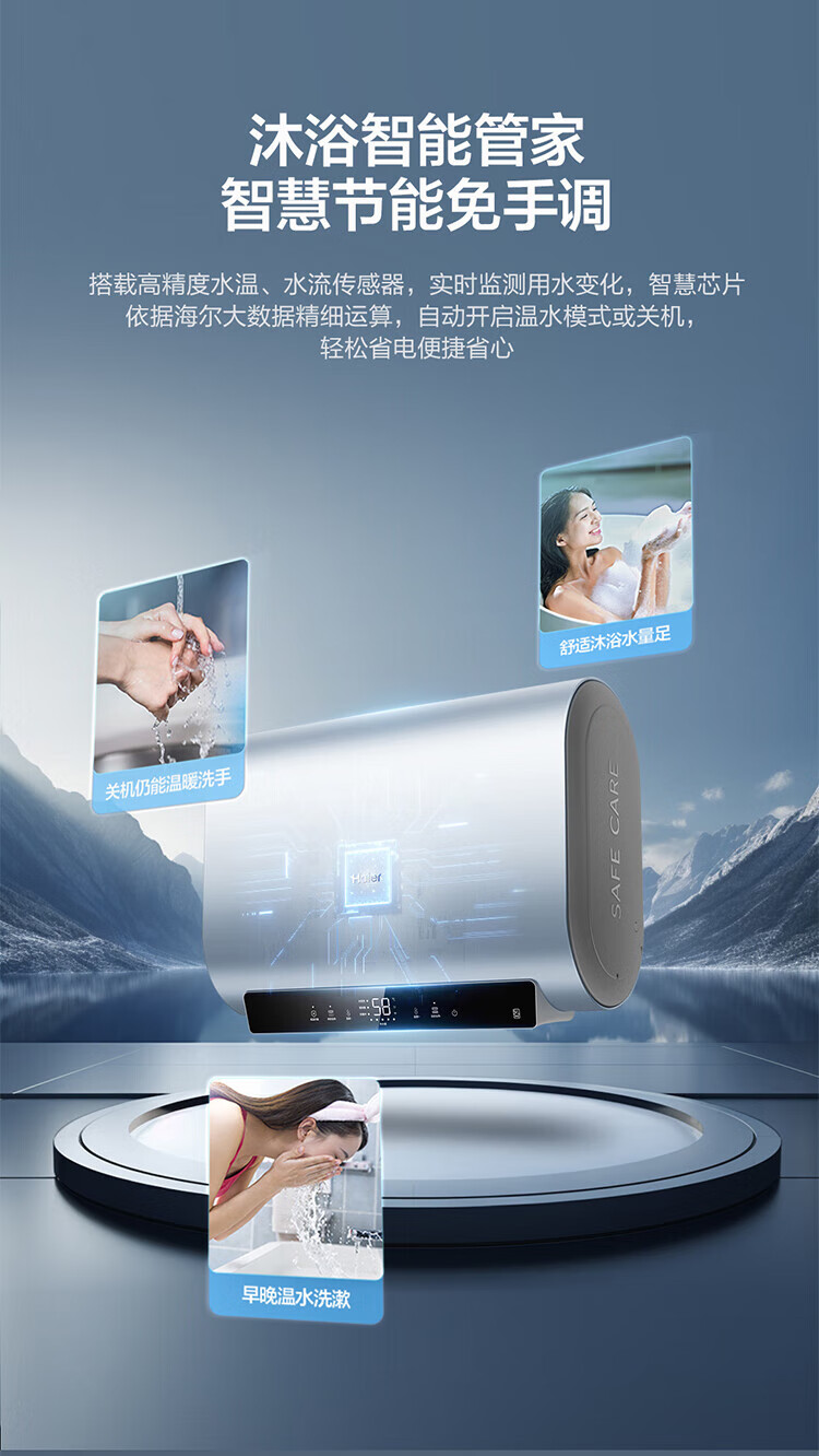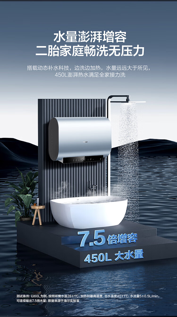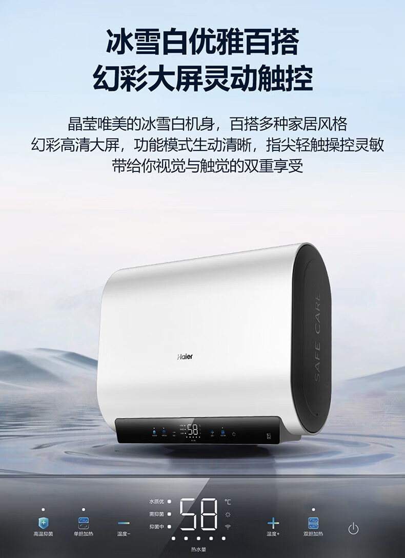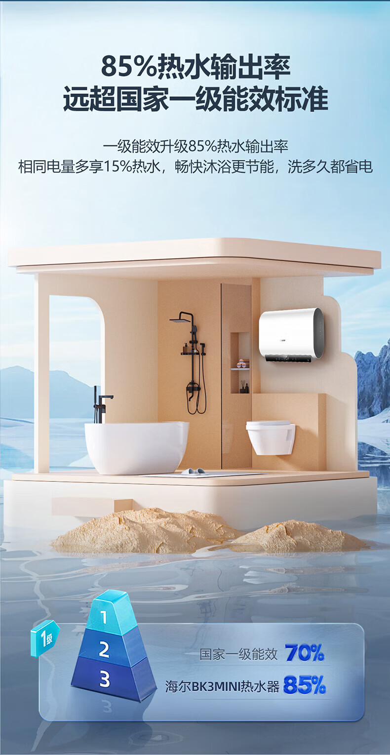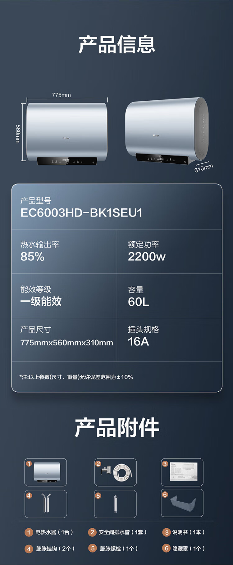 海尔(Haier)热水器 超薄双胆 电热水器60升 一级能效扁桶储水式BK1SE/BK3MINI 镁棒免更换WIFI智控 60L 2200W BK1SE升级款