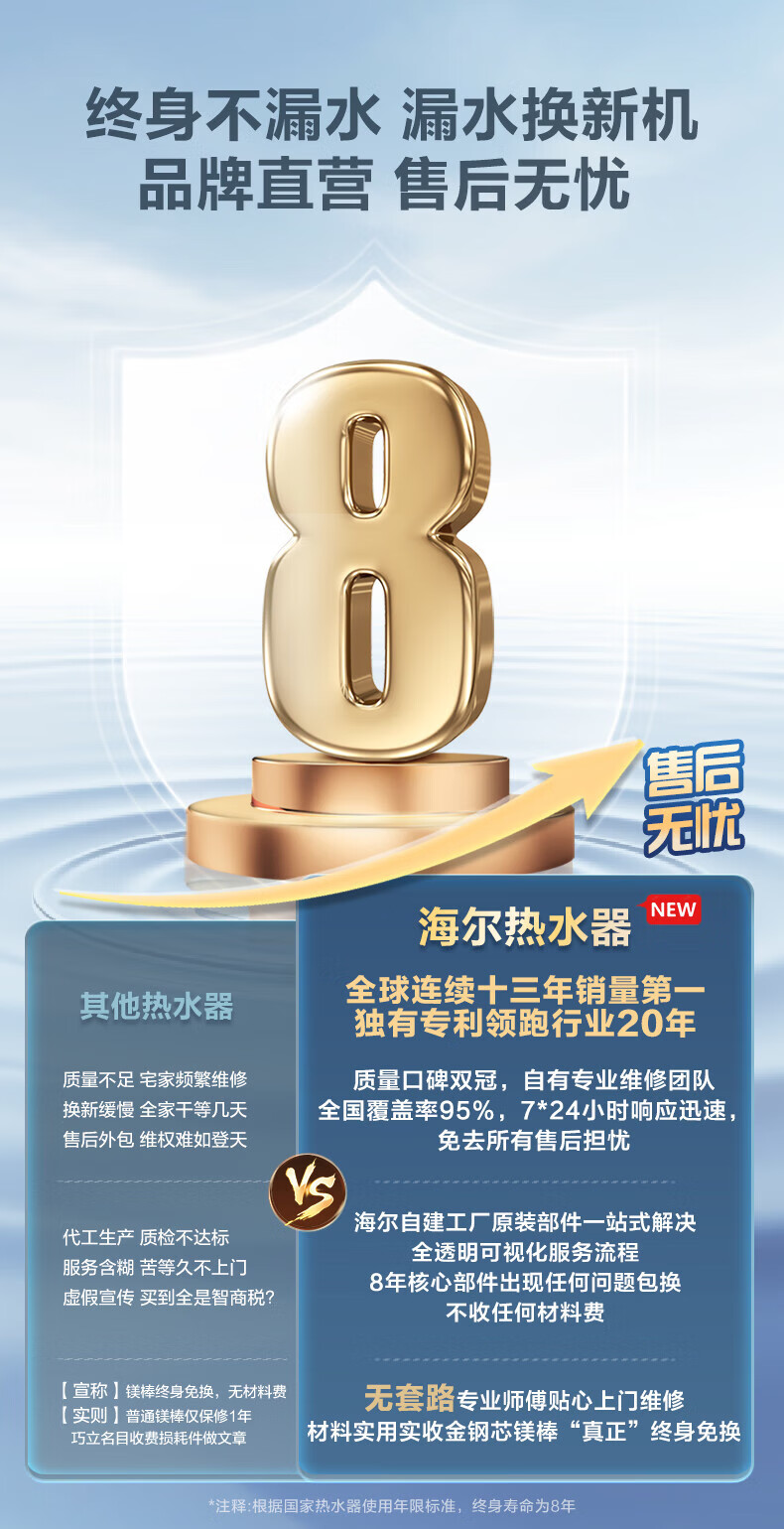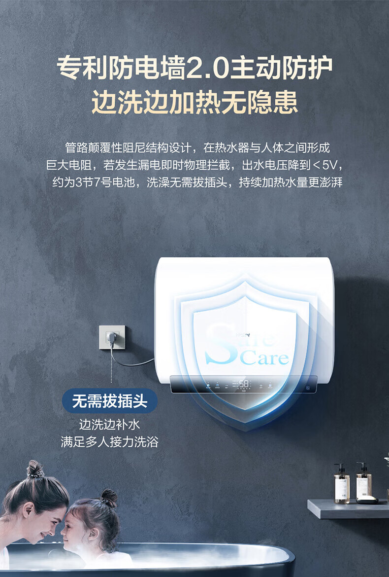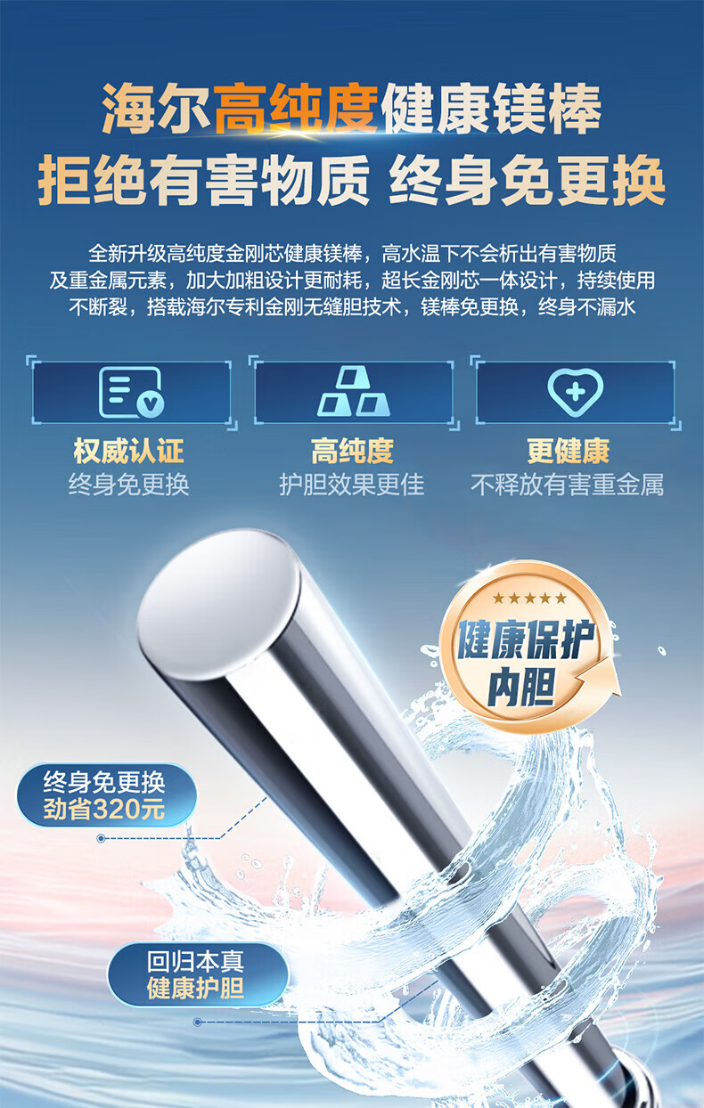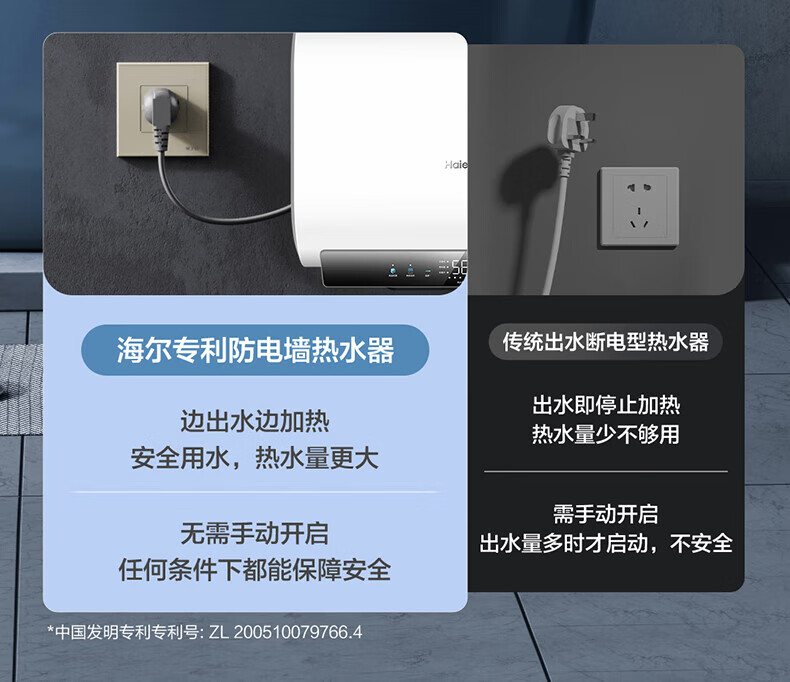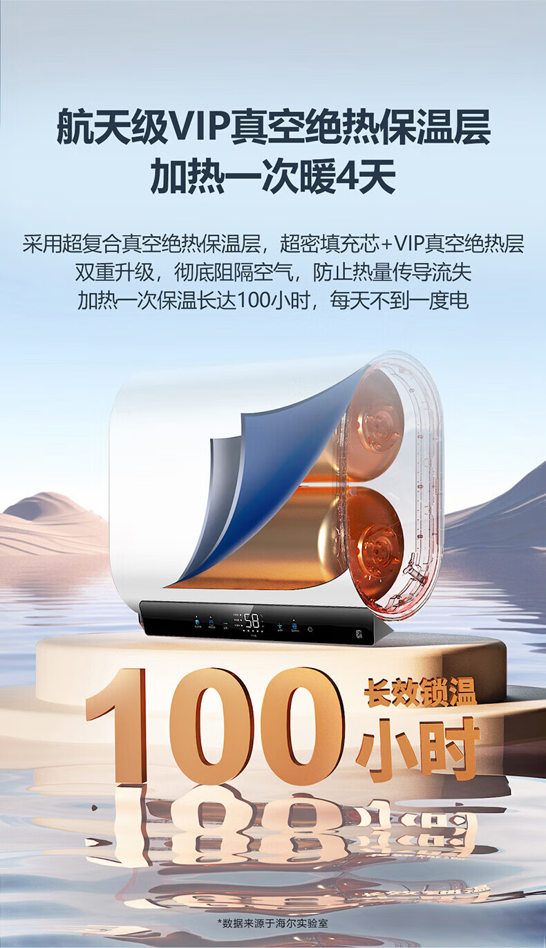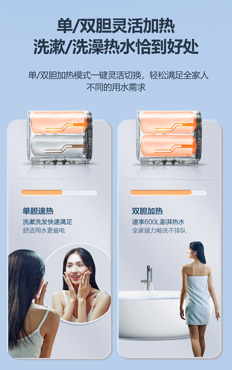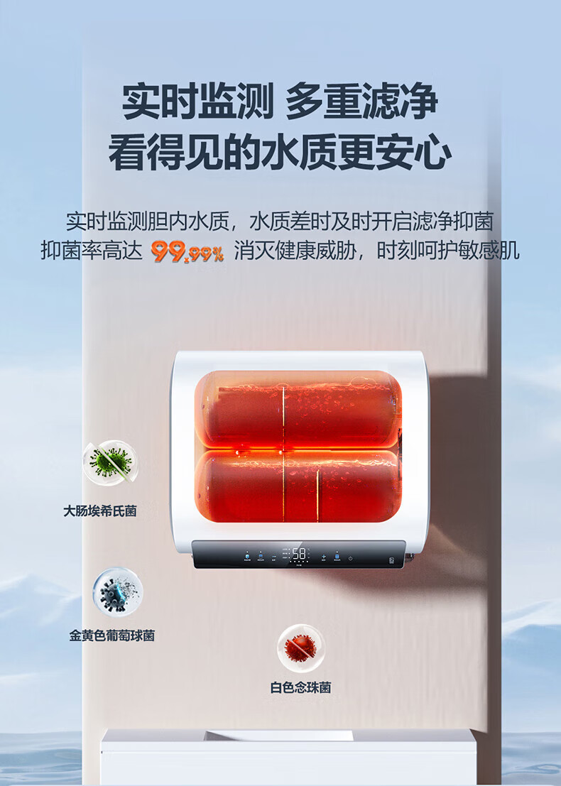 海尔(Haier)热水器 超薄双胆 电热水器60升 一级能效扁桶储水式BK1SE/BK3MINI 镁棒免更换WIFI智控 60L 2200W BK1SE升级款