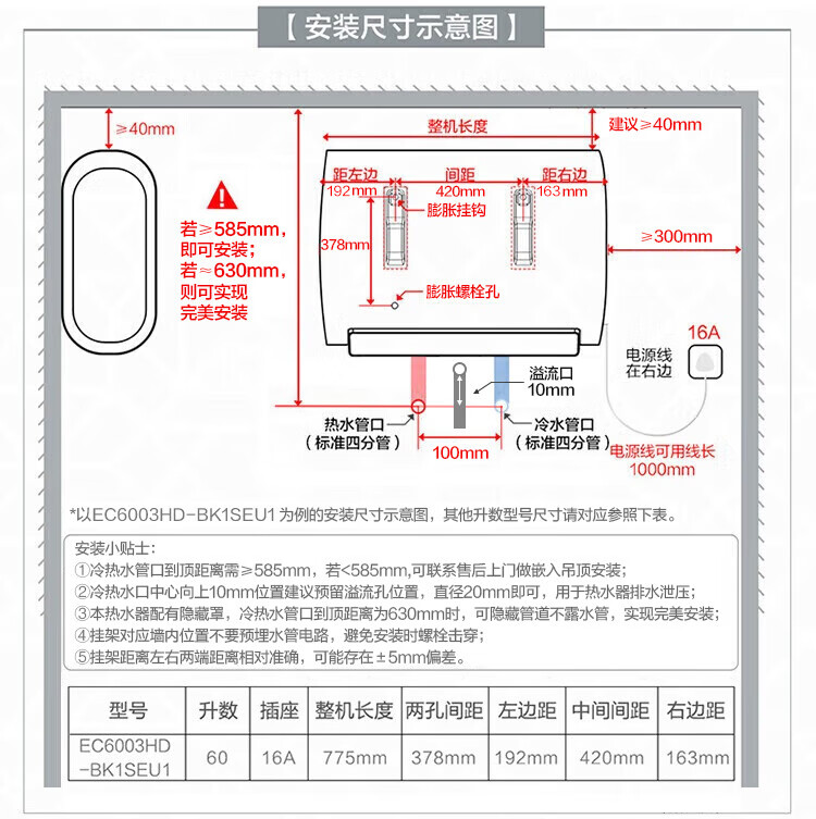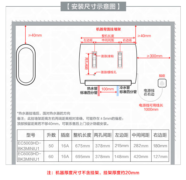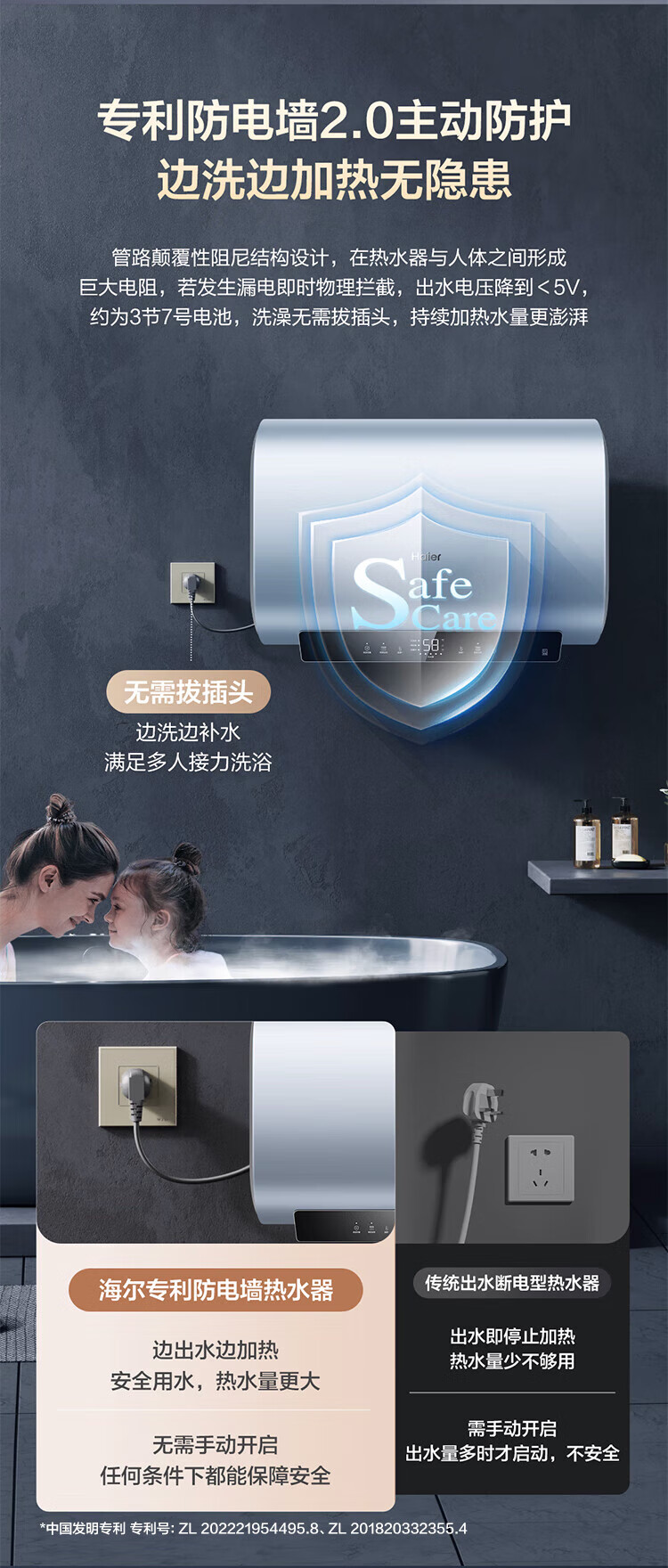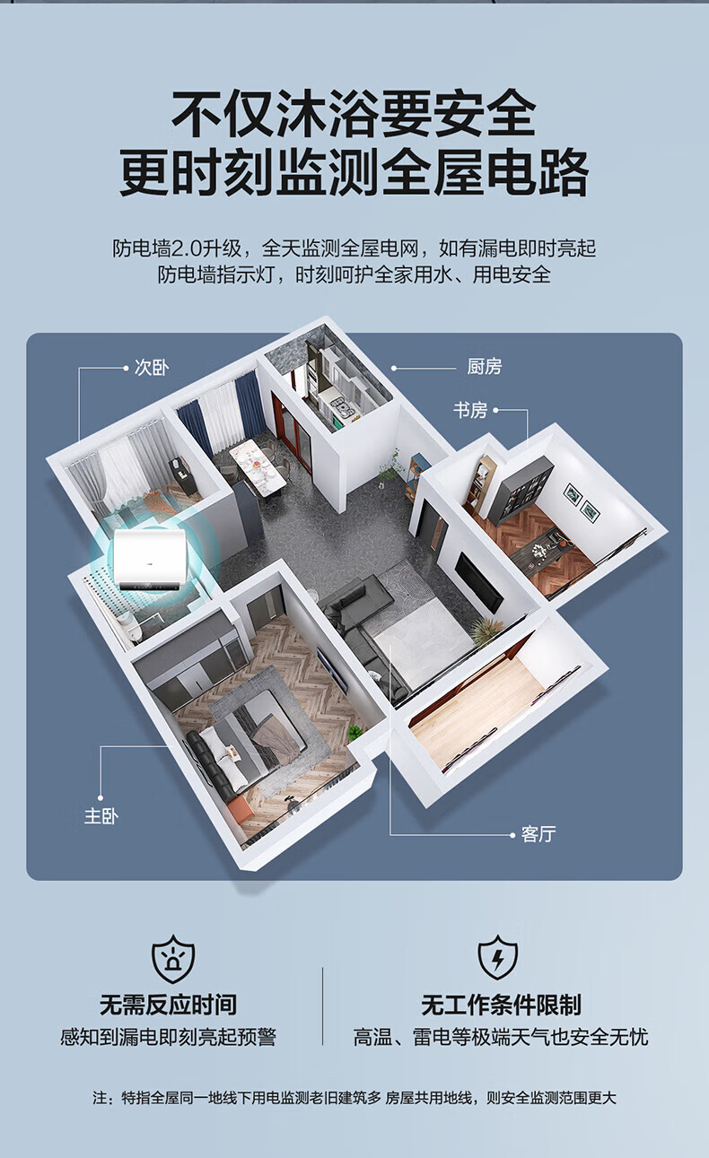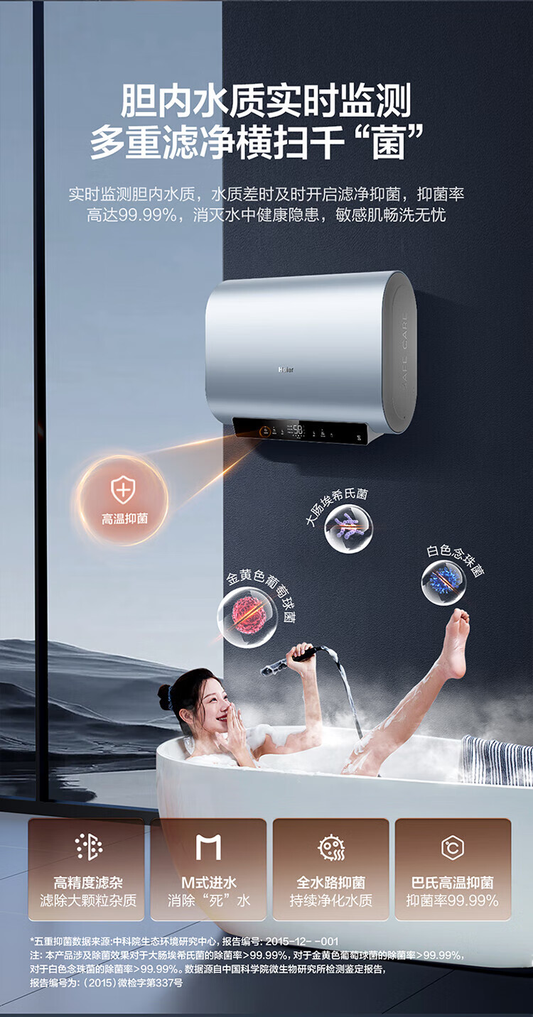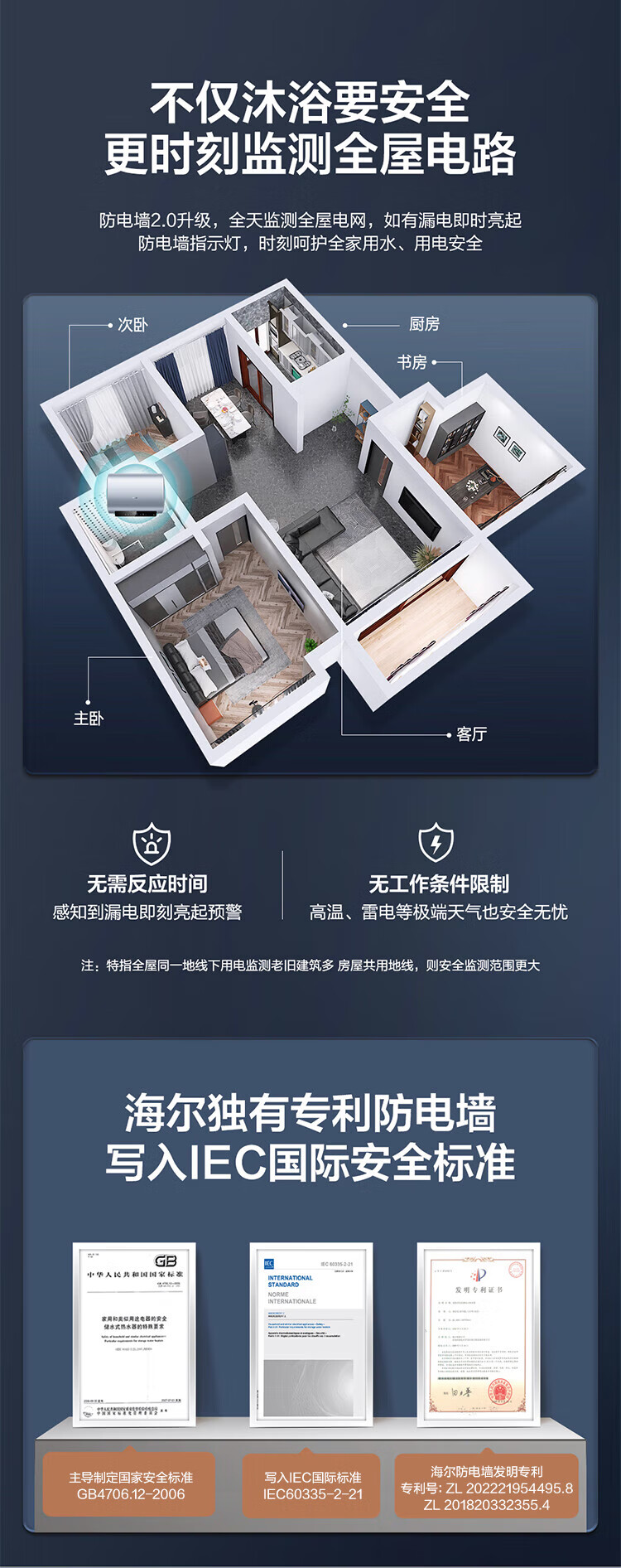 海尔(Haier)热水器 超薄双胆 电热水器60升 一级能效扁桶储水式BK1SE/BK3MINI 镁棒免更换WIFI智控 60L 2200W BK1SE升级款