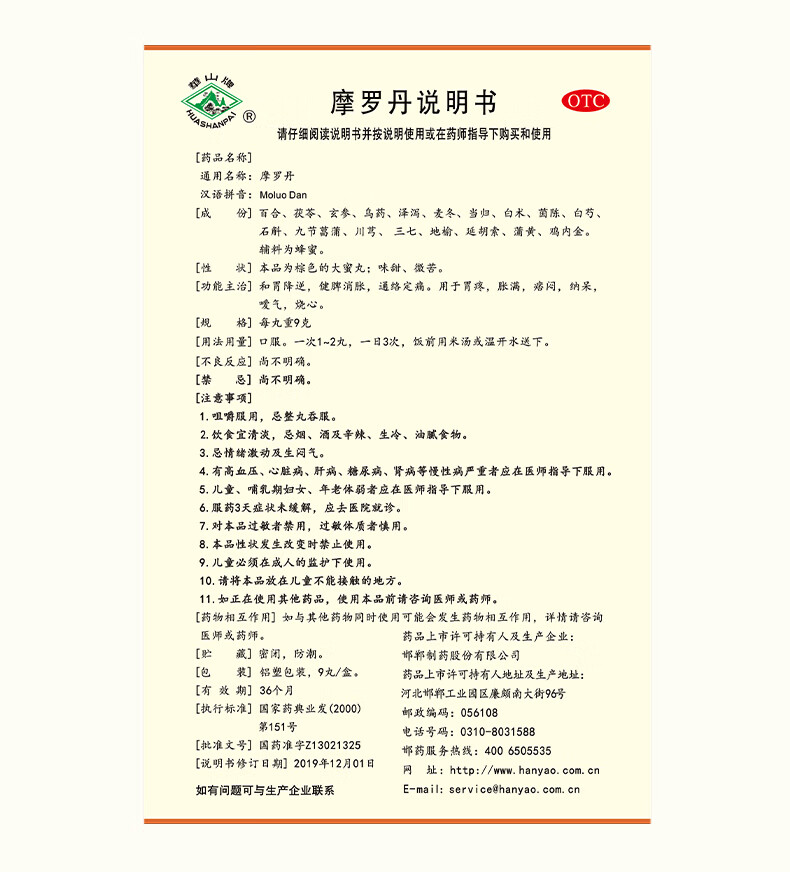 华山牌 摩罗丹大蜜丸9g*9丸5盒装