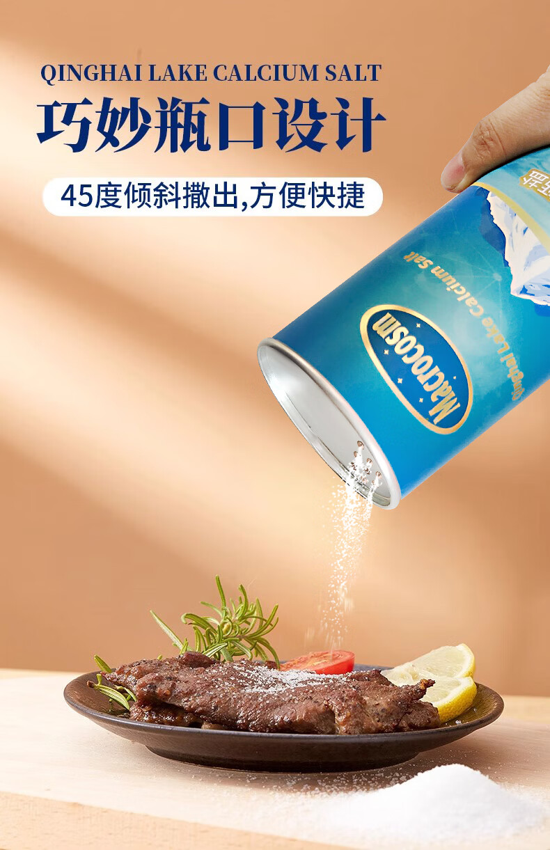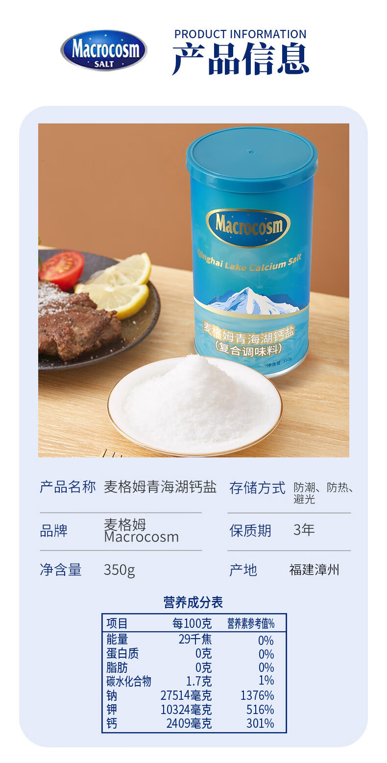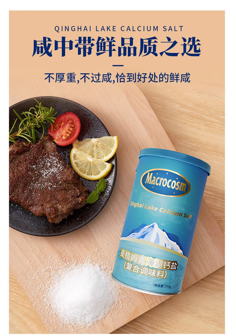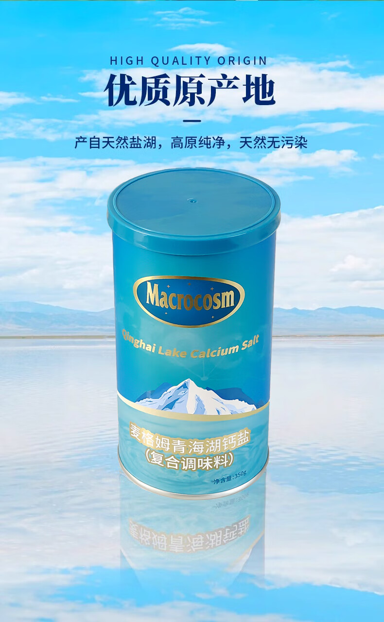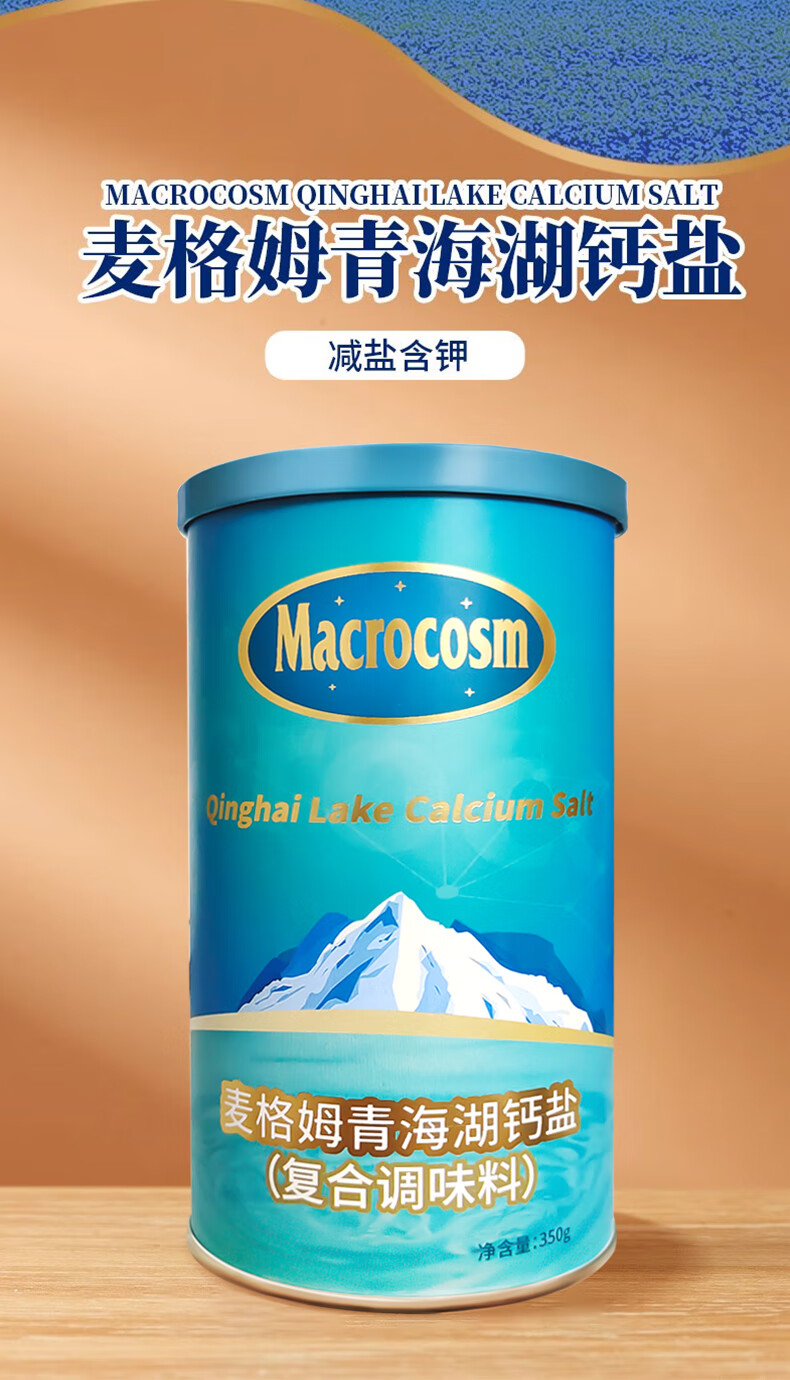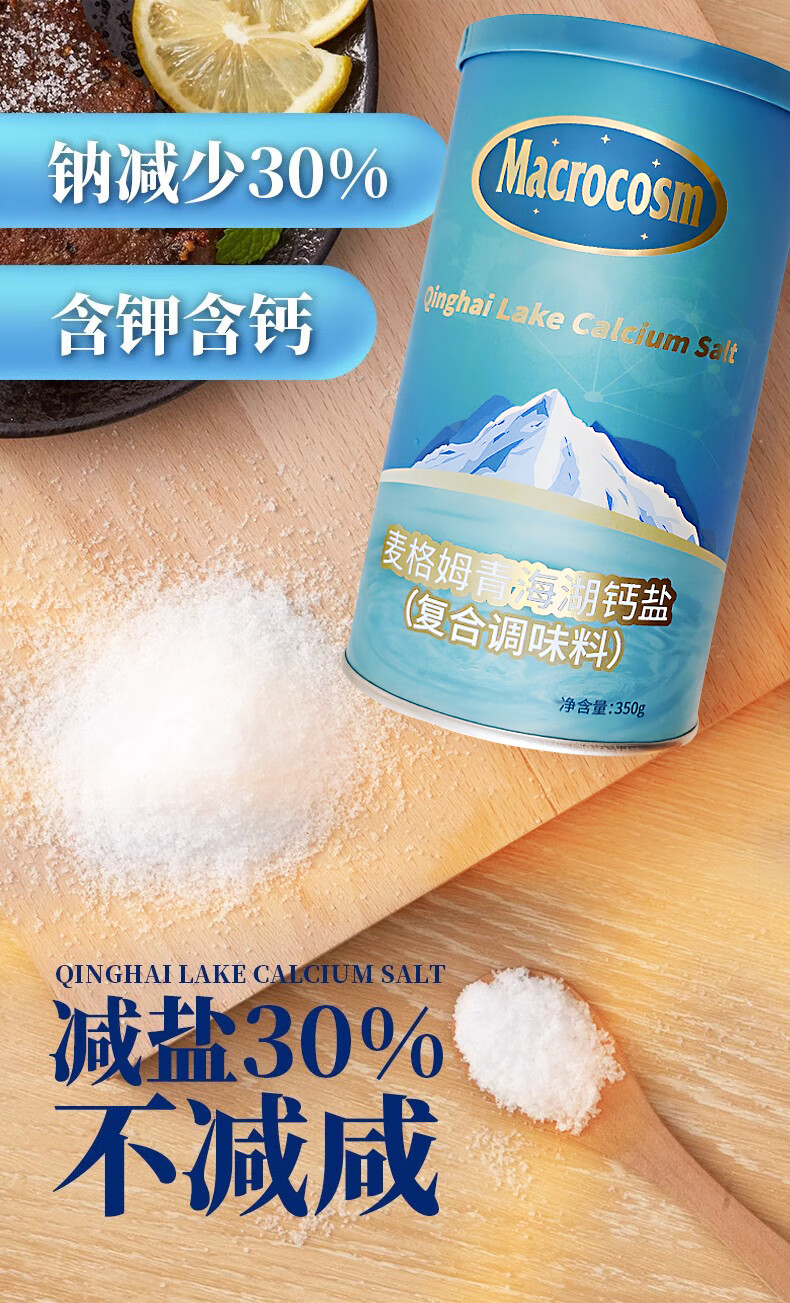Macrocosm青海湖盐减盐低钠高钾食用盐未加碘调味品零添加无抗结剂350g 青海湖钙盐-低钠含钙350g*1罐