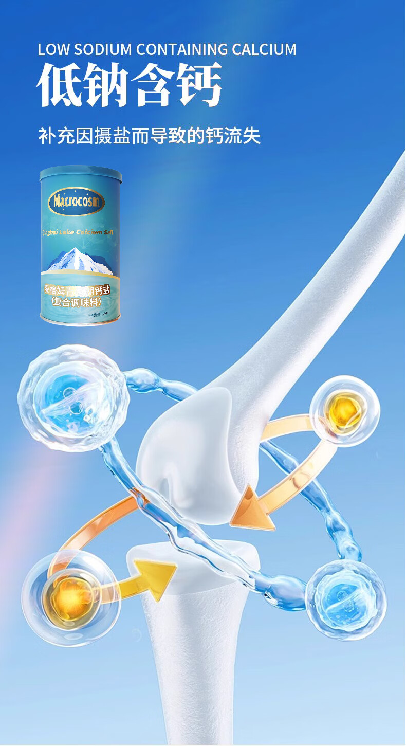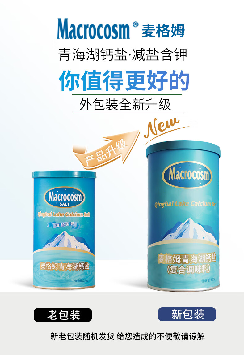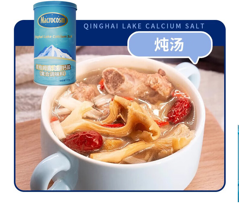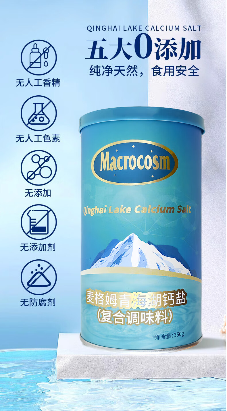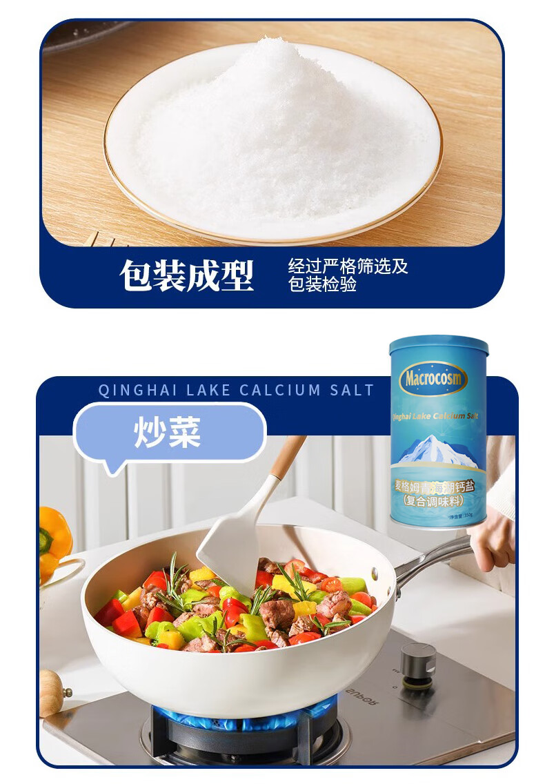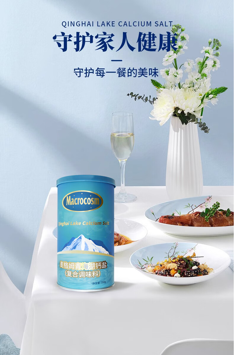 Macrocosm青海湖盐减盐低钠高钾食用盐未加碘调味品零添加无抗结剂350g 青海湖钙盐-低钠含钙350g*1罐