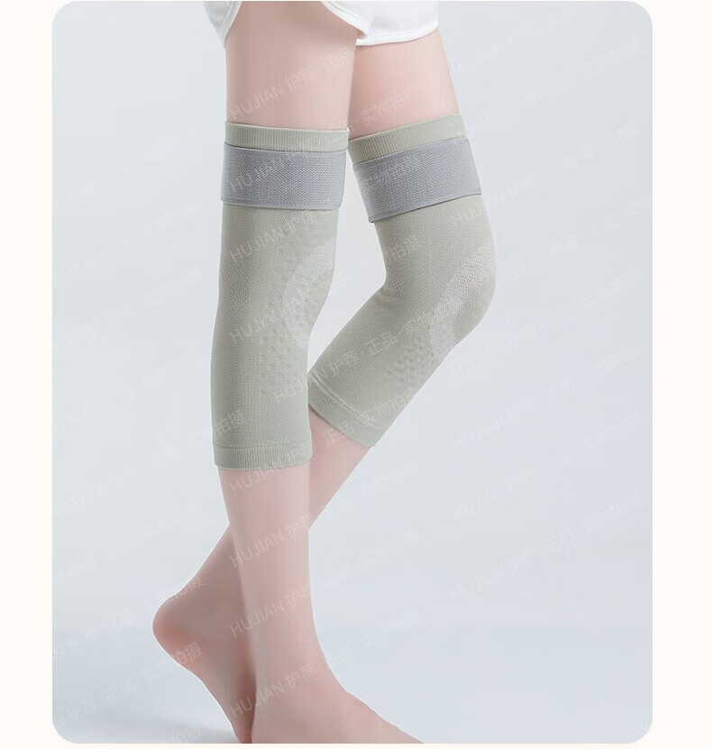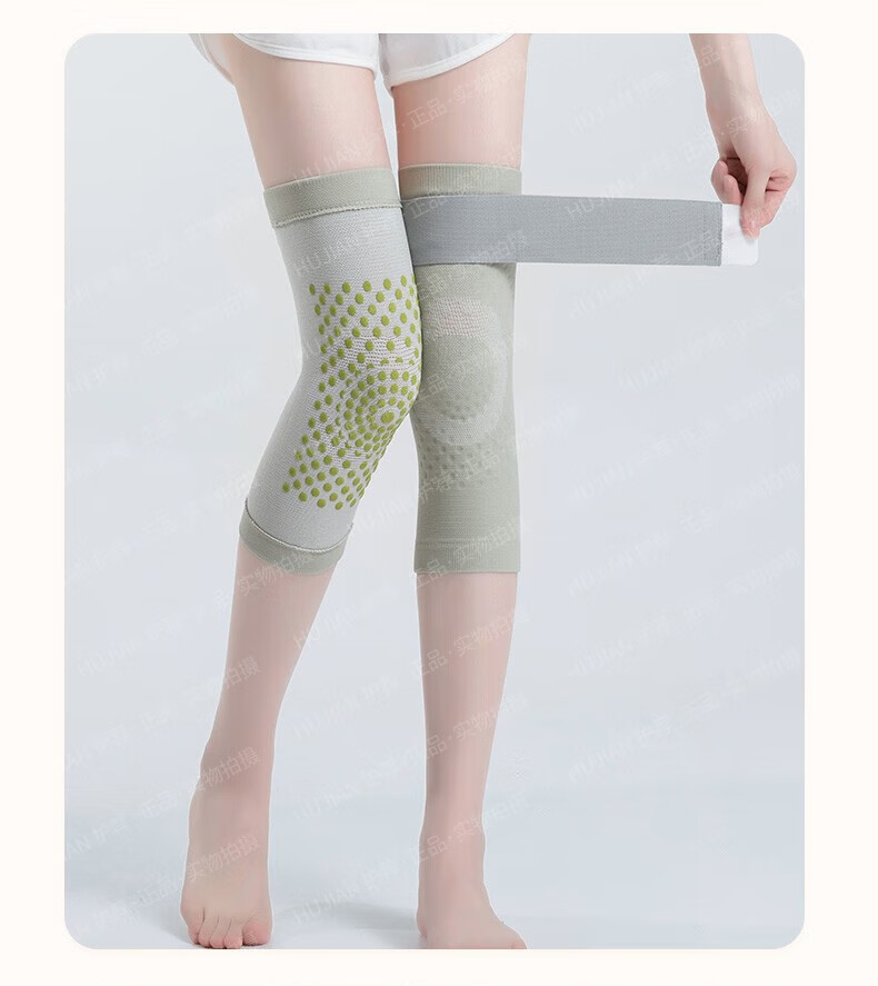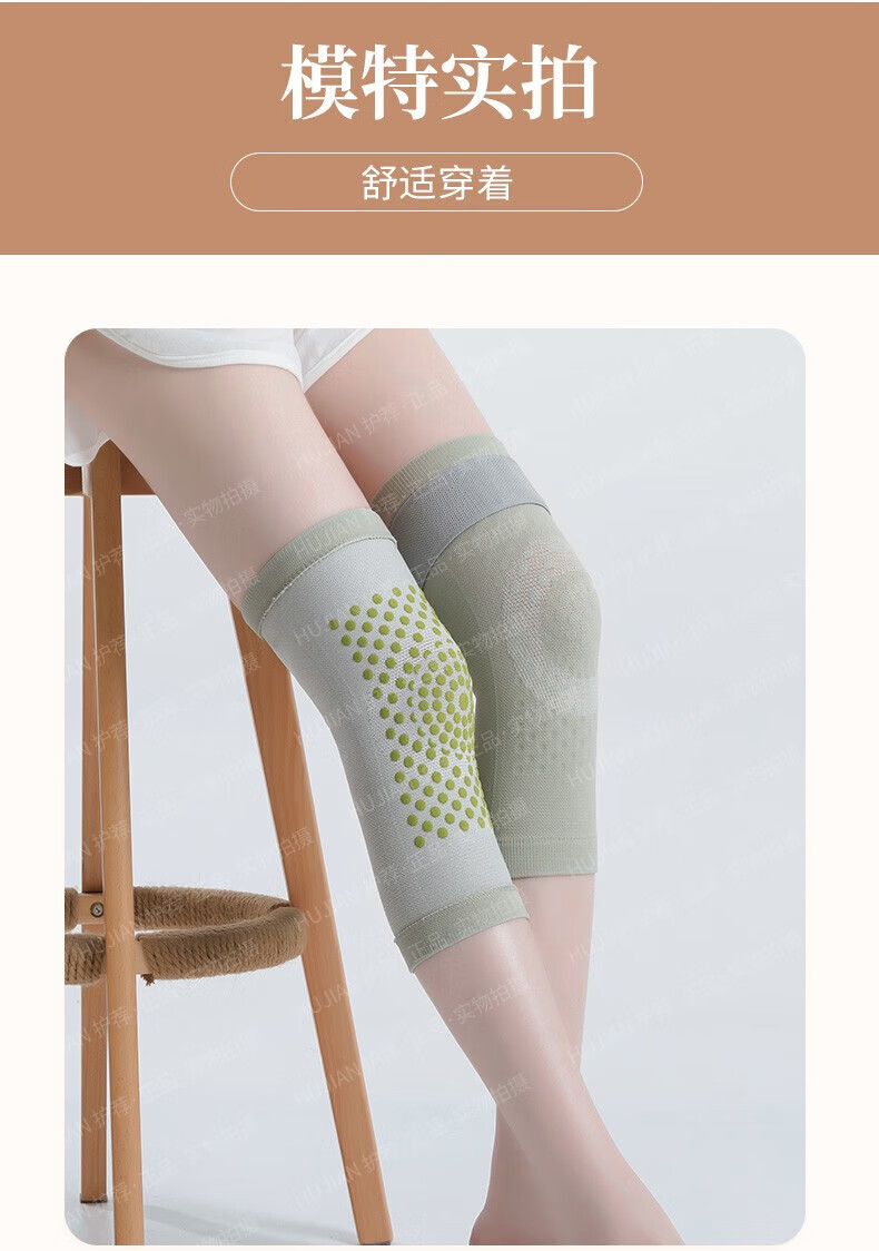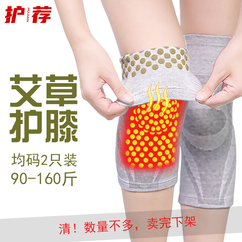 护荐绑带艾草护膝 夏天用薄款 自发热运动防滑 透气寒腿关节跑步炎 无绑带-灰色红涂点发热护膝 27cm