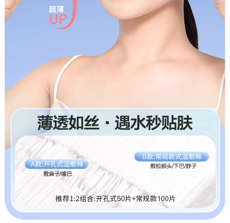 韩美臣湿敷棉敷脸专用可拉伸化妆棉卸妆棉片超薄天丝面膜纸巾面部 薄款 200片 湿敷棉4包【不开孔】