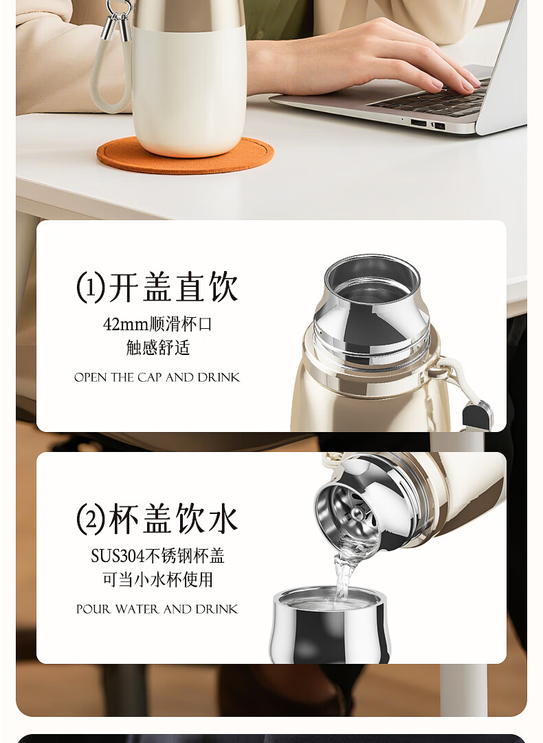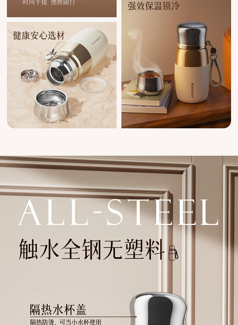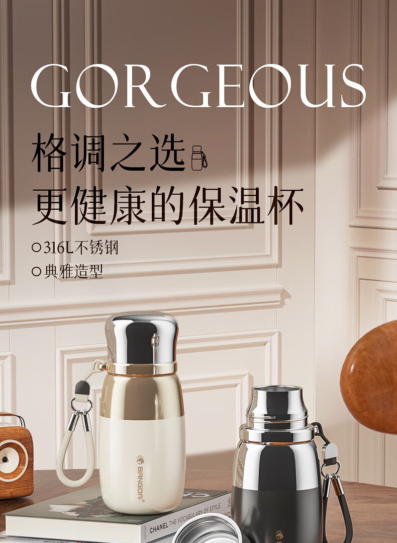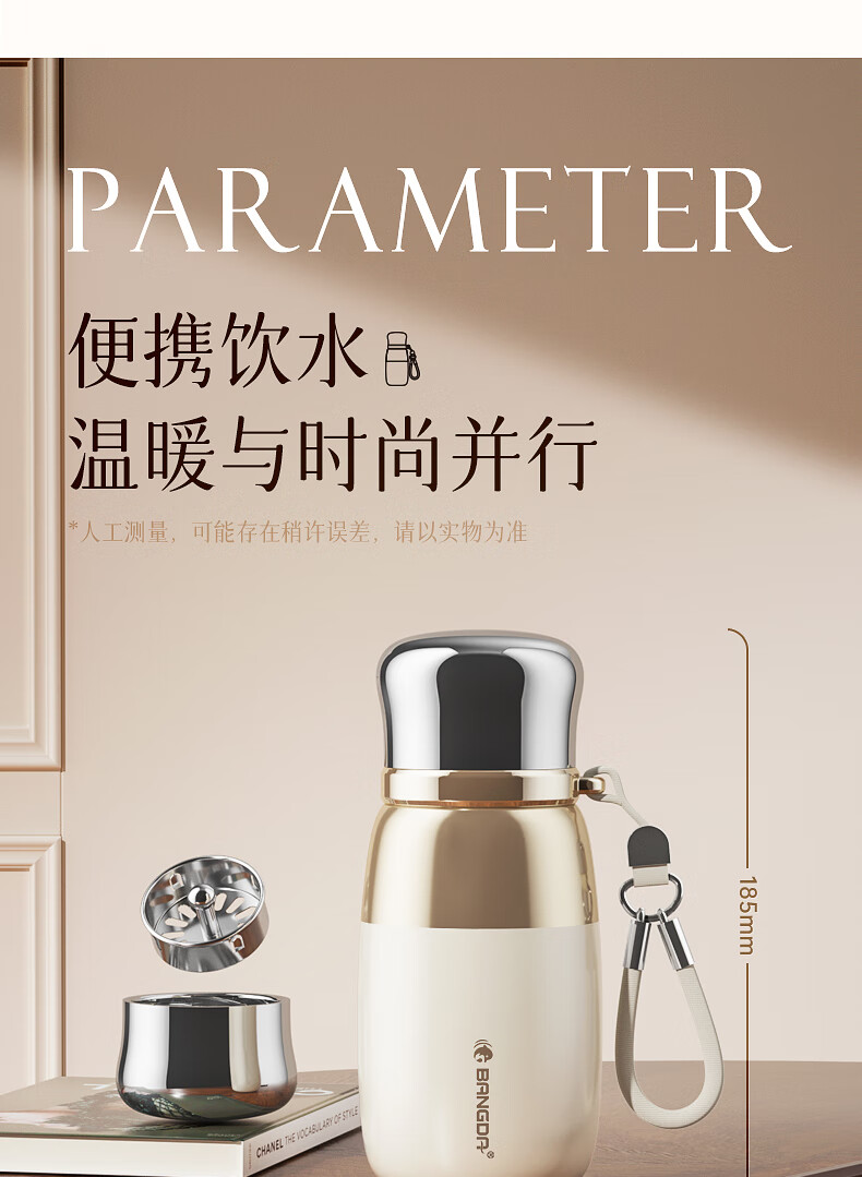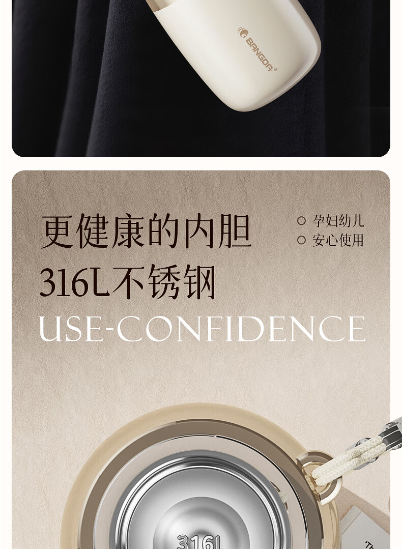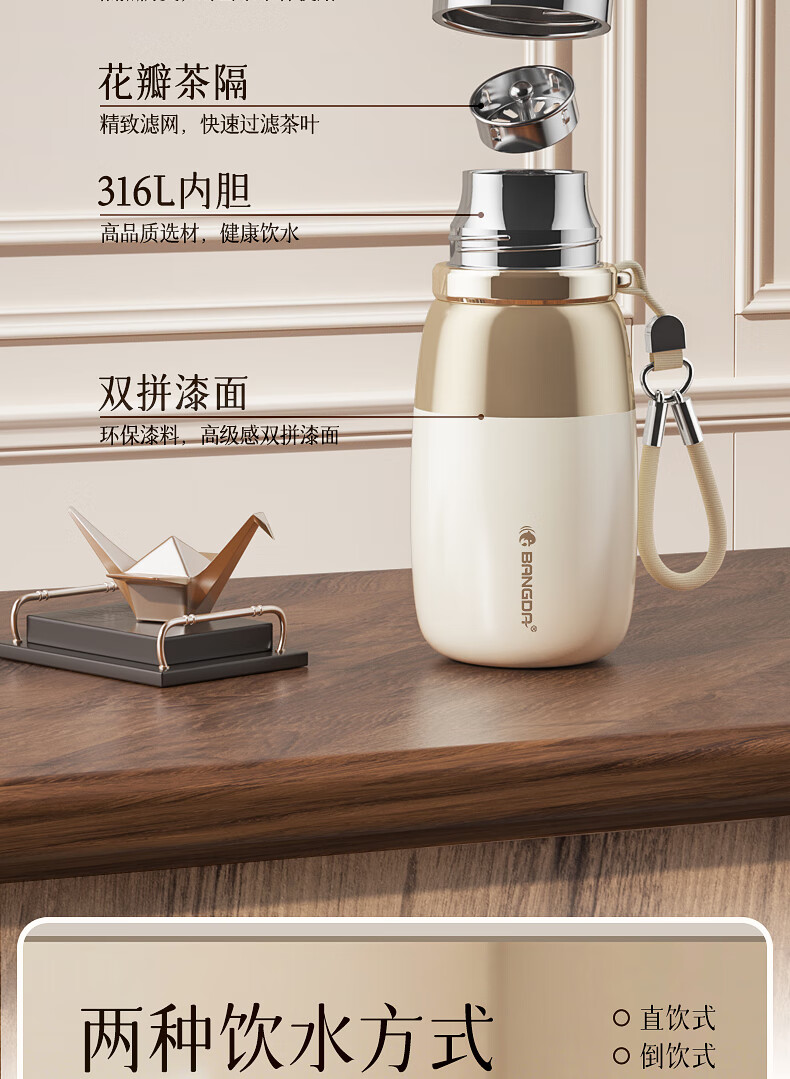 邦达(bangda)(A222)316不锈钢保温杯青少年2025新款保冷焖泡茶杯子水杯水壶 白色【400ml】
