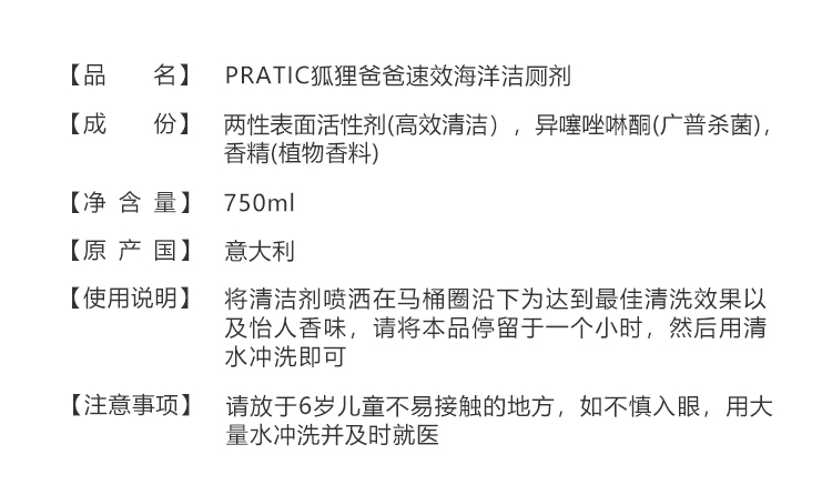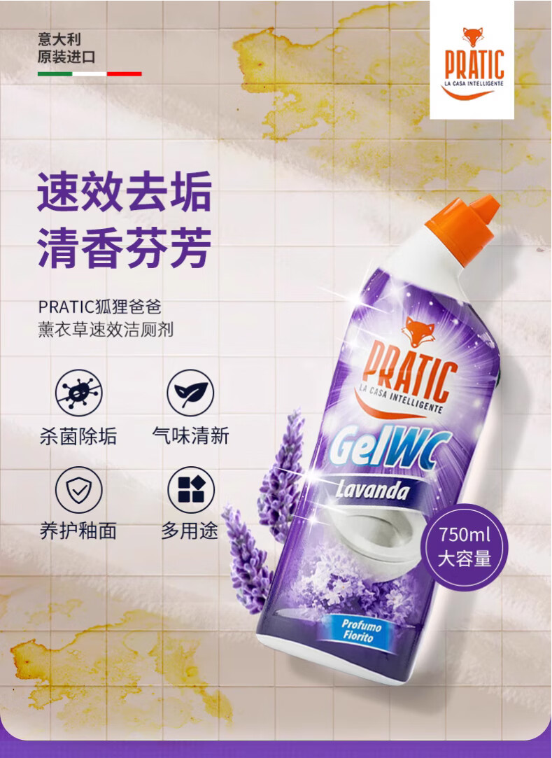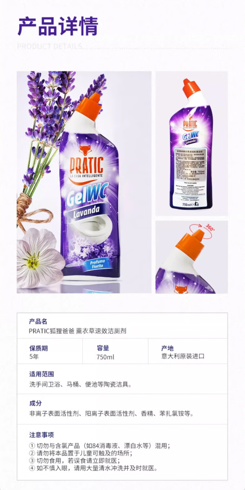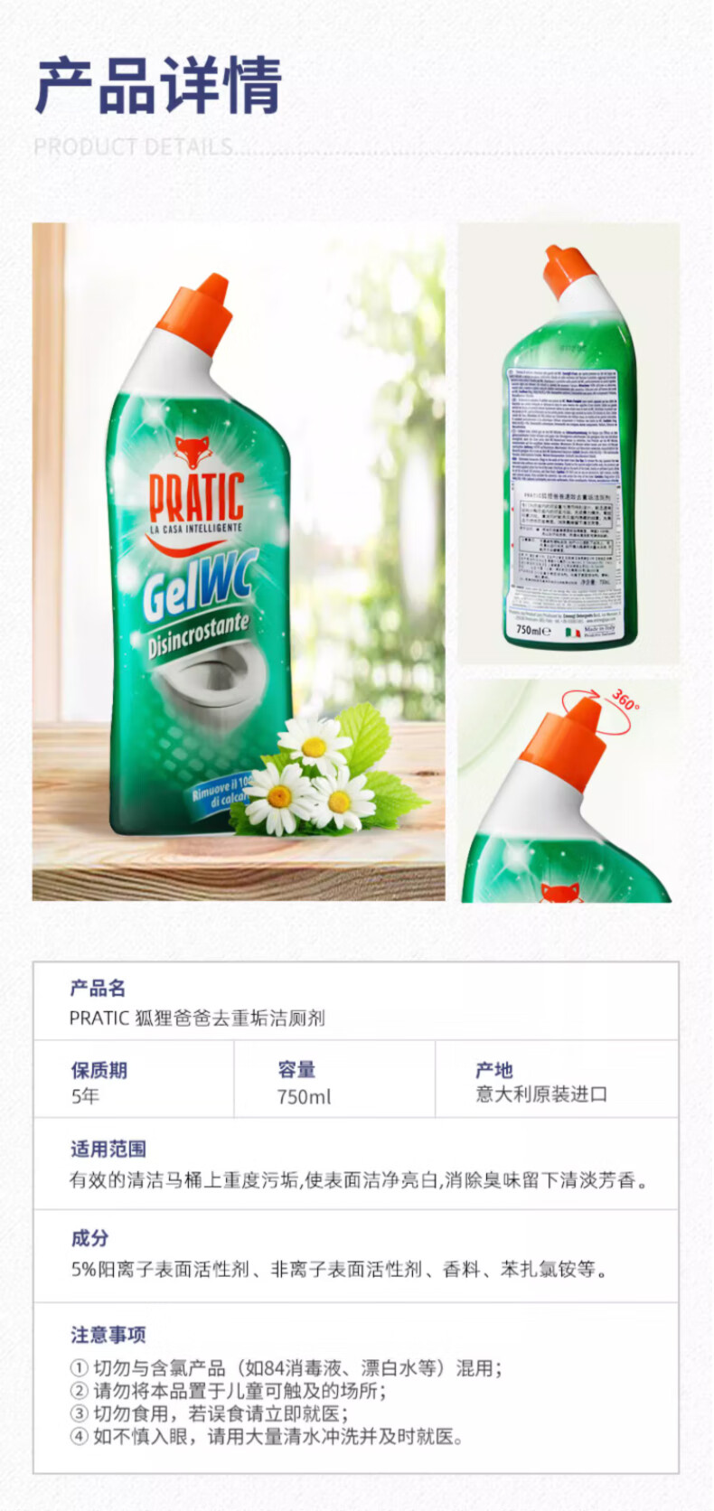 狐狸爸爸欧洲进口洁厕灵马桶 强力去污除垢除异味尿碱养护釉面洁厕剂750ml 速效去重垢洁厕剂750ml*1
