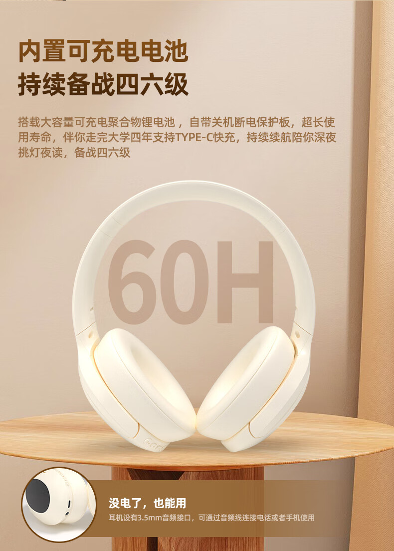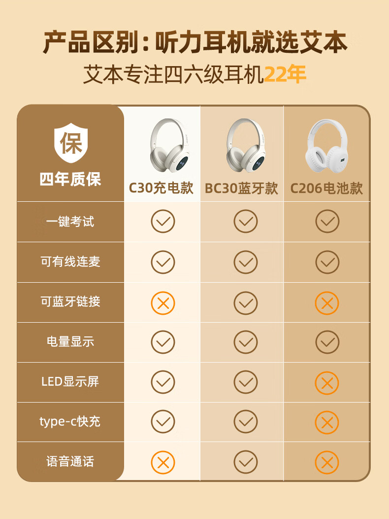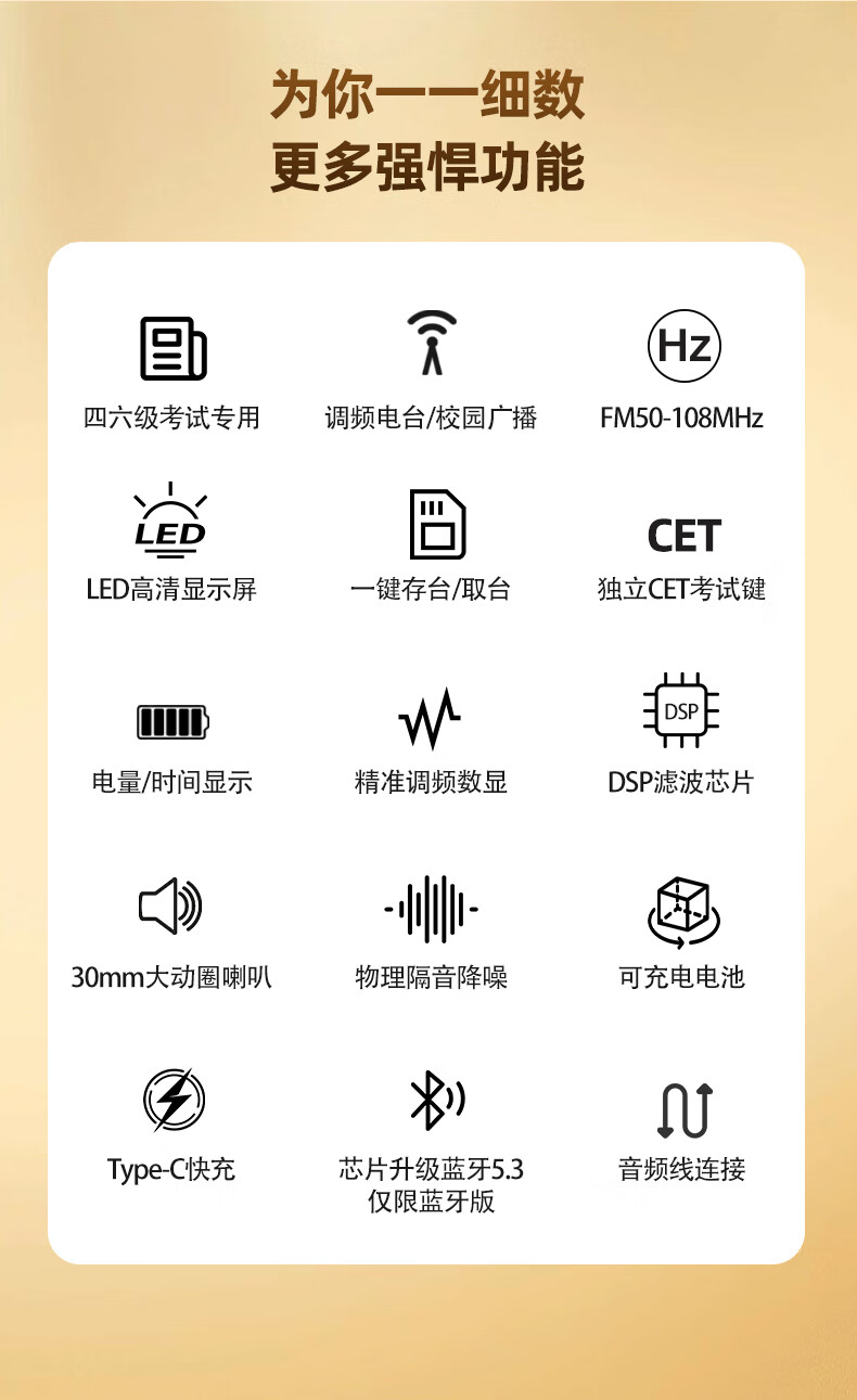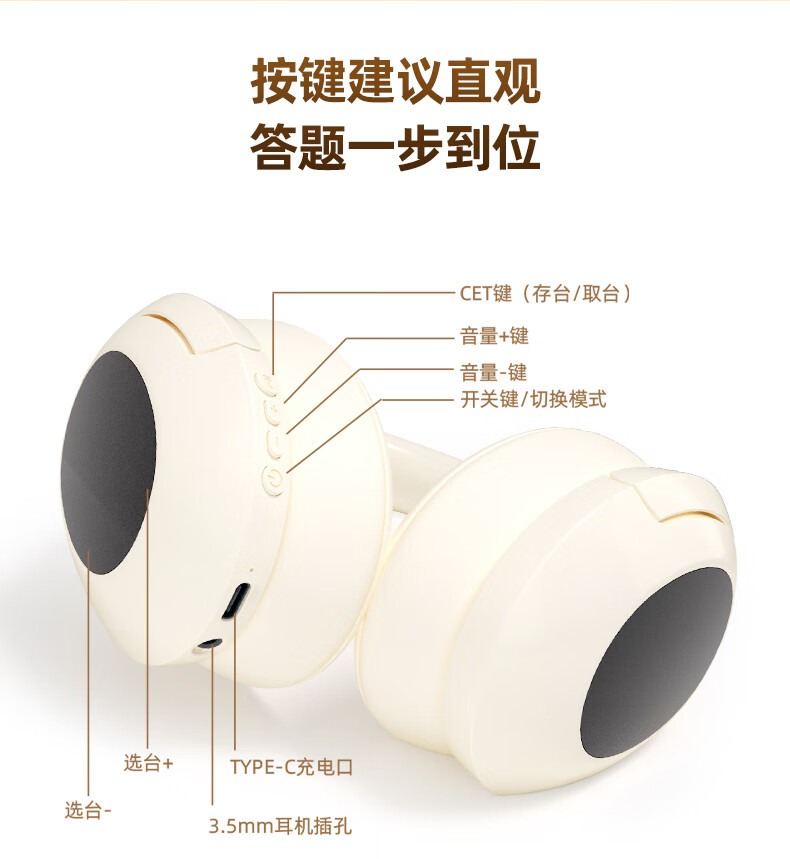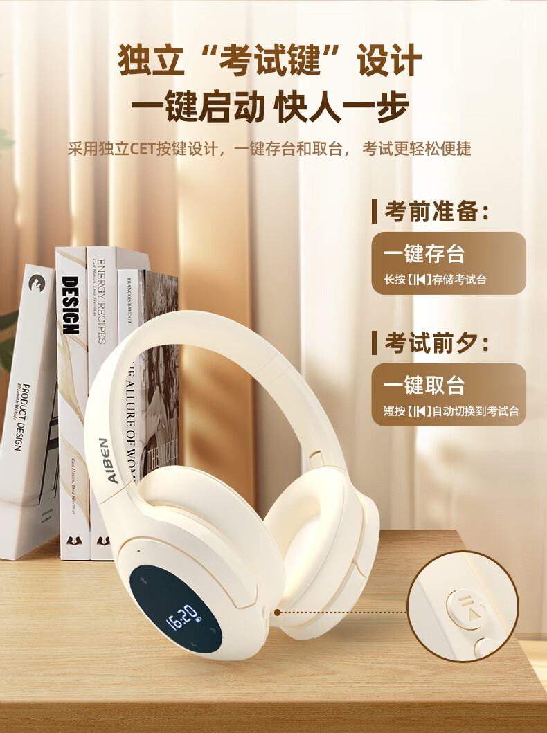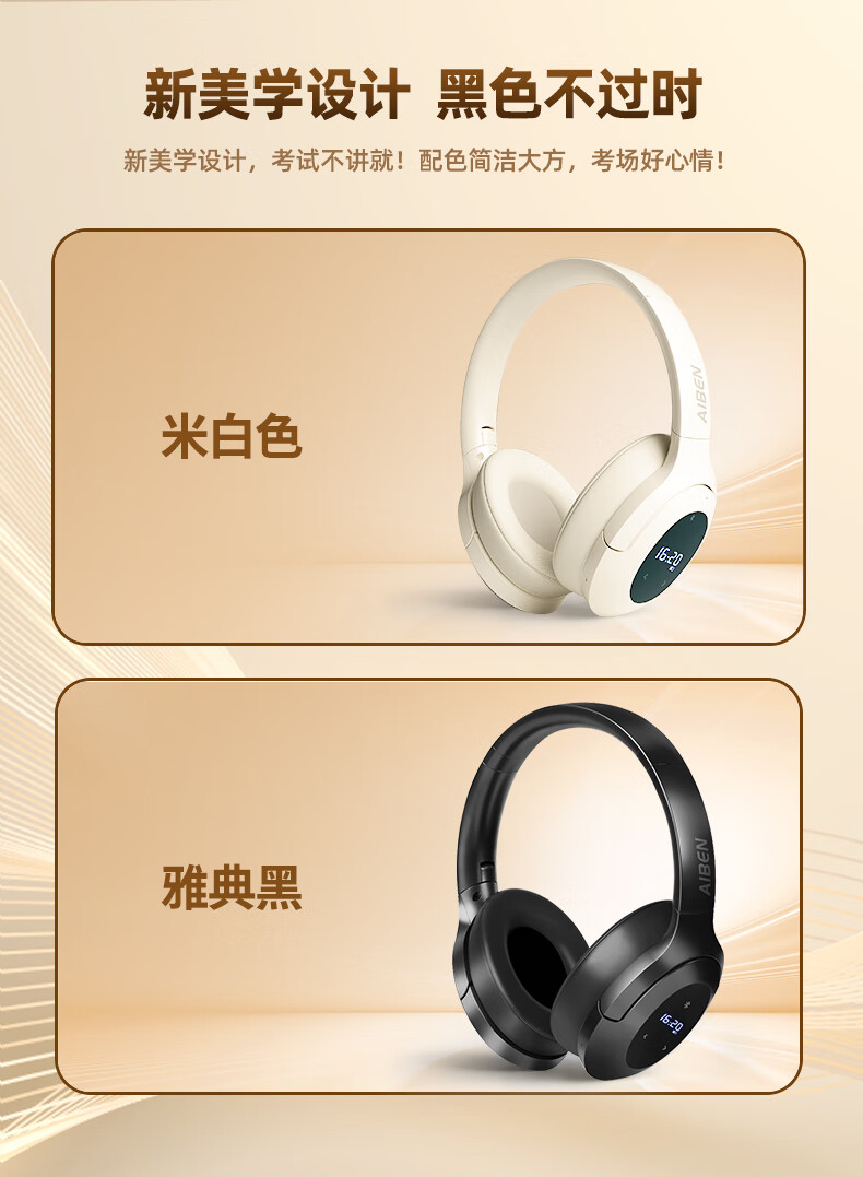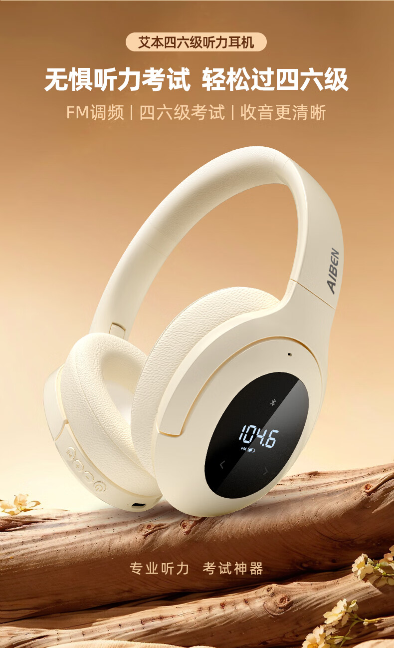 艾本(AIBEN)【当/次日达】英语四六级听力耳机大学四级六级调频FM收音机头戴式蓝牙考试耳机专四专八听力耳机 芯片升级蓝牙版米白【FM超清降噪+蓝牙+Type-C快充线】 标配耳机(考试专用/考试不需要麦线)