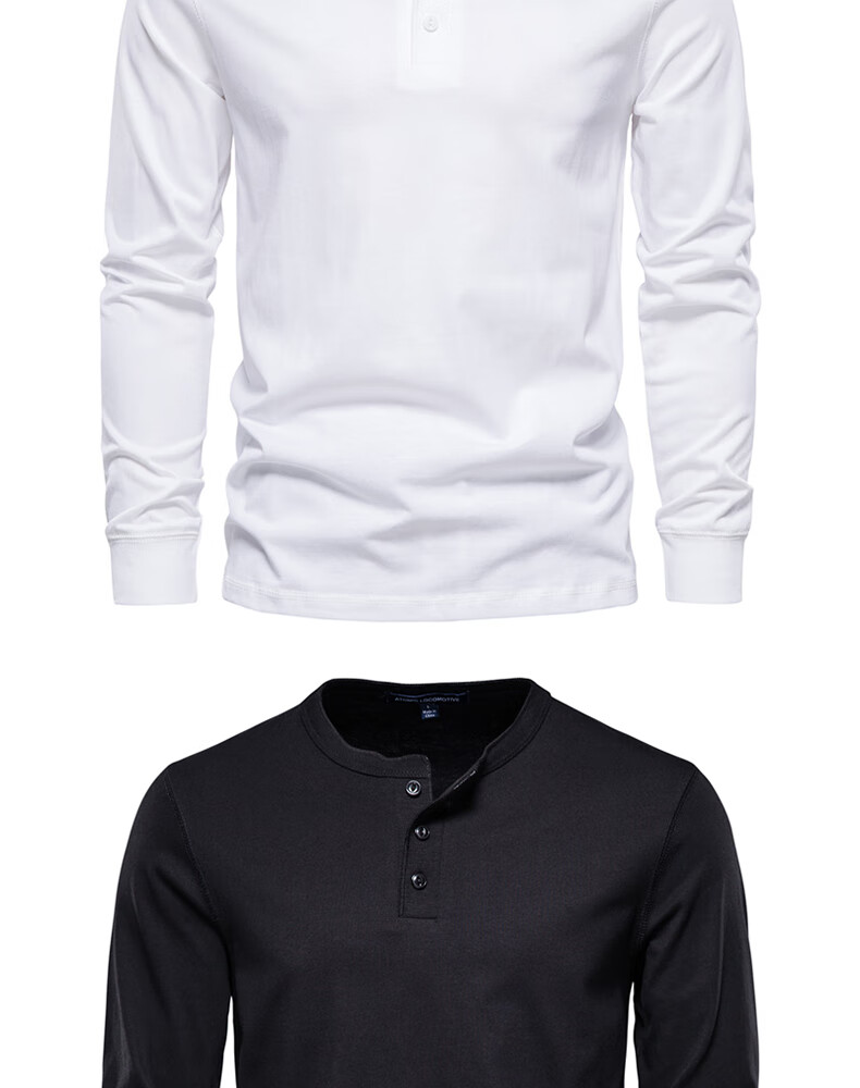 罗蒙(ROMON)重磅t恤亨利衫男开领长袖美式白色纯棉罗纹领上衣春秋季 军绿色 XL 体重165-175斤
