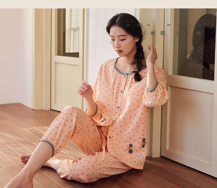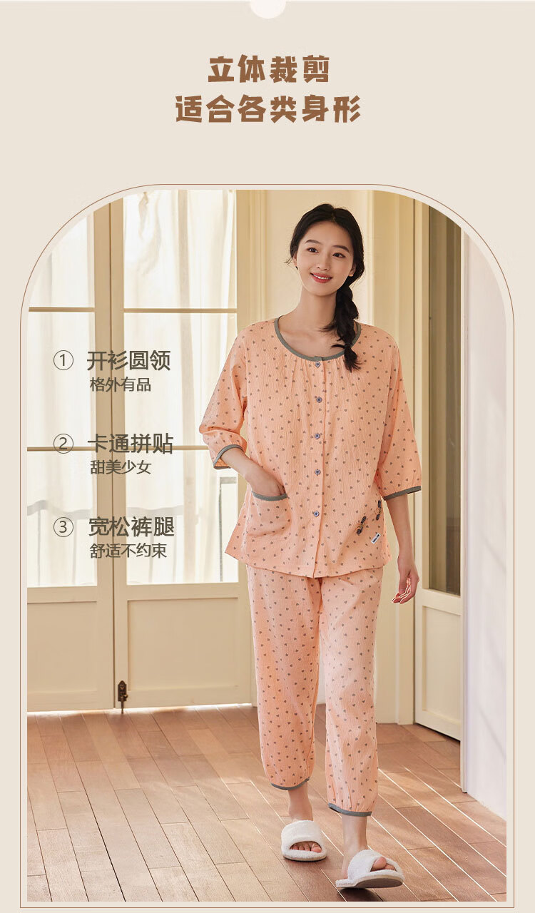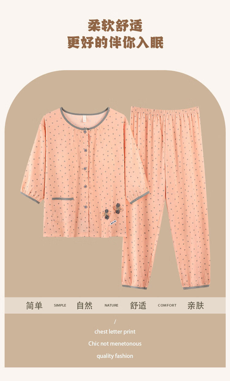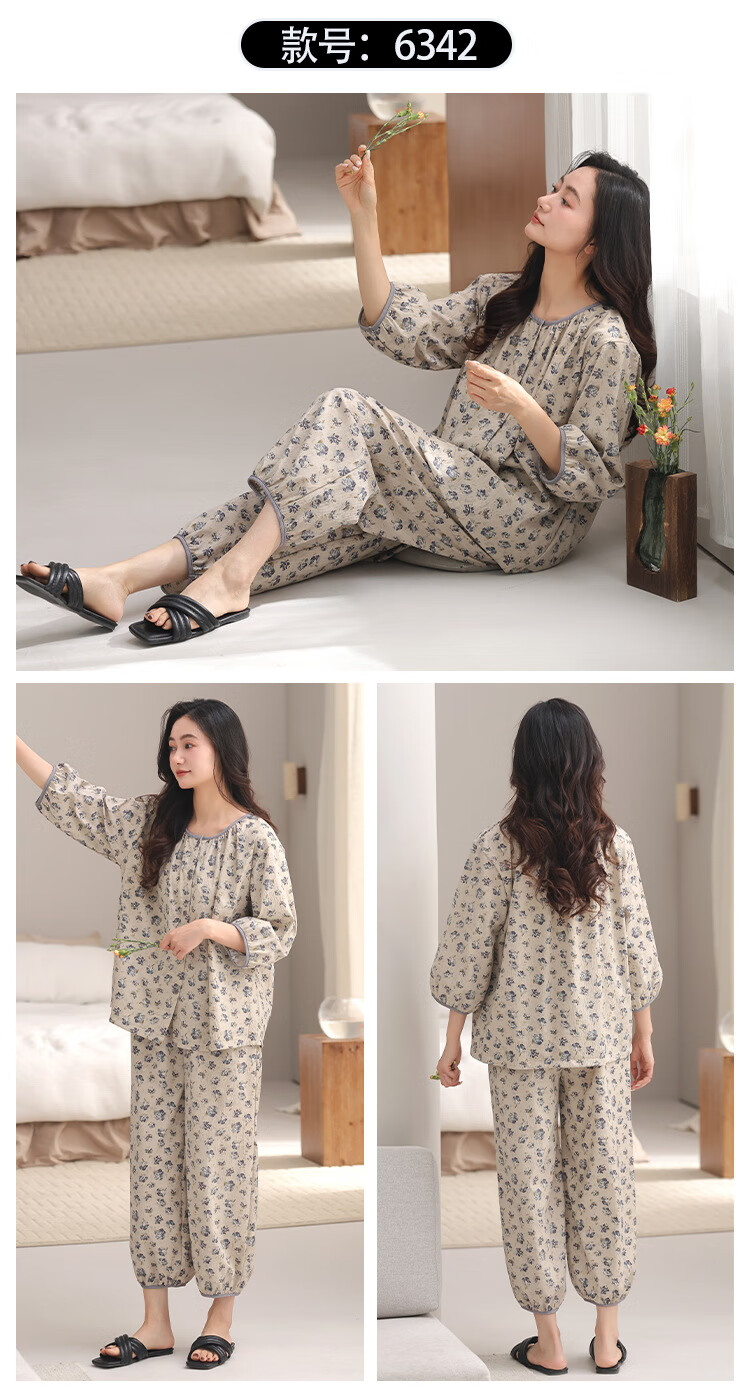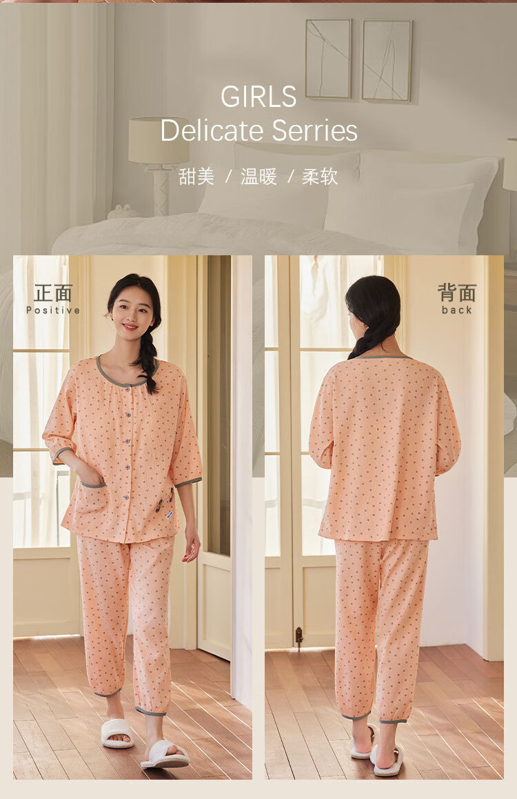【现货现发】韩版睡衣女夏季春秋带胸垫七分袖两件套装薄款甜美家 自带胸垫A2337 M 女【80-95斤】