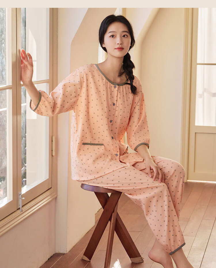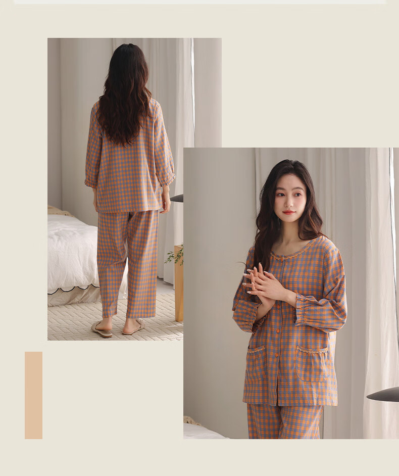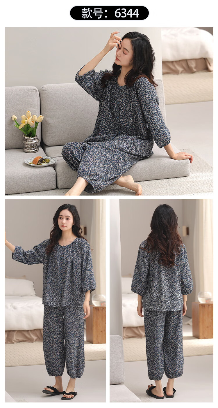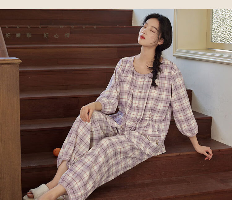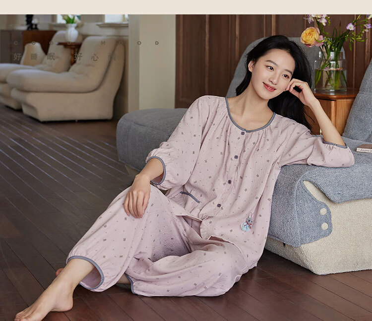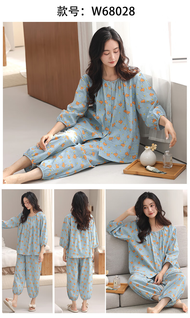 【现货现发】韩版睡衣女夏季春秋带胸垫七分袖两件套装薄款甜美家 自带胸垫A2337 M 女【80-95斤】