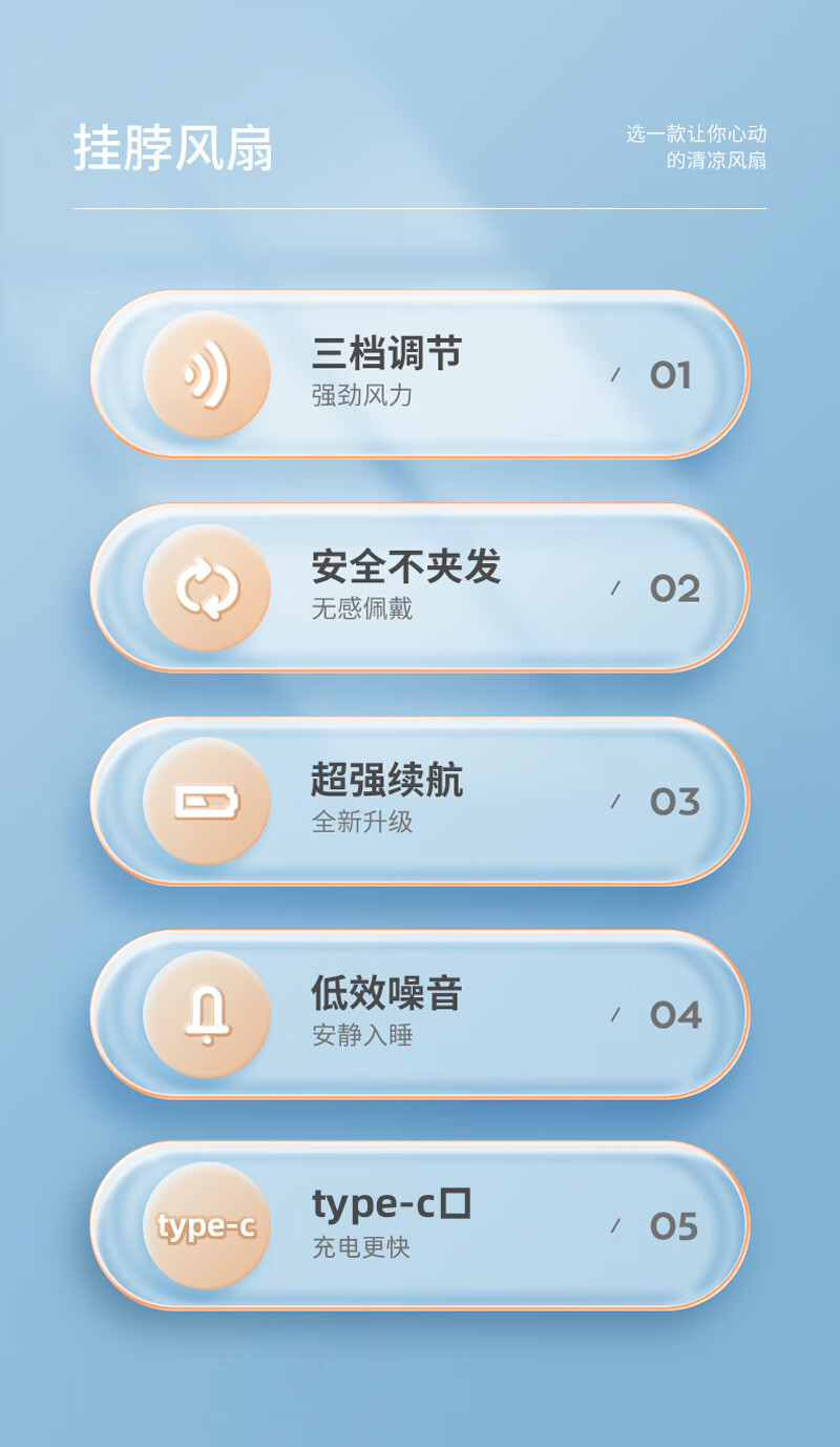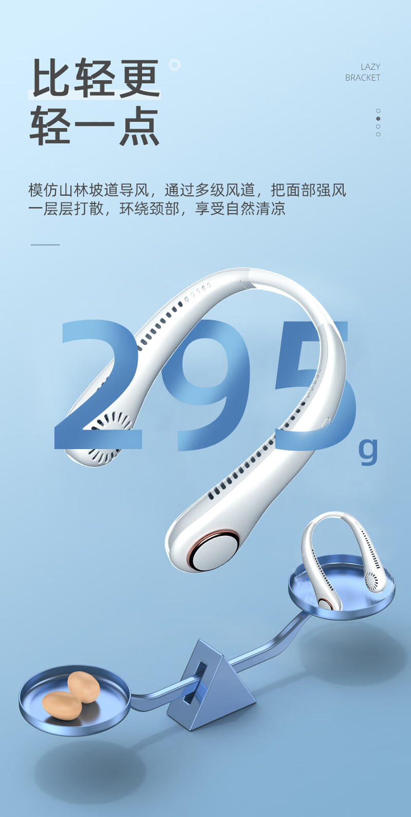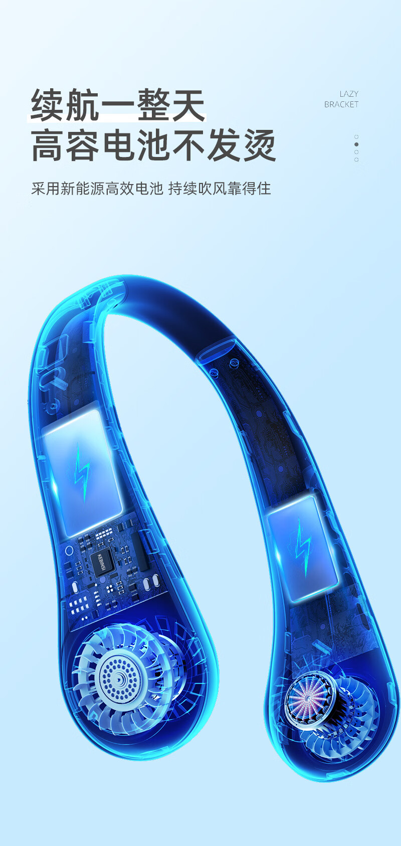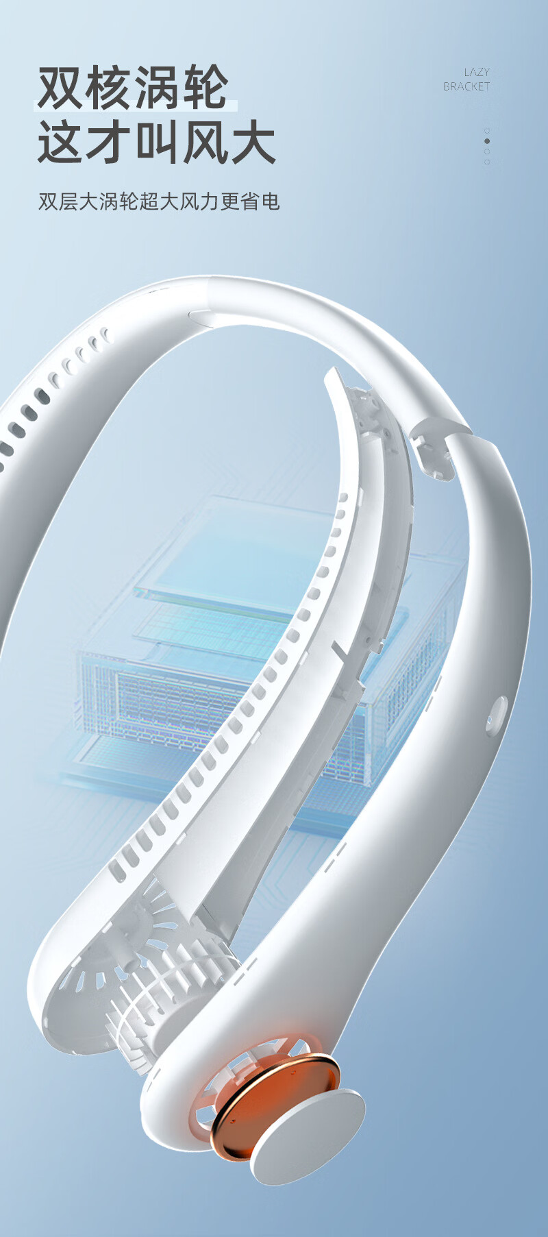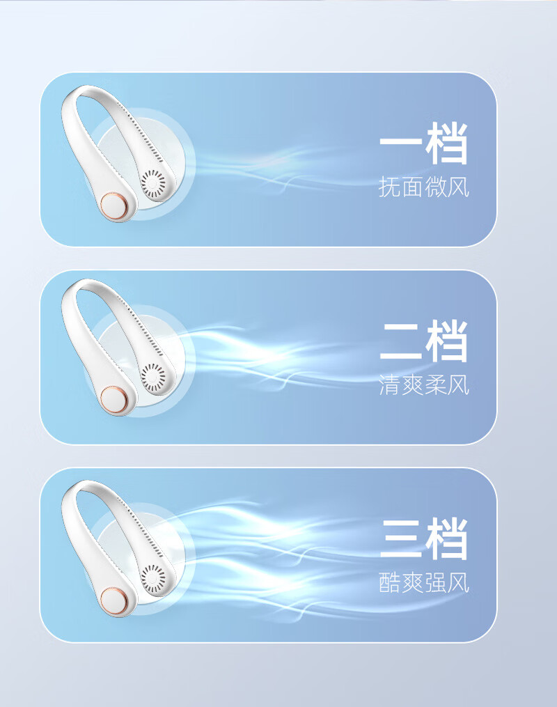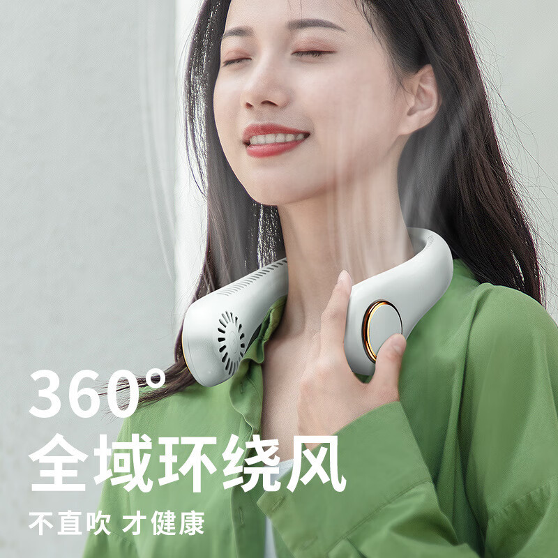 【严选百货】三挡无叶挂脖式风扇运动挂颈风扇夏日厨房无叶有刷挂 白色 有刷挂脖风扇