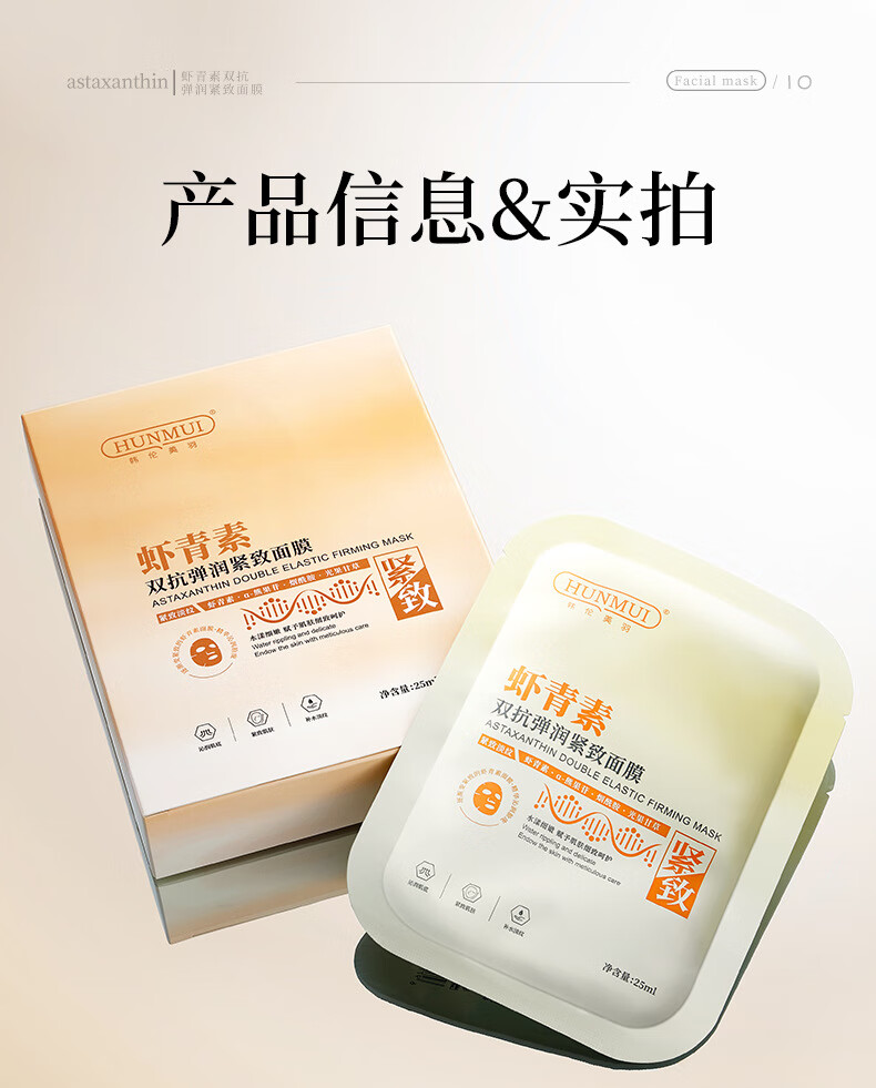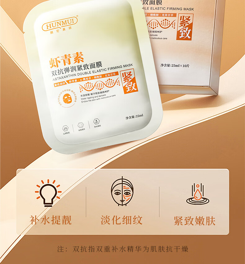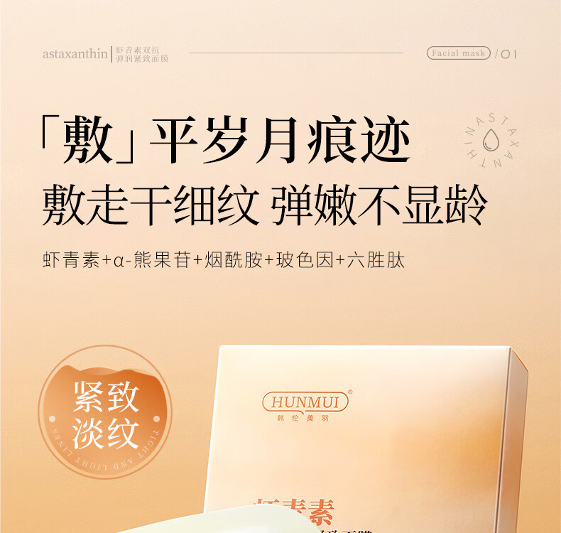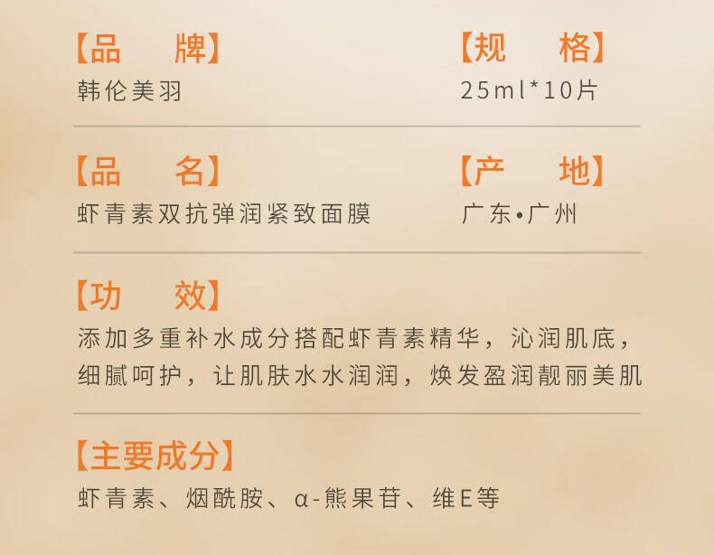 韩伦美羽虾青素面膜补水保湿去黄暗沉紧致 虾青素面膜25ml* 10片
