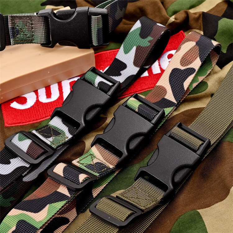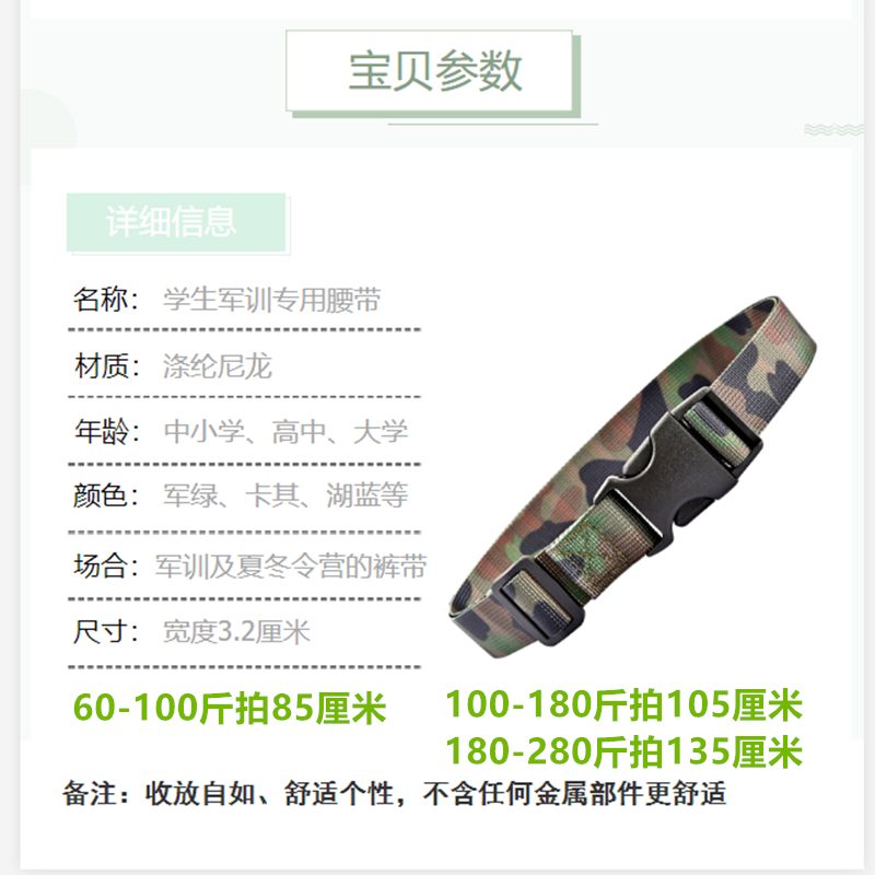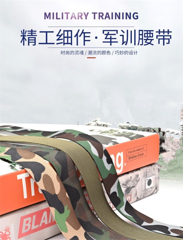 缇彩娜迷彩军训腰带女青少年中学小学生皮带男生初中生大学加长裤带帆布 3.2宽迷彩军绿105厘米