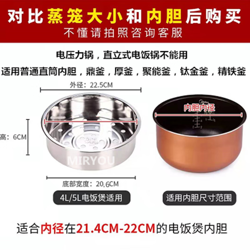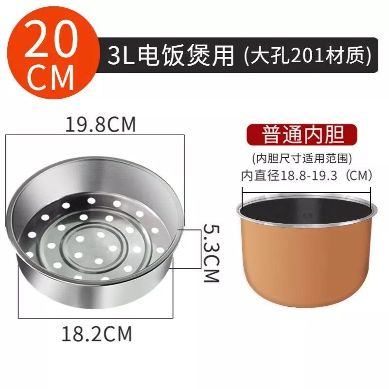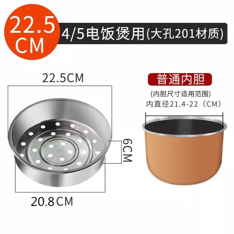 电饭煲蒸笼304不锈钢蒸格电饭锅笼屉蒸屉配件球釜3L/4L5L通用蒸架 【食品级】大孔304 21cm-【4L-5L球胆专用】看图