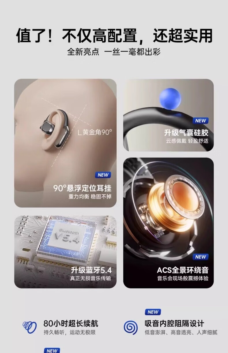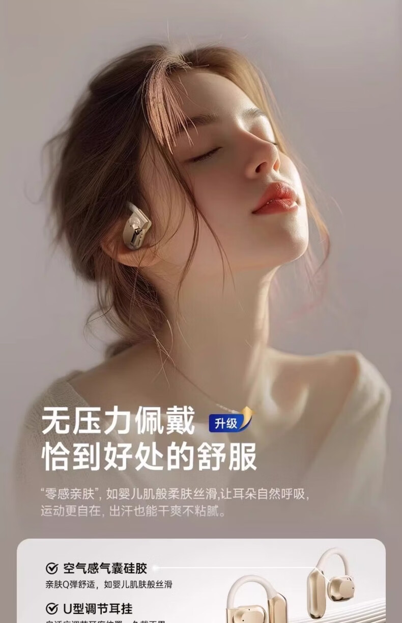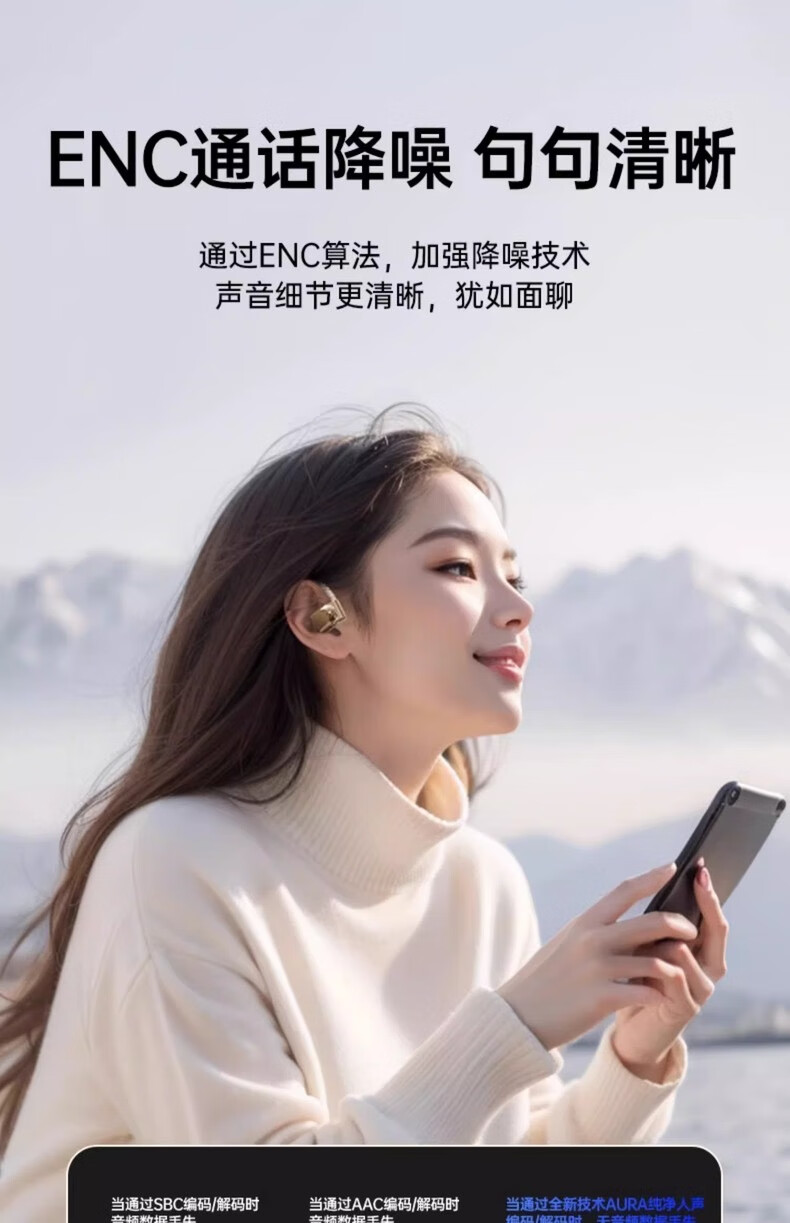 FEINADE【柏林之声丨顶配新款】蓝牙耳机挂耳式无线耳机骨传导概念开放式不入耳降噪运动超长续航适用华为 月光白|ENC降噪|超强音质|不漏音