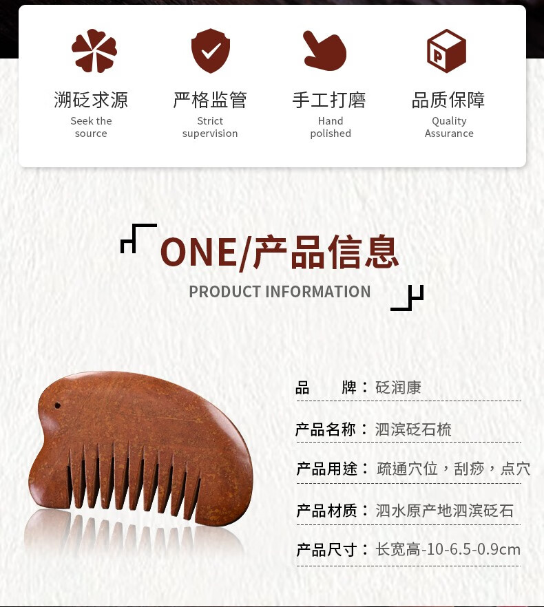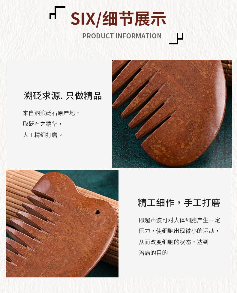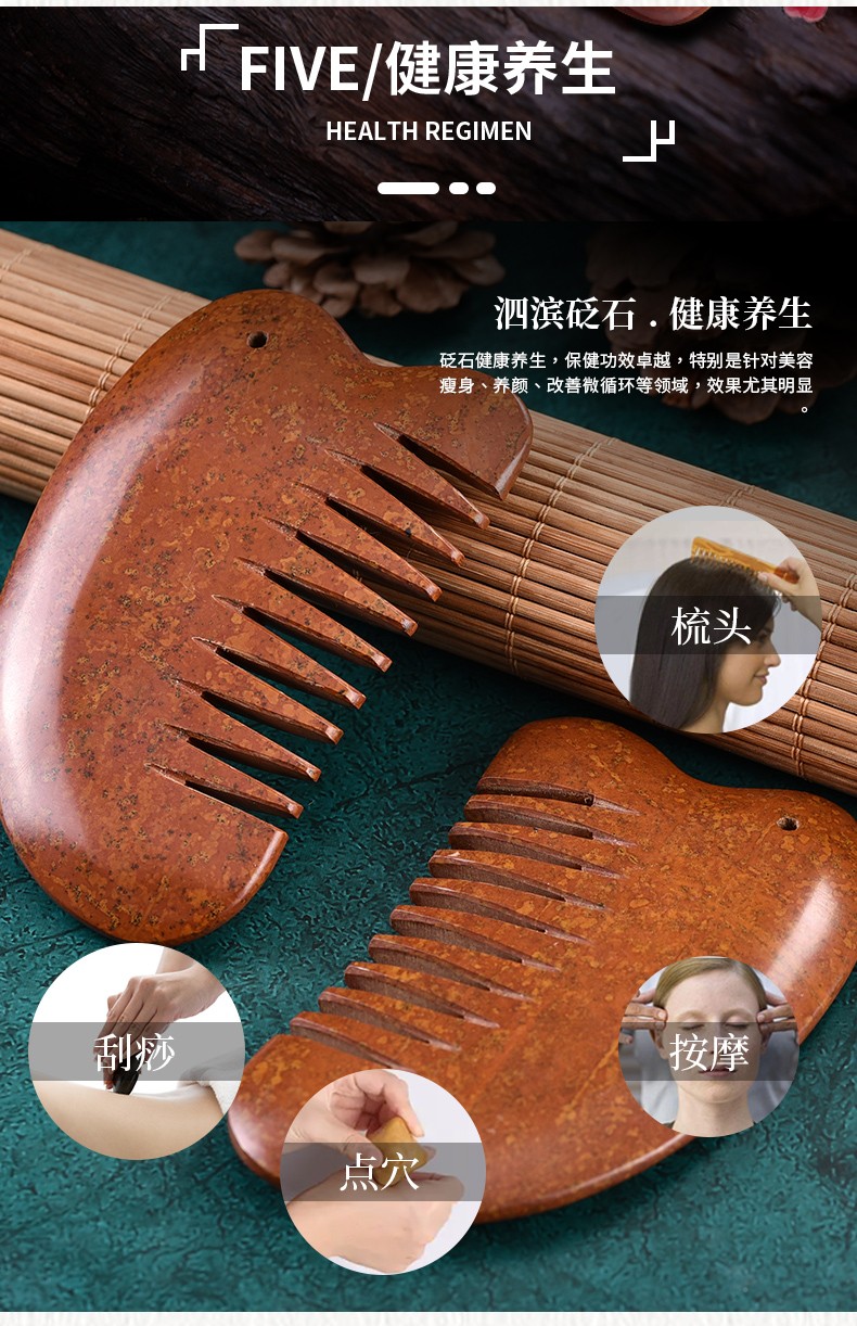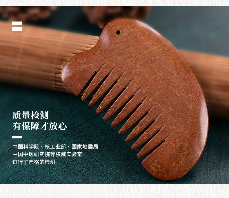 砭润康 天然砭石富贵红玄黄泗滨红砭石梳子头部按摩梳全身通用多用梳 9厘米砭石梳一把 送绳子+穴位图+袋子