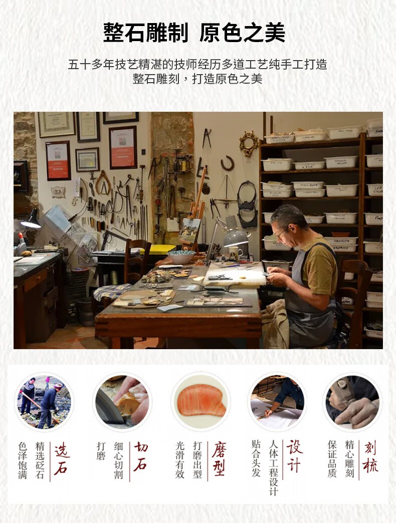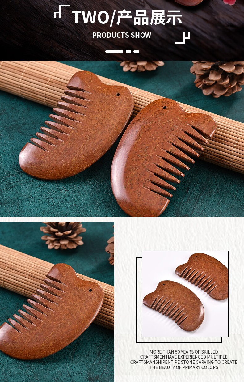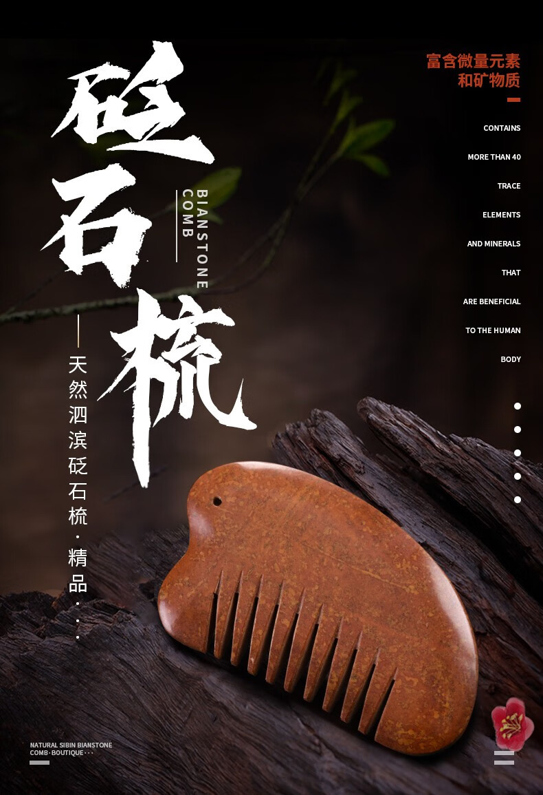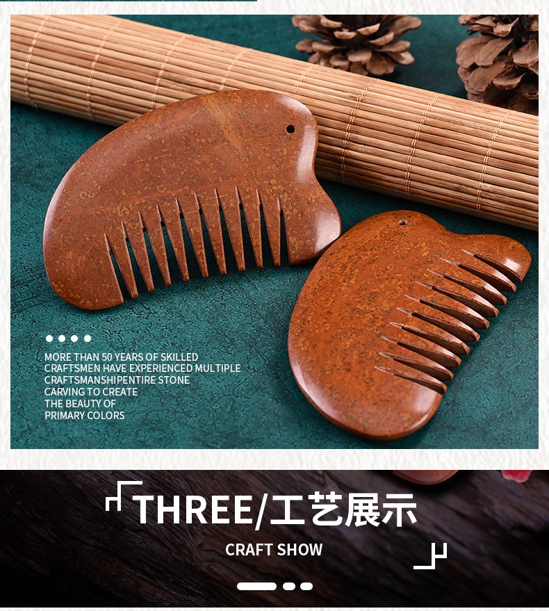砭润康 天然砭石富贵红玄黄泗滨红砭石梳子头部按摩梳全身通用多用梳 9厘米砭石梳一把 送绳子+穴位图+袋子