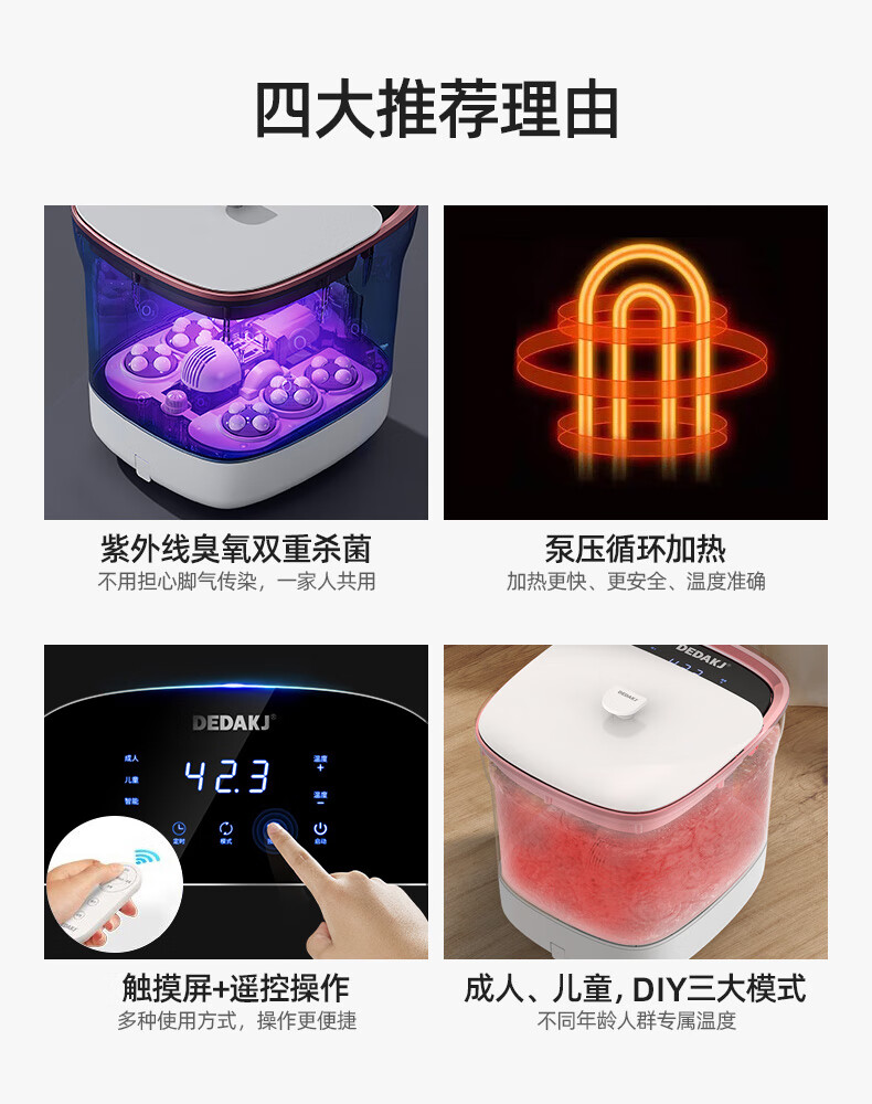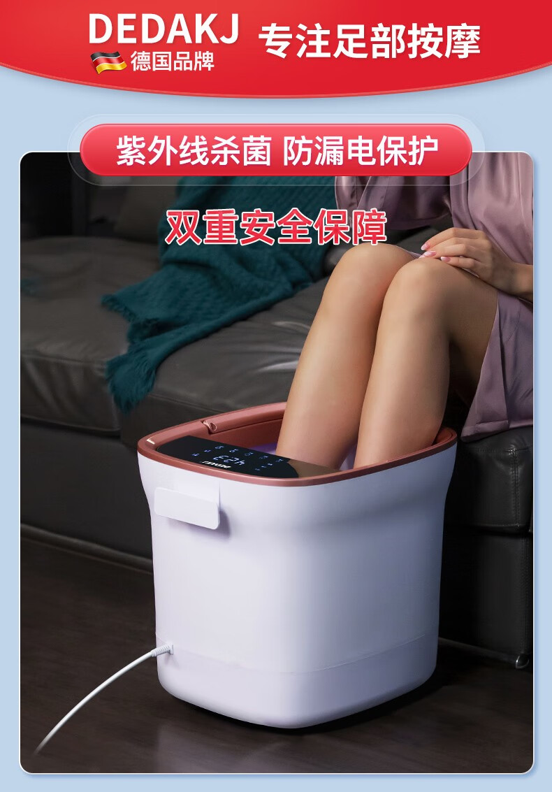 DEDAKJ泡脚桶按摩全自动足浴盆恒温加热电动洗脚桶足疗盆家用洗脚盆送爸爸妈妈父母长辈生日实用送礼物 尊享版【双温控制+涌泉冲浪+紫外杀菌】HF55