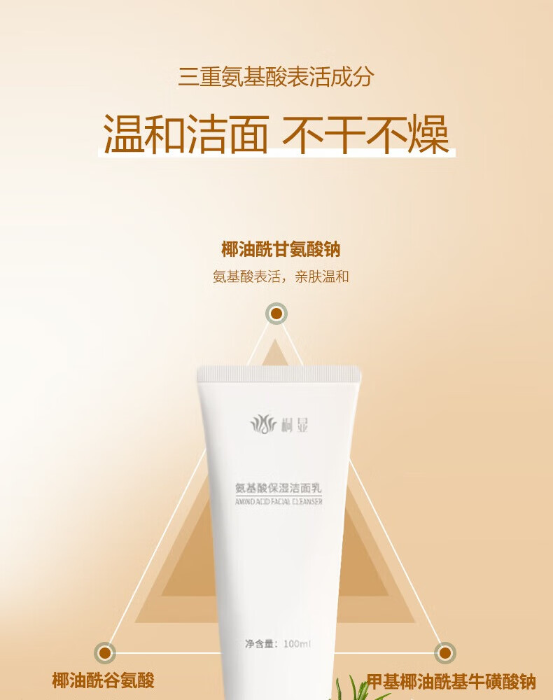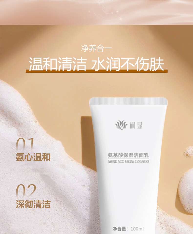 桐显氨基酸保湿洁面乳 男女通用氨基酸洁面乳温和清洁保湿 温和润肤 氨基酸洁面乳100g