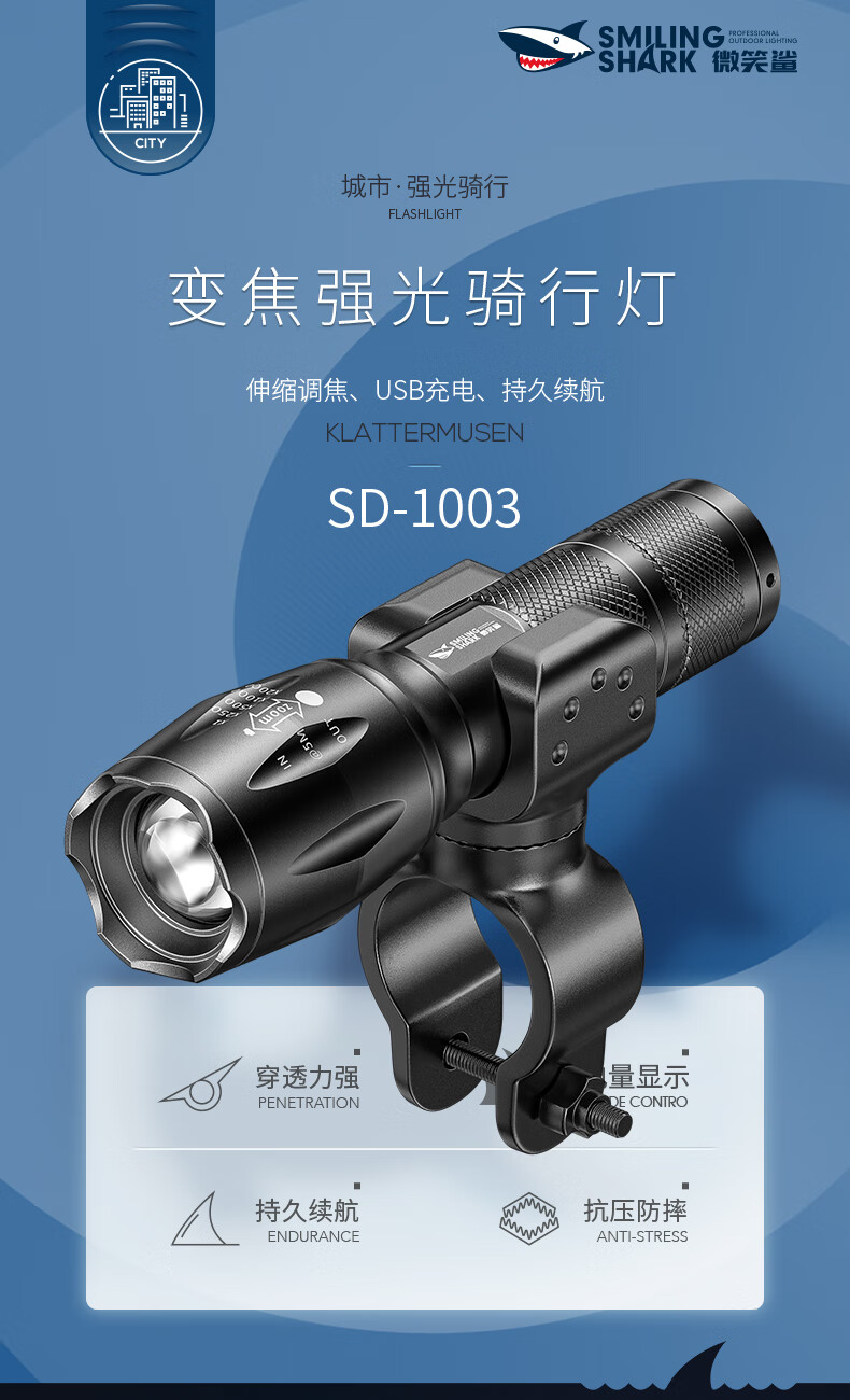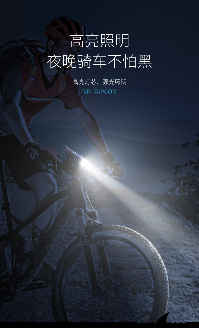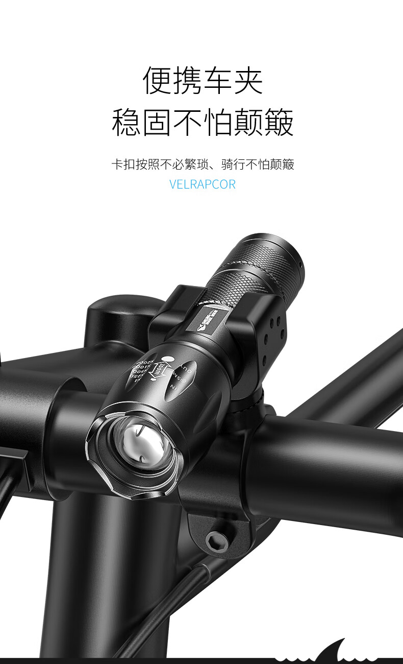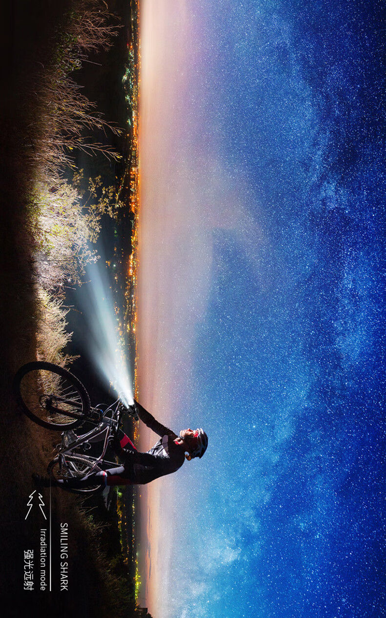 微笑鲨自行车灯前灯强光充电超亮夜间手电筒夜骑骑行装备单车山地车车灯 【铝合金材质】高亮款+自行车夹
