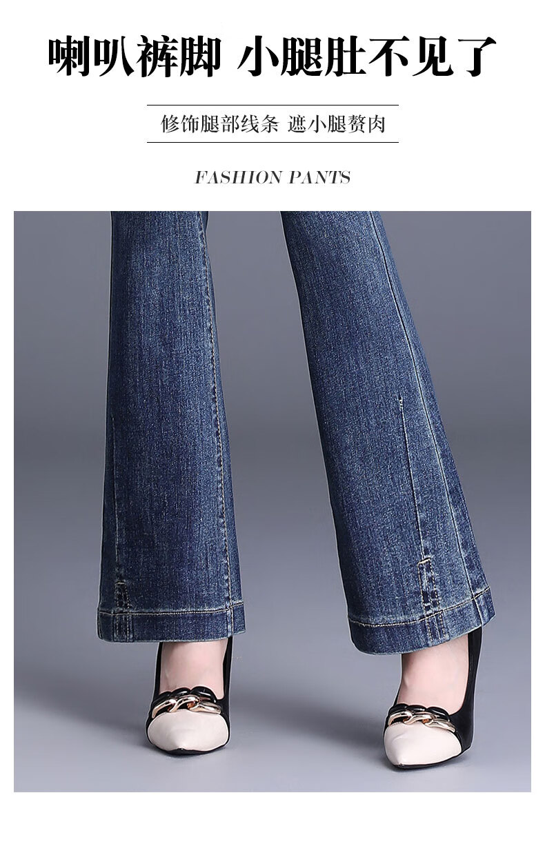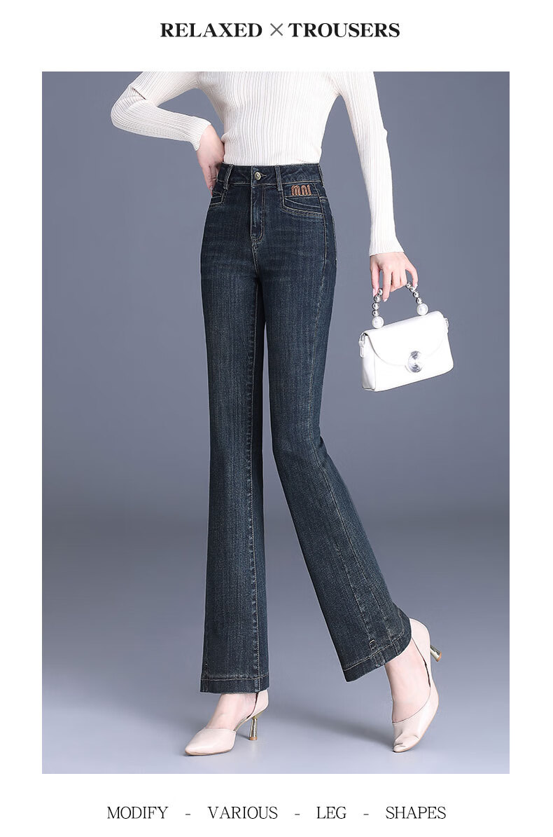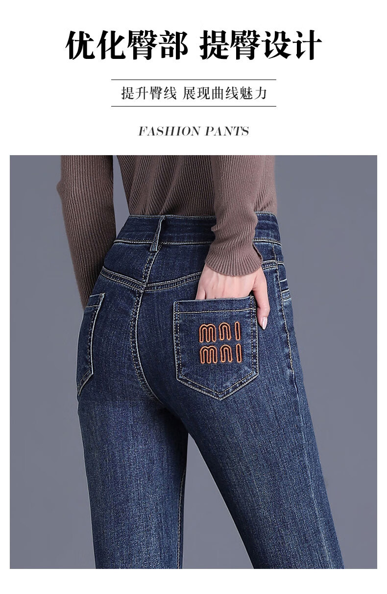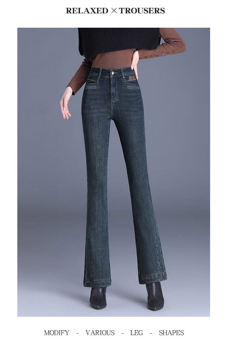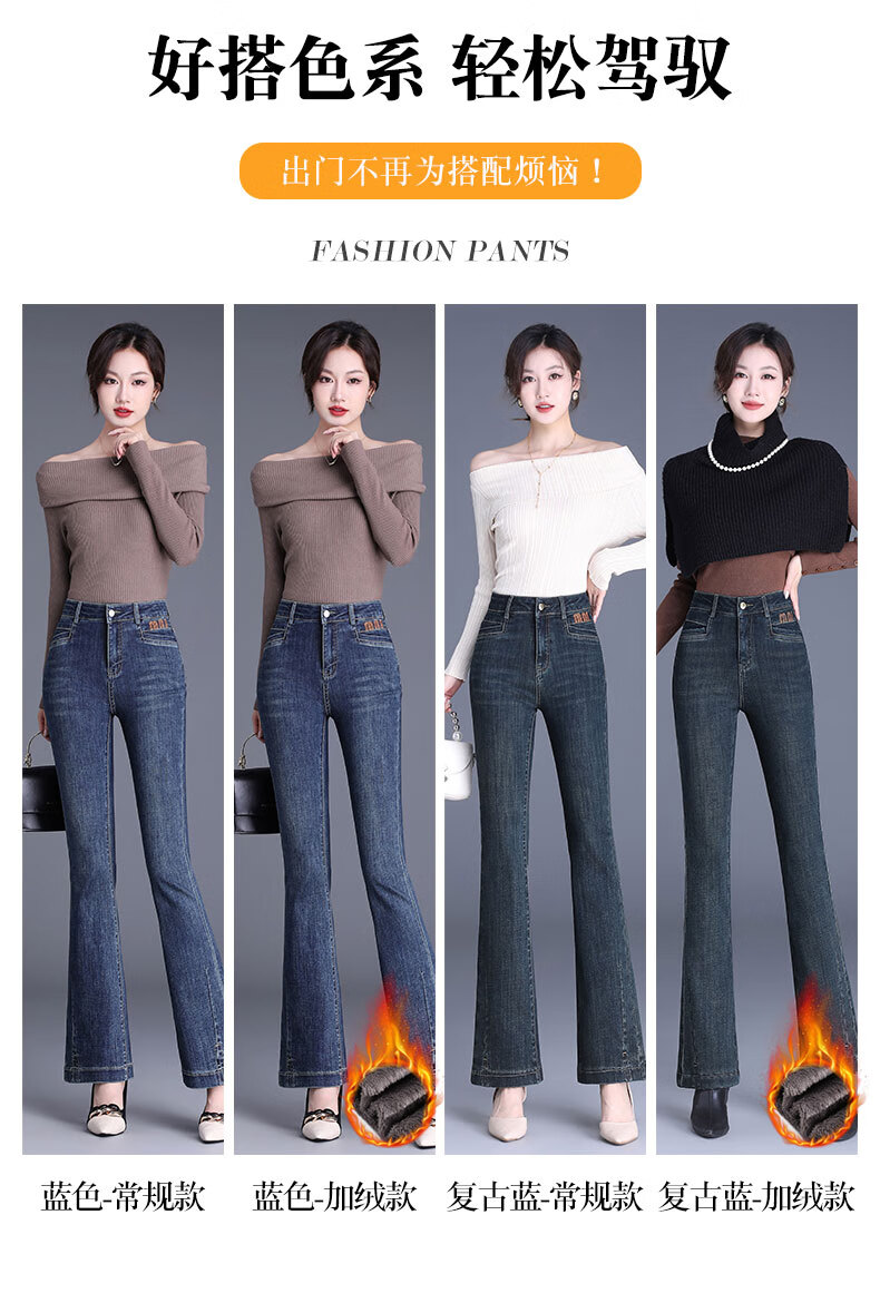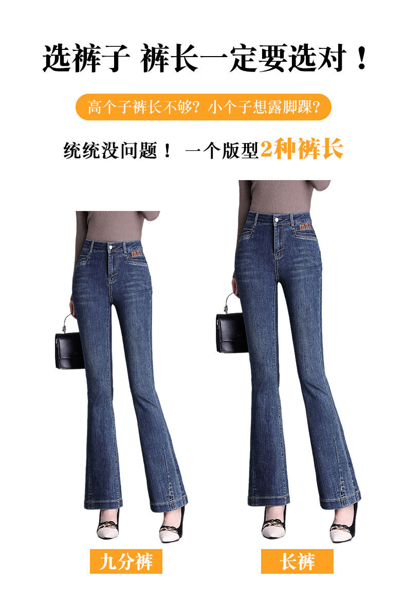 RAJKPOOR复古牛仔裤微喇长裤女春秋2025新款高腰弹力小个子九分刺绣喇叭裤 复古蓝-长裤《加绒》 4XL /建议146-155斤