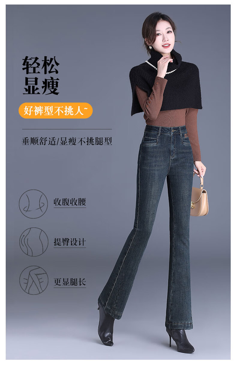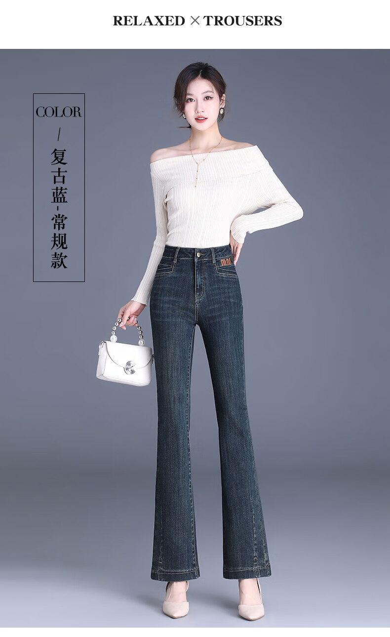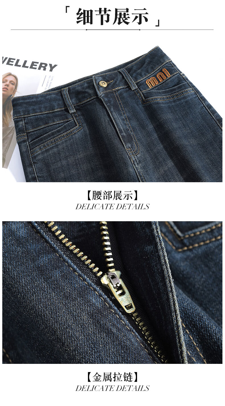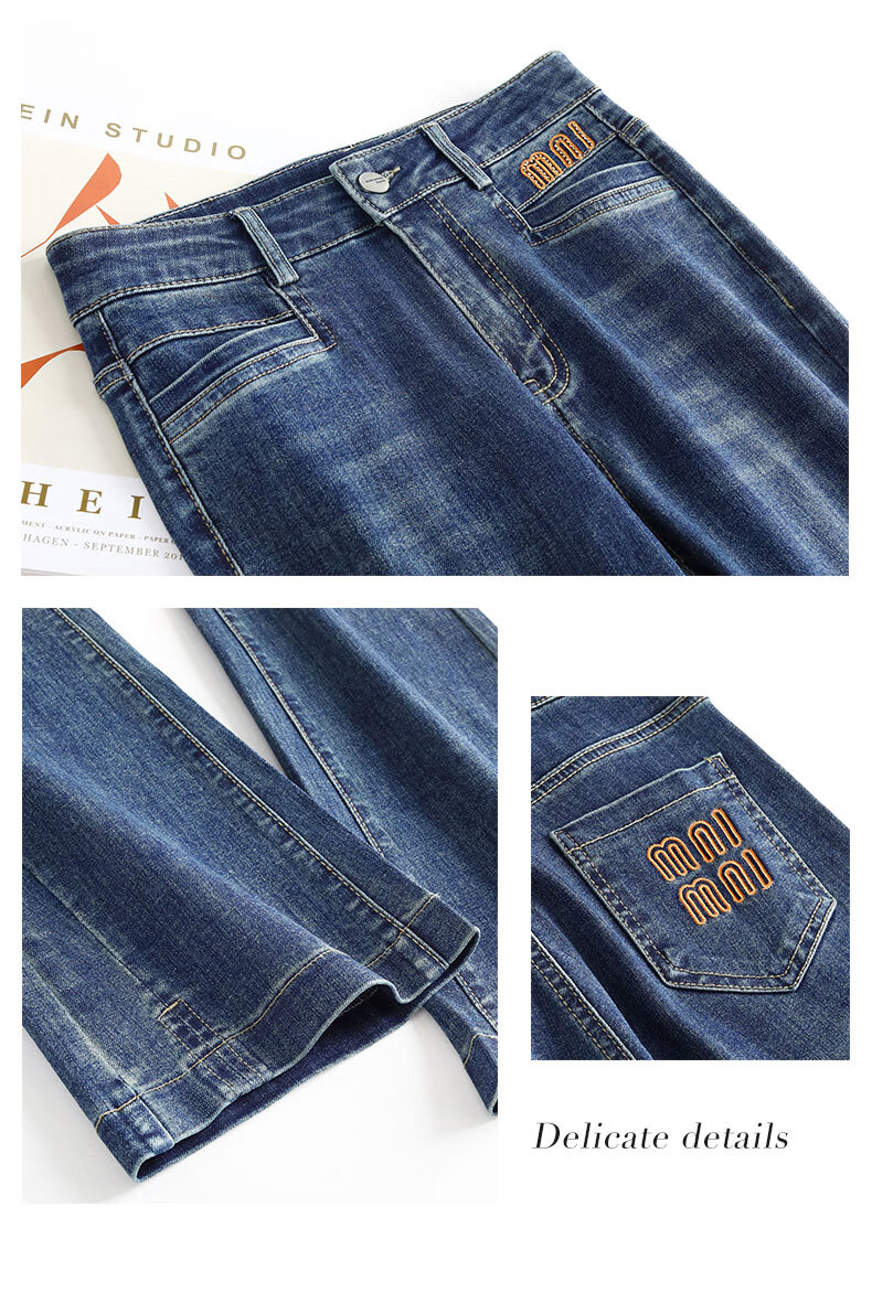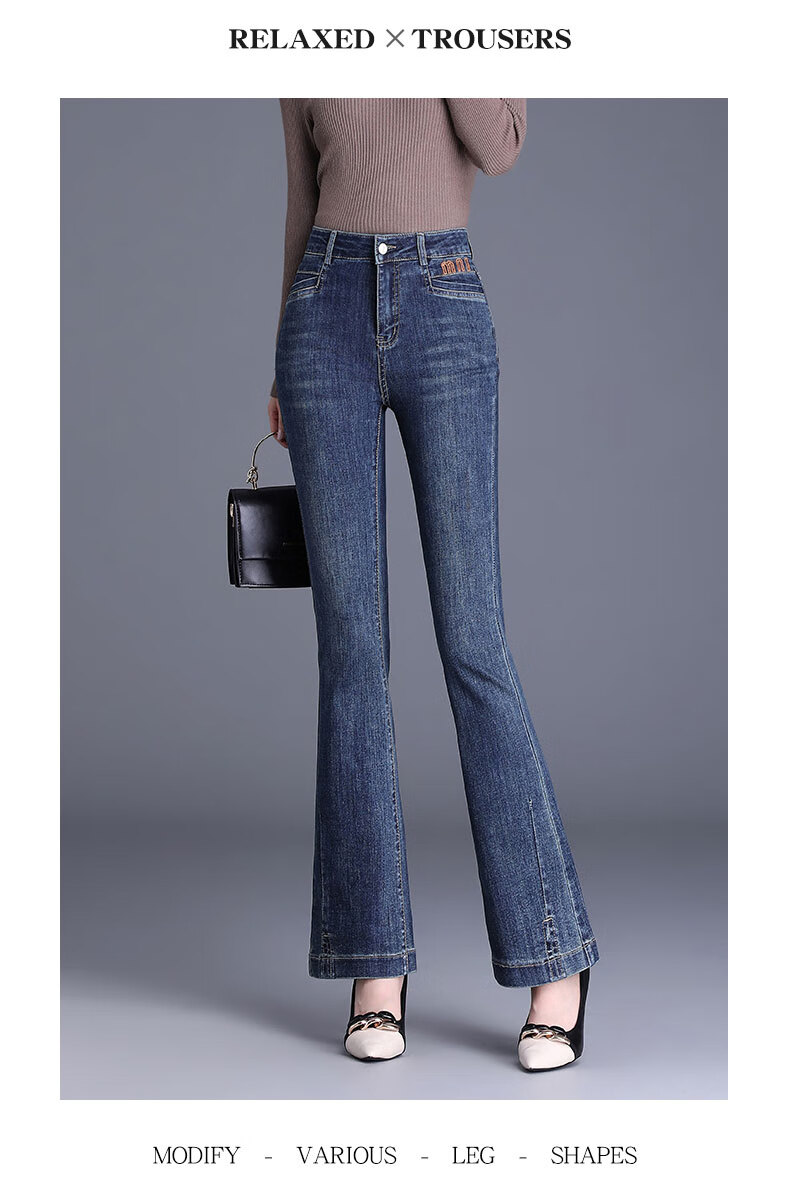 RAJKPOOR复古牛仔裤微喇长裤女春秋2025新款高腰弹力小个子九分刺绣喇叭裤 复古蓝-长裤《加绒》 4XL /建议146-155斤