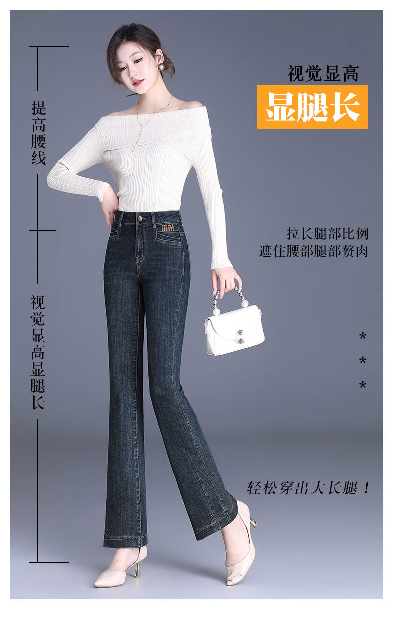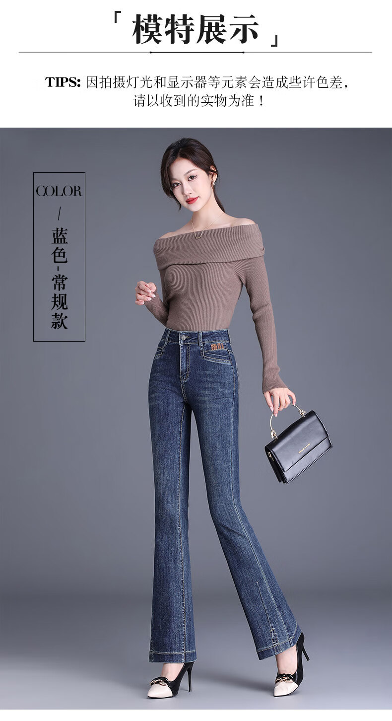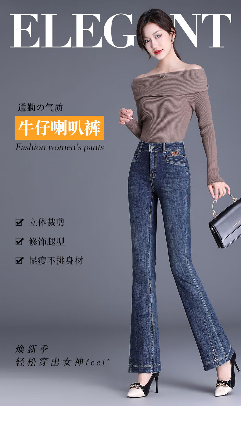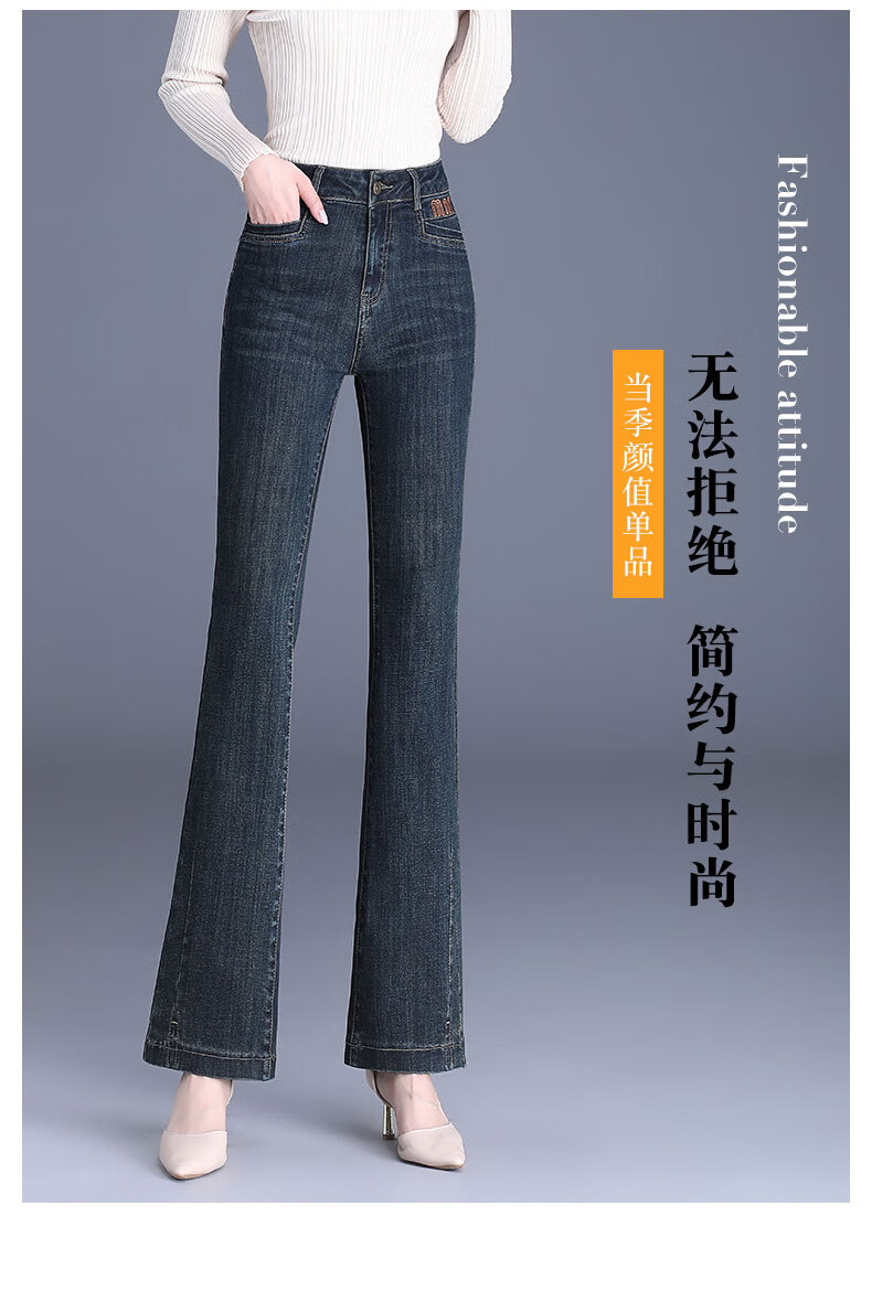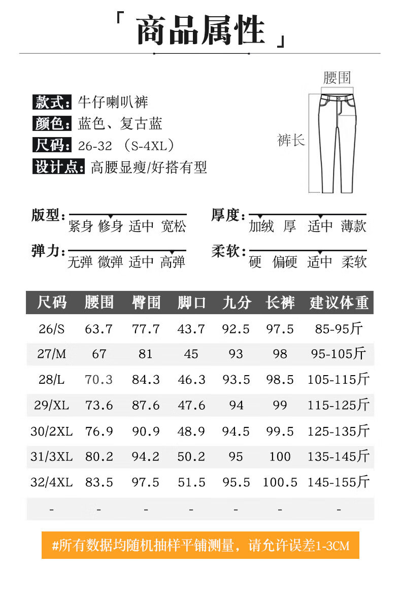 RAJKPOOR复古牛仔裤微喇长裤女春秋2025新款高腰弹力小个子九分刺绣喇叭裤 复古蓝-长裤《加绒》 4XL /建议146-155斤