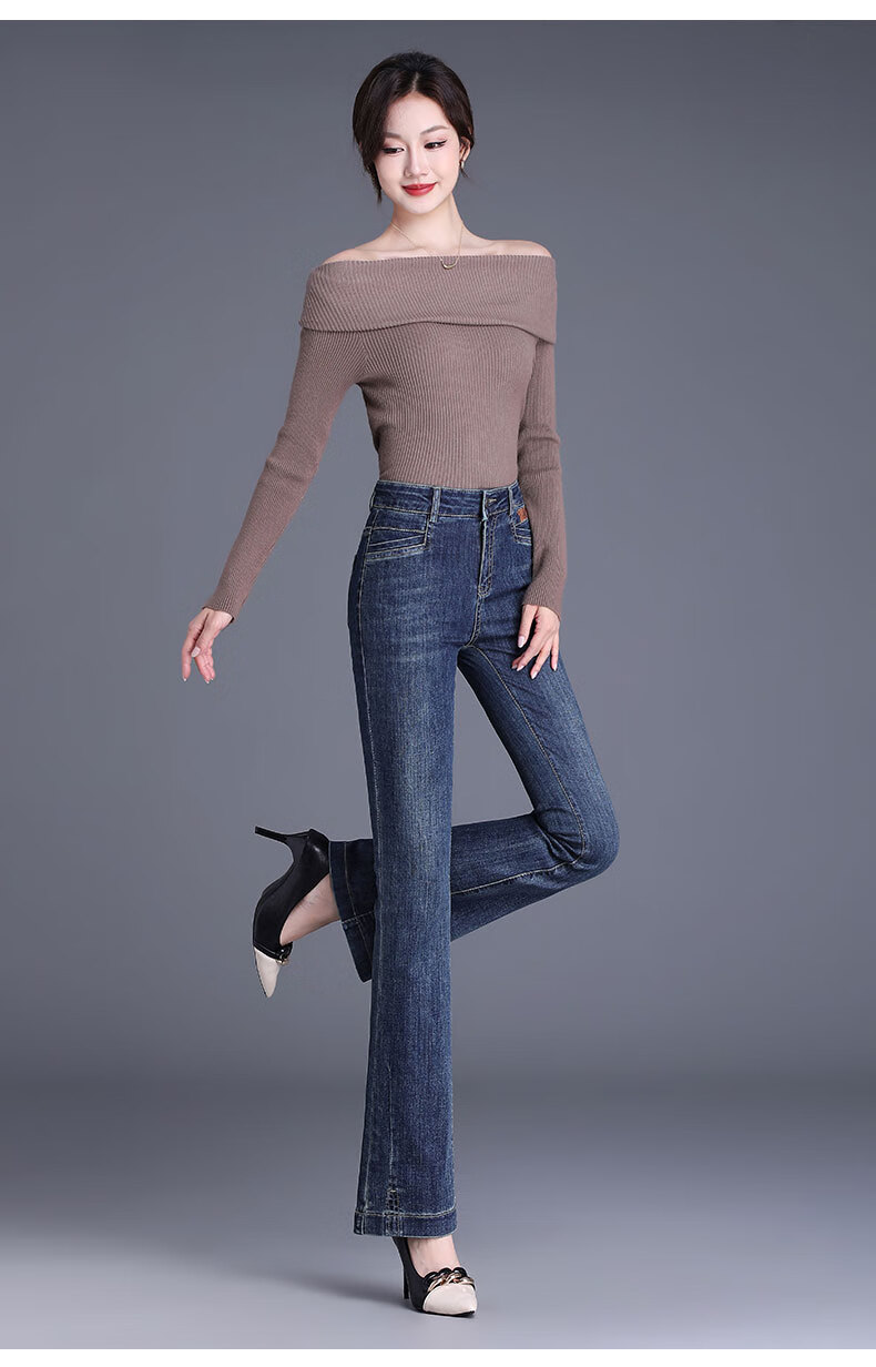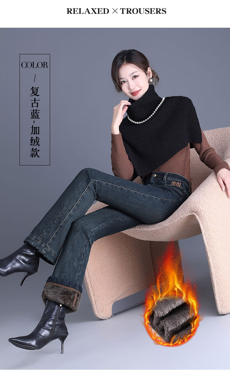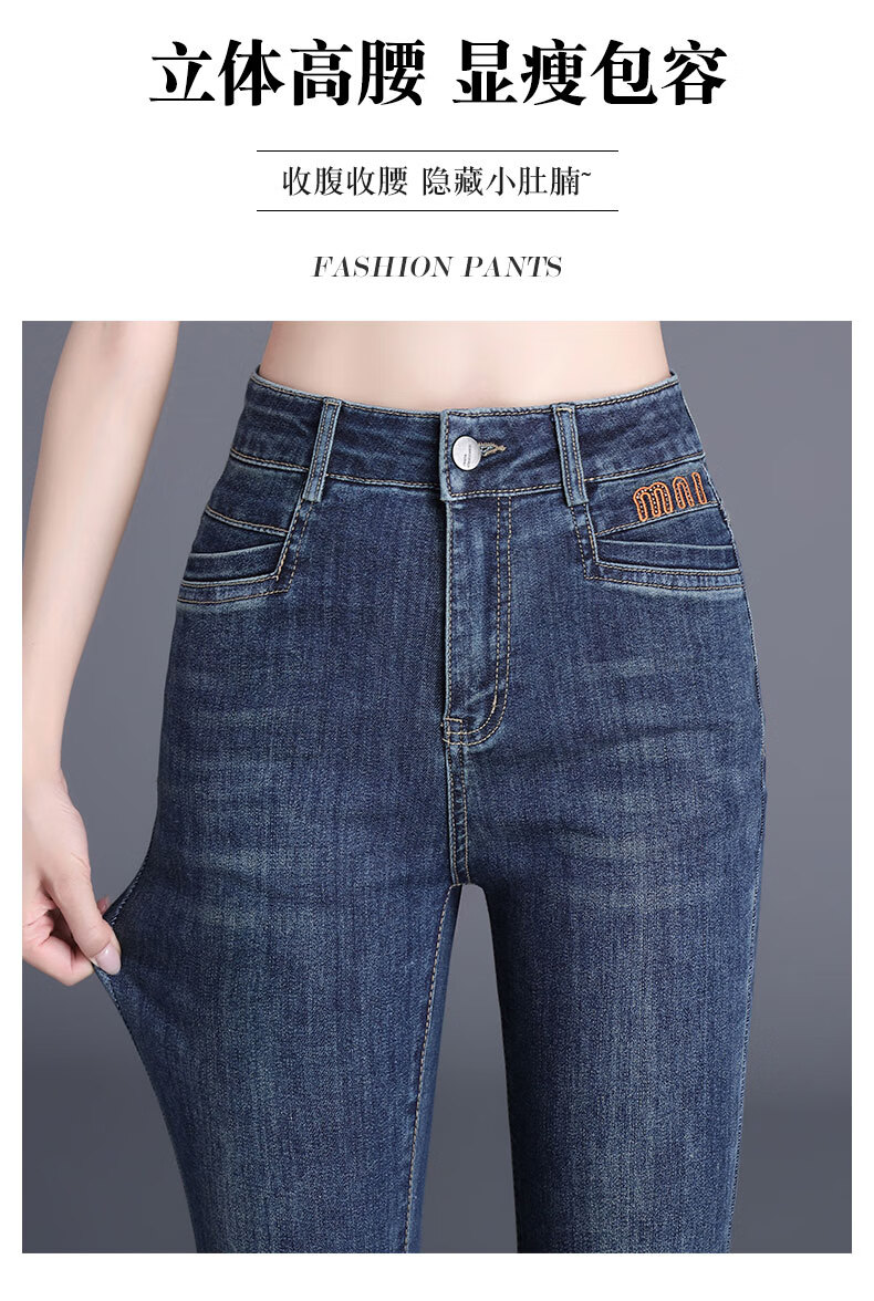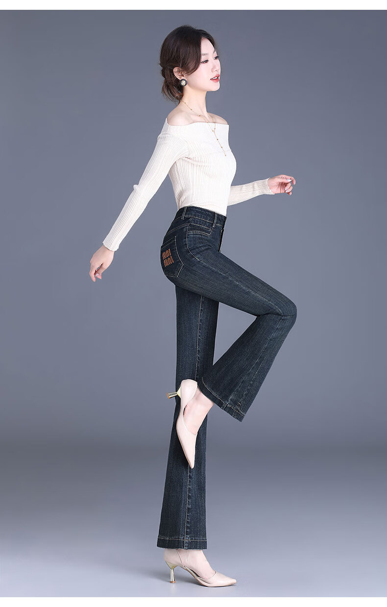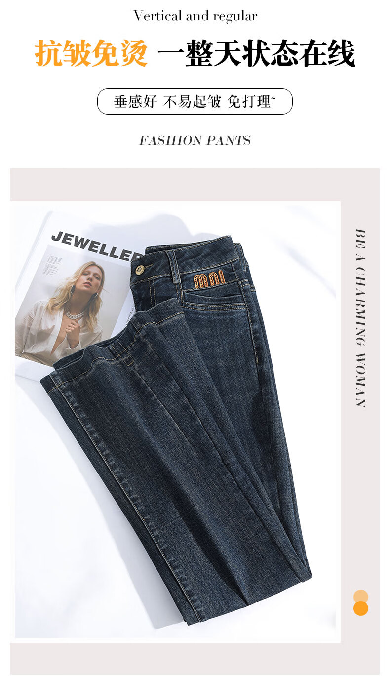 RAJKPOOR复古牛仔裤微喇长裤女春秋2025新款高腰弹力小个子九分刺绣喇叭裤 复古蓝-长裤《加绒》 4XL /建议146-155斤