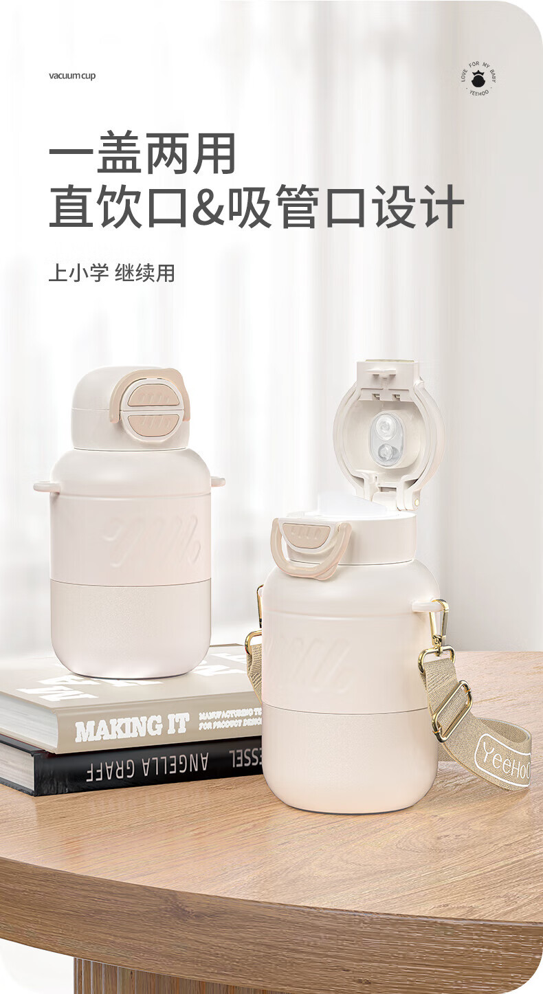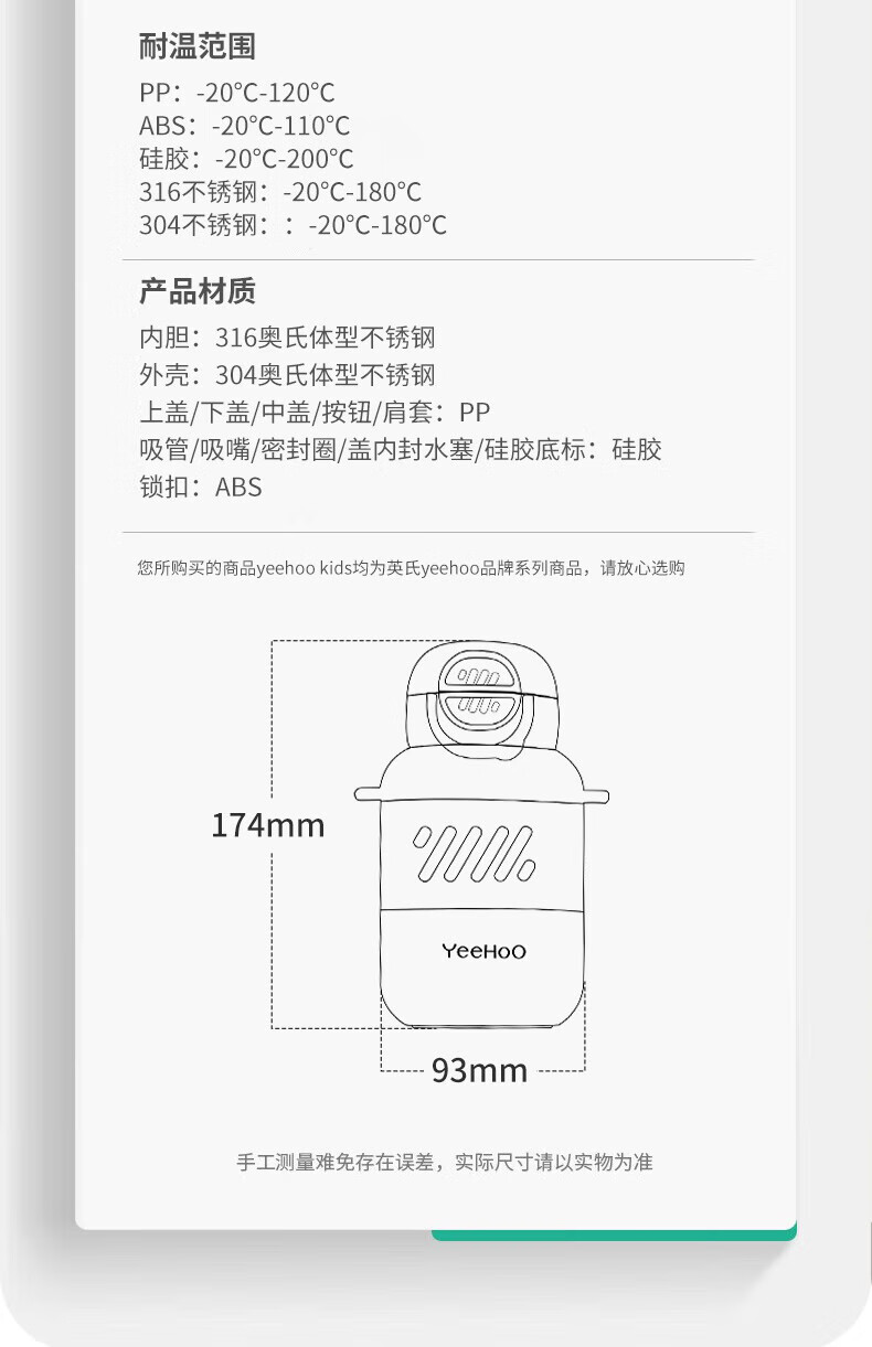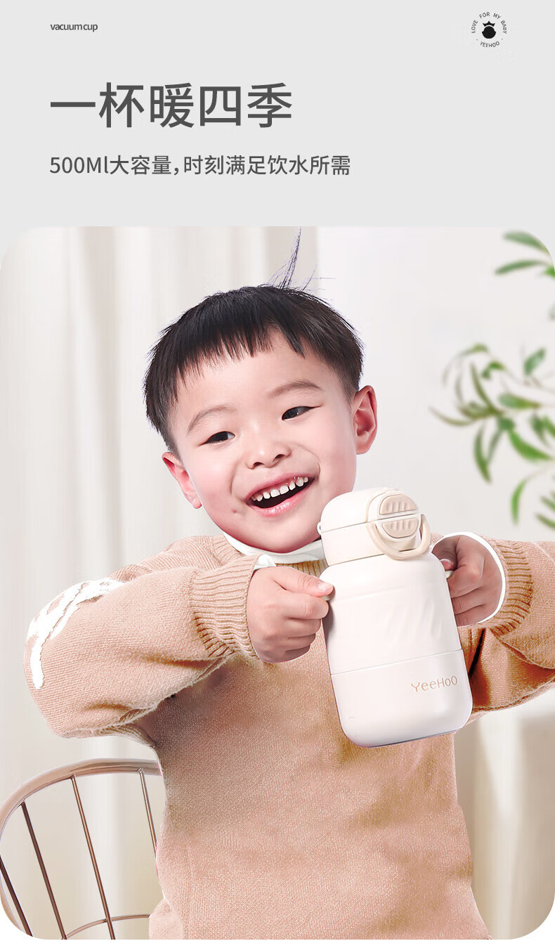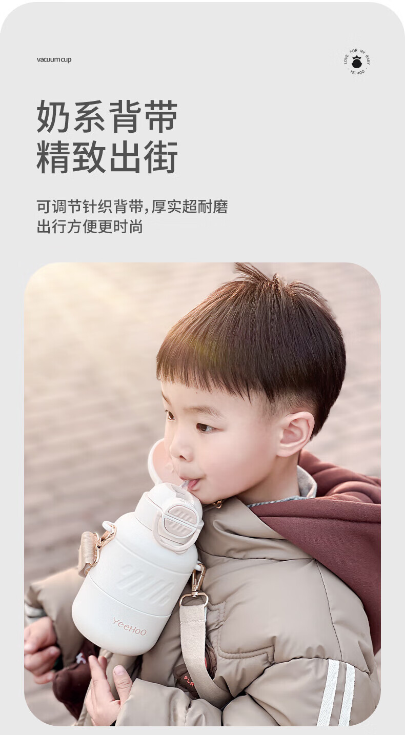 英氏儿童保温杯宝宝吸管水杯316不锈钢水壶一岁以上外出大容量直饮杯