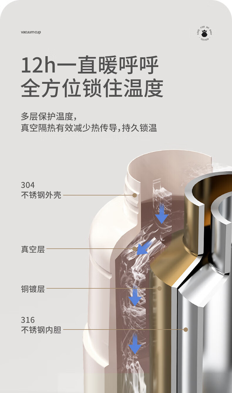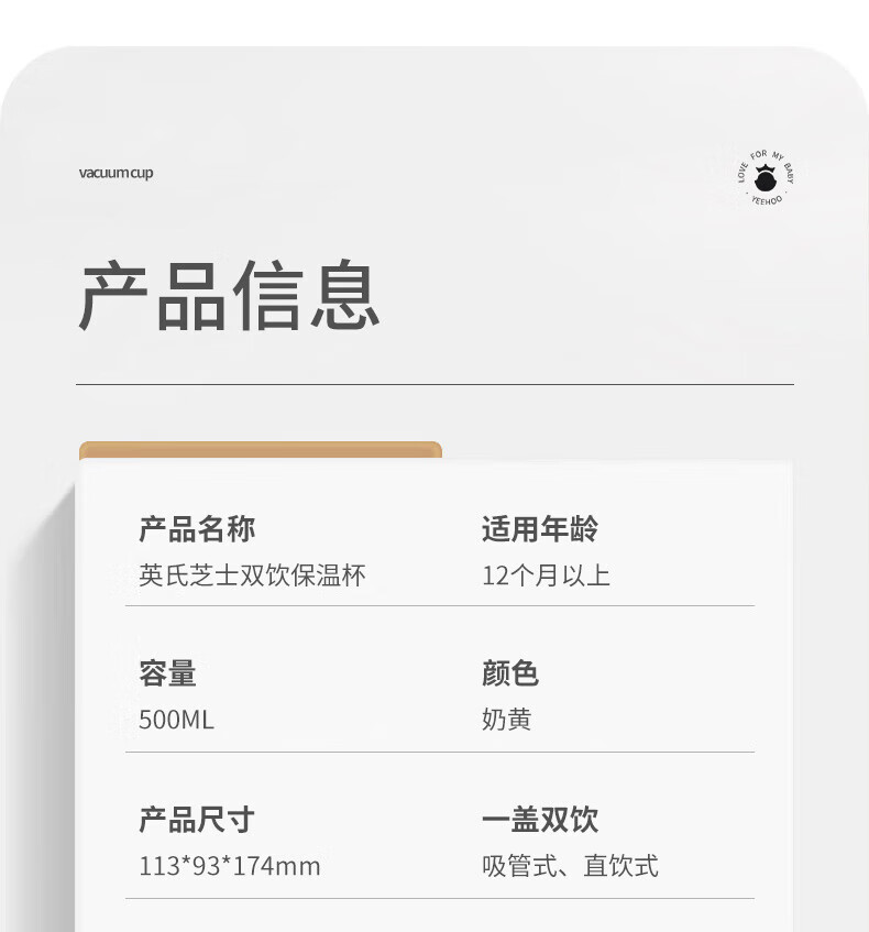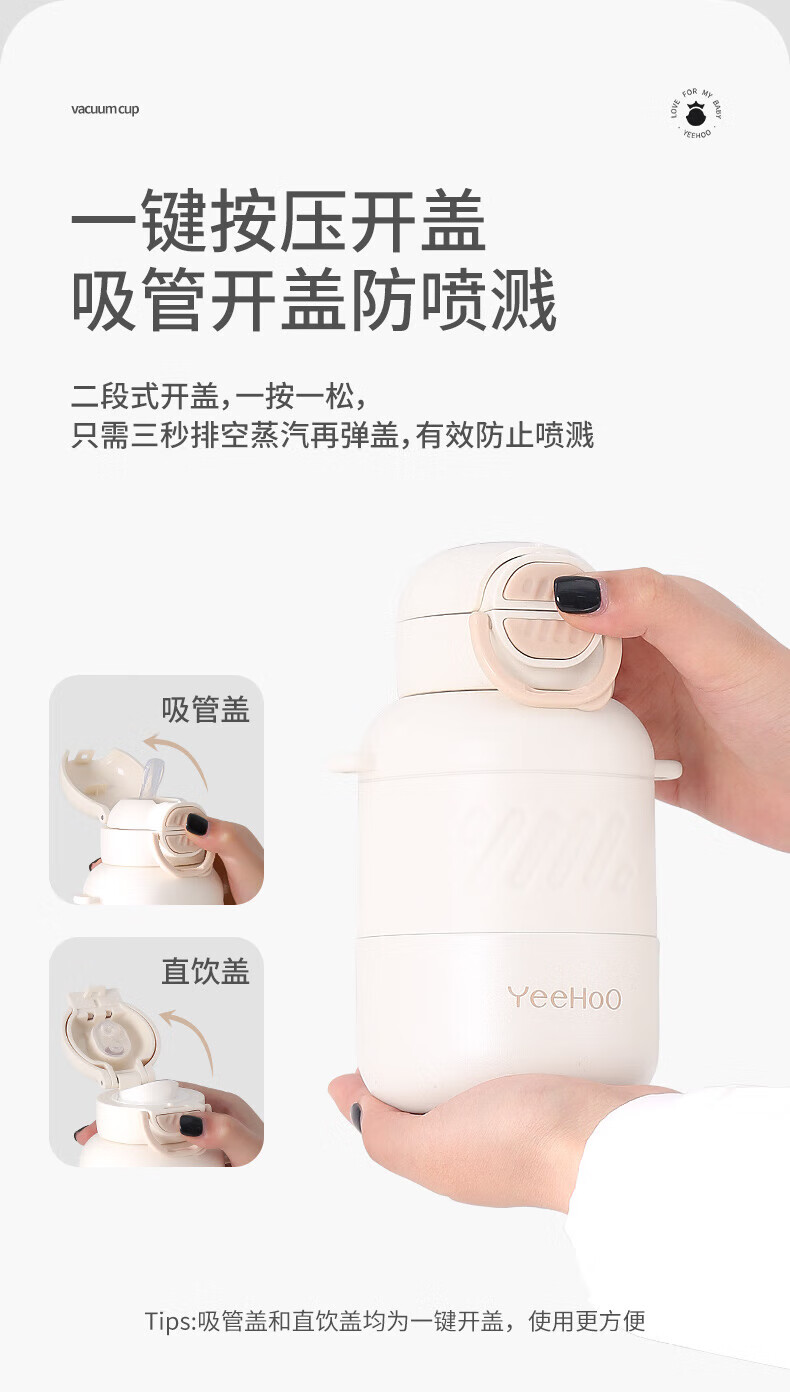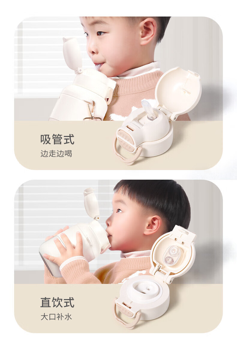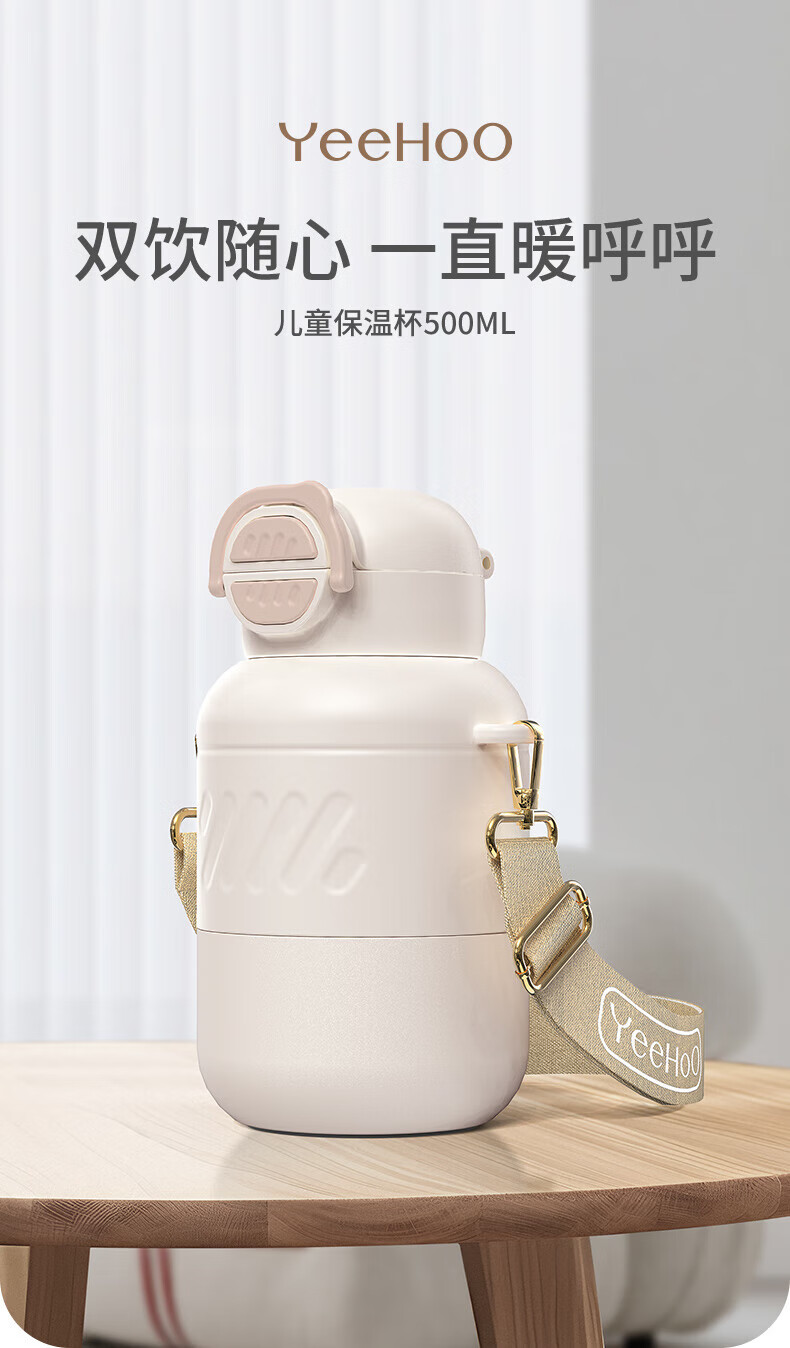 英氏儿童保温杯宝宝吸管水杯316不锈钢水壶一岁以上外出大容量直饮杯