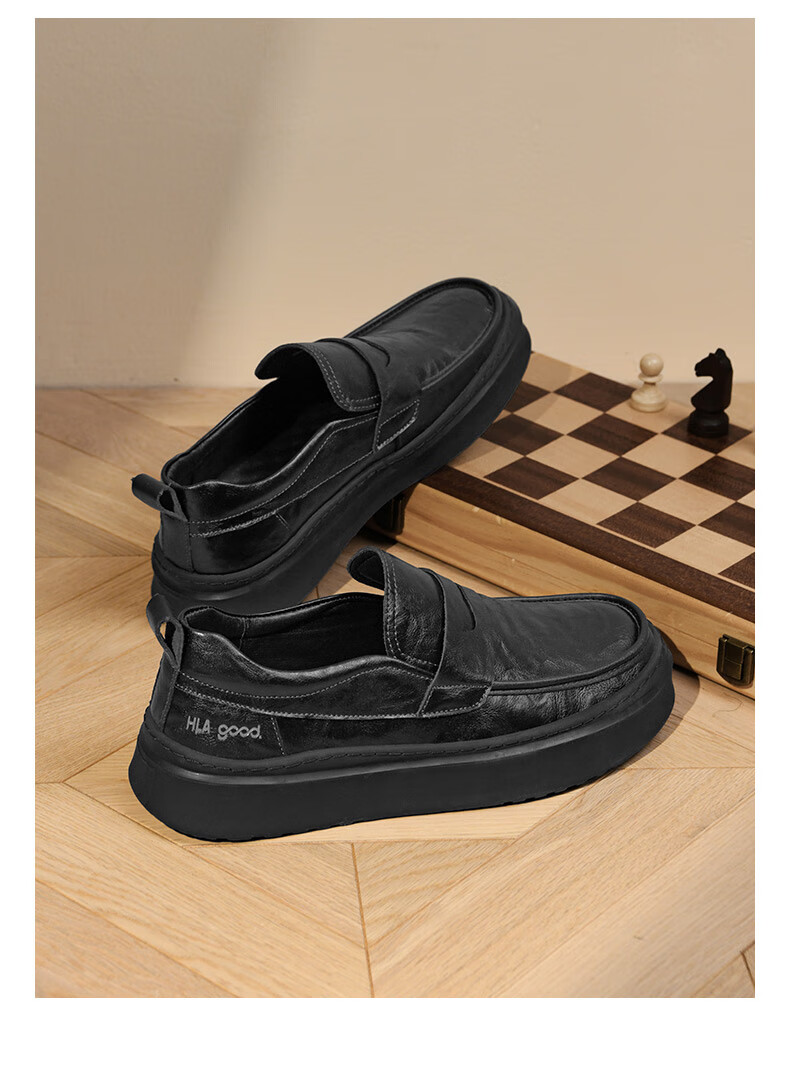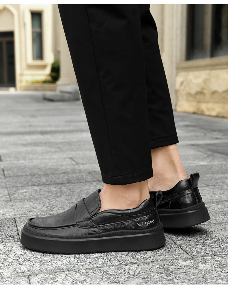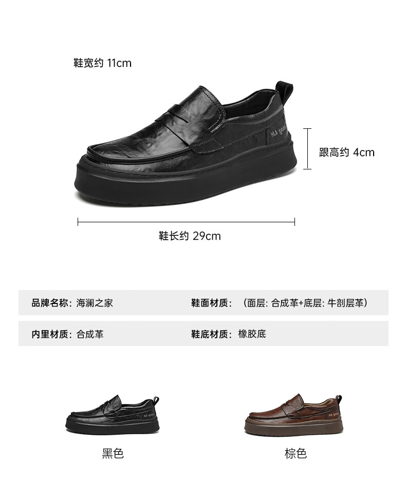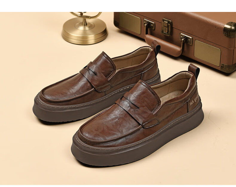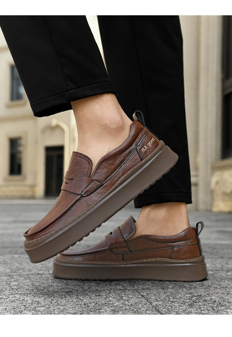 海澜之家豆豆鞋男商务休闲皮鞋男2025秋季厚底百搭潮懒人套脚一脚蹬鞋子男 棕色 41