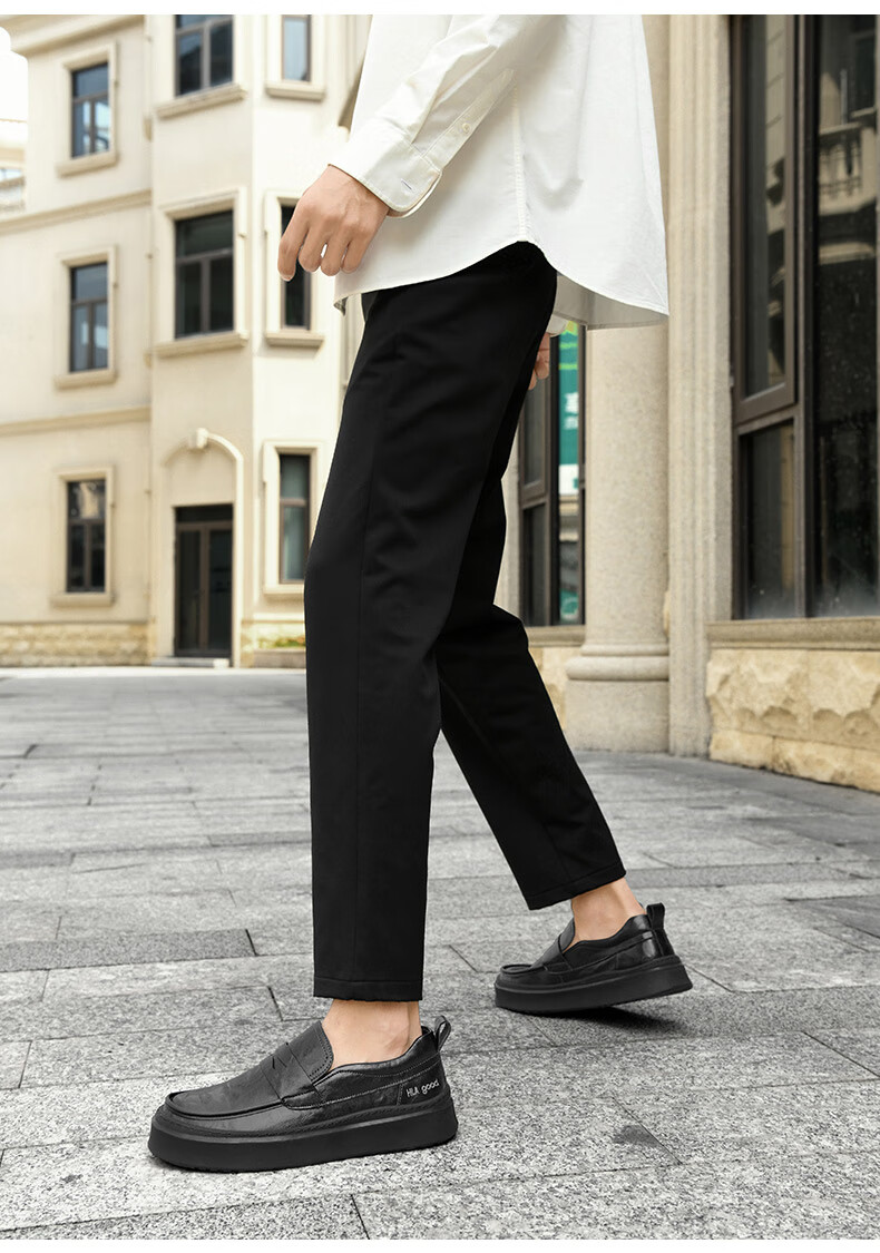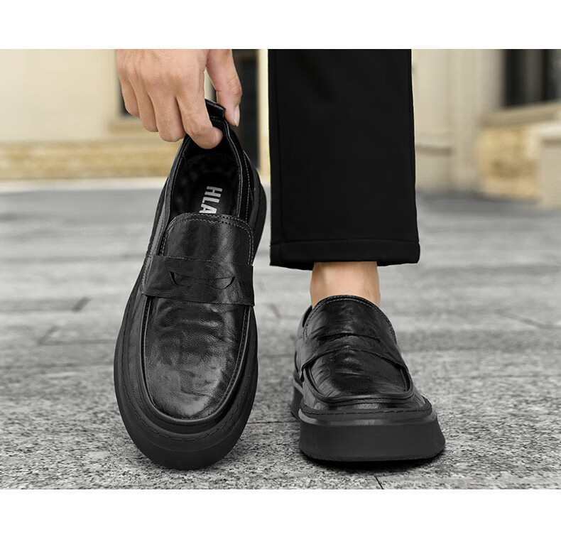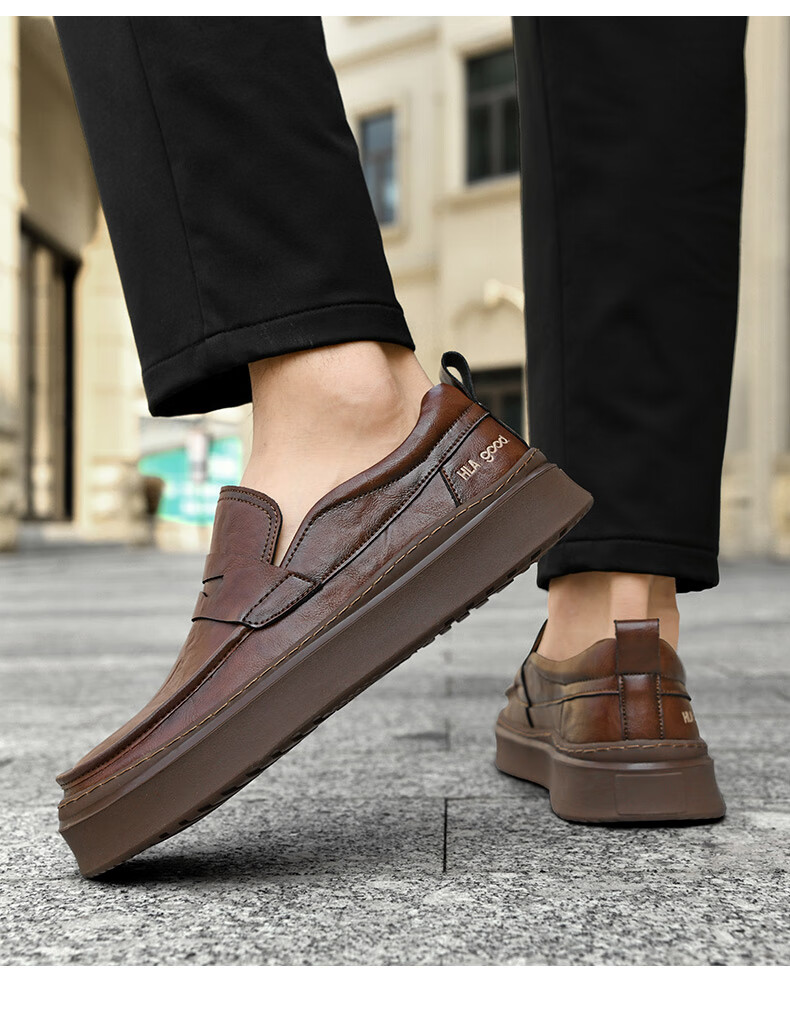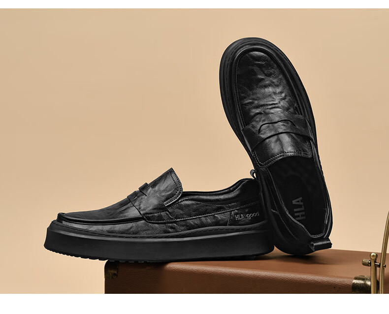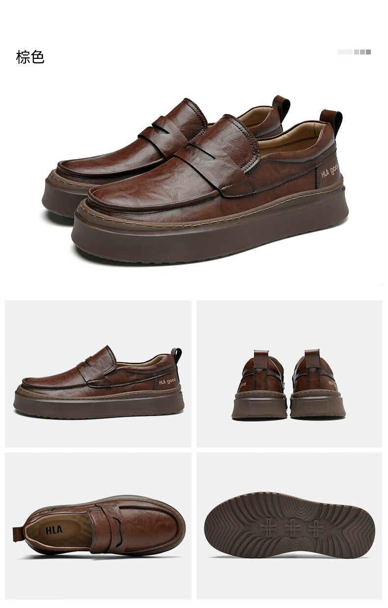 海澜之家豆豆鞋男商务休闲皮鞋男2025秋季厚底百搭潮懒人套脚一脚蹬鞋子男 棕色 41