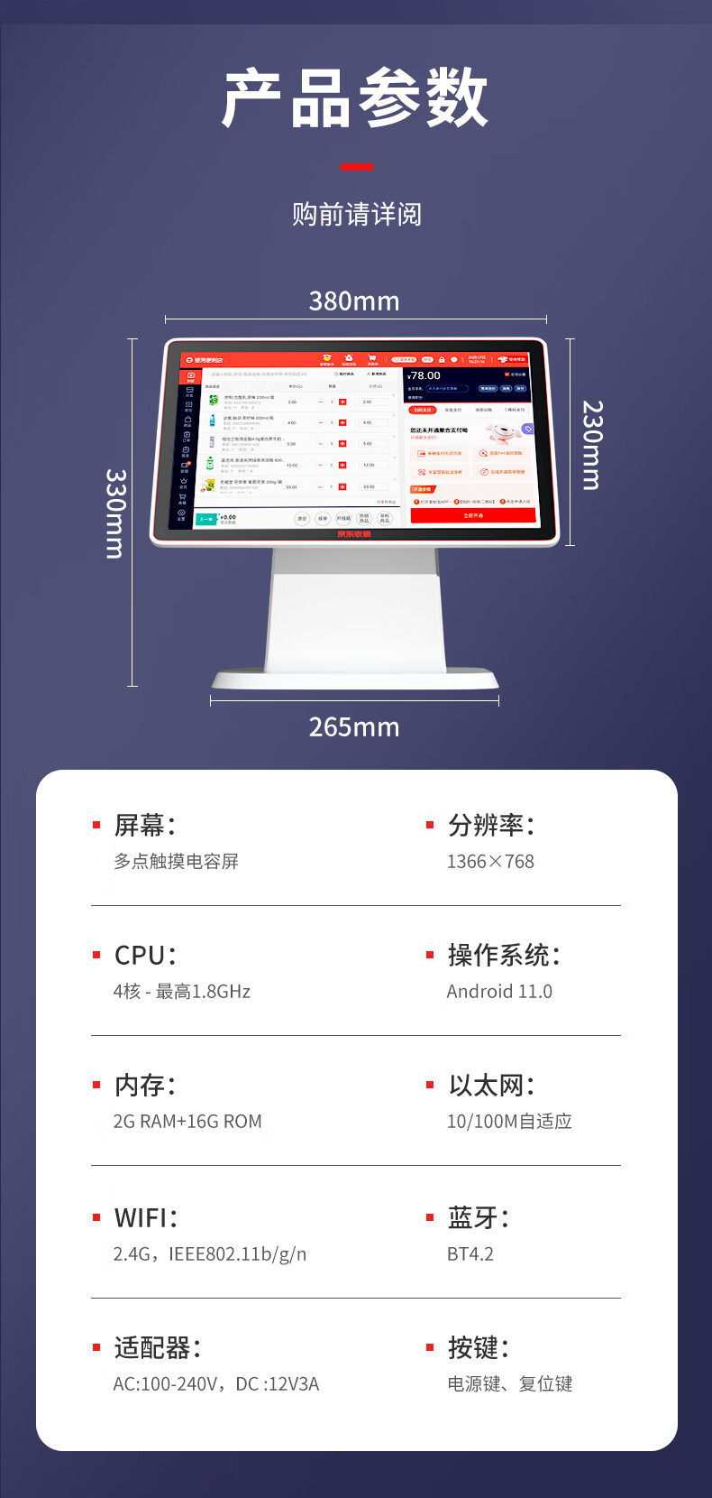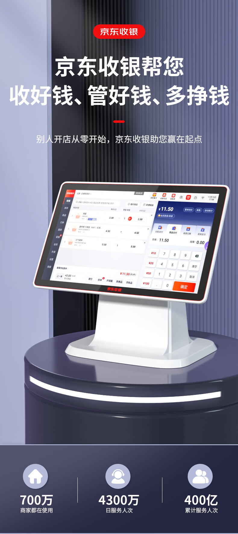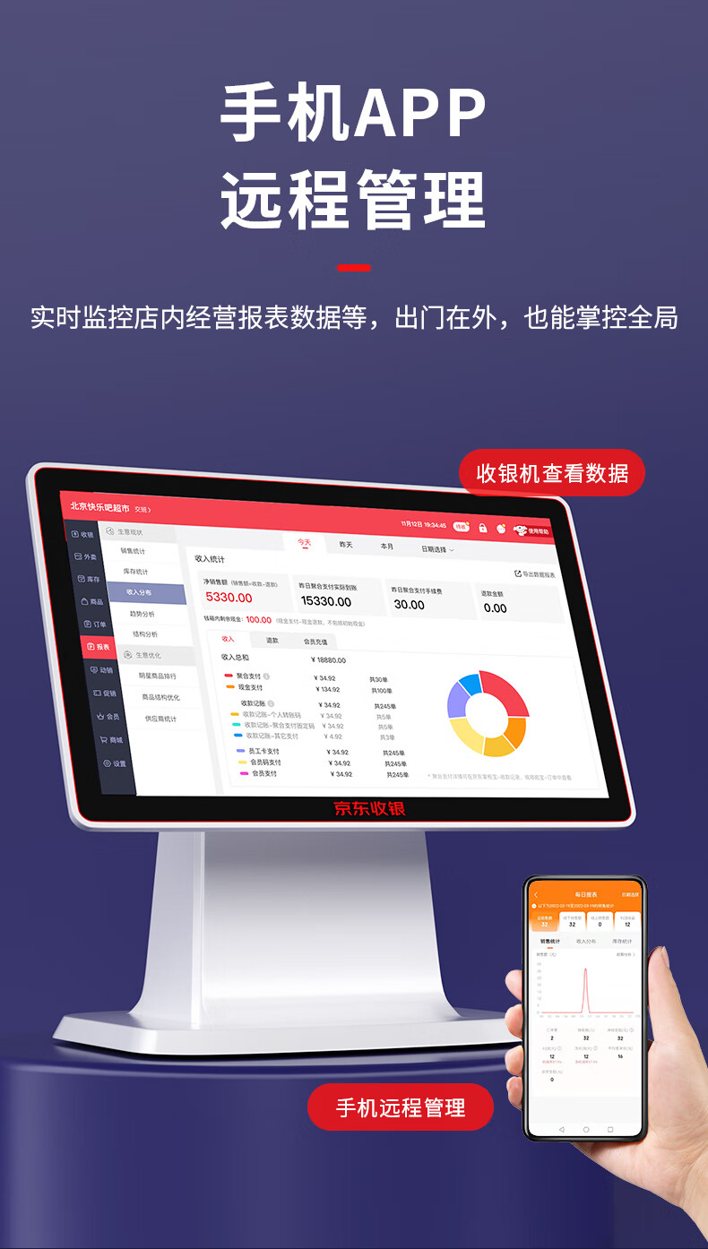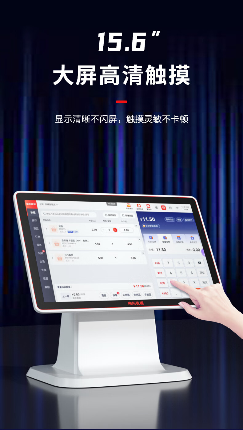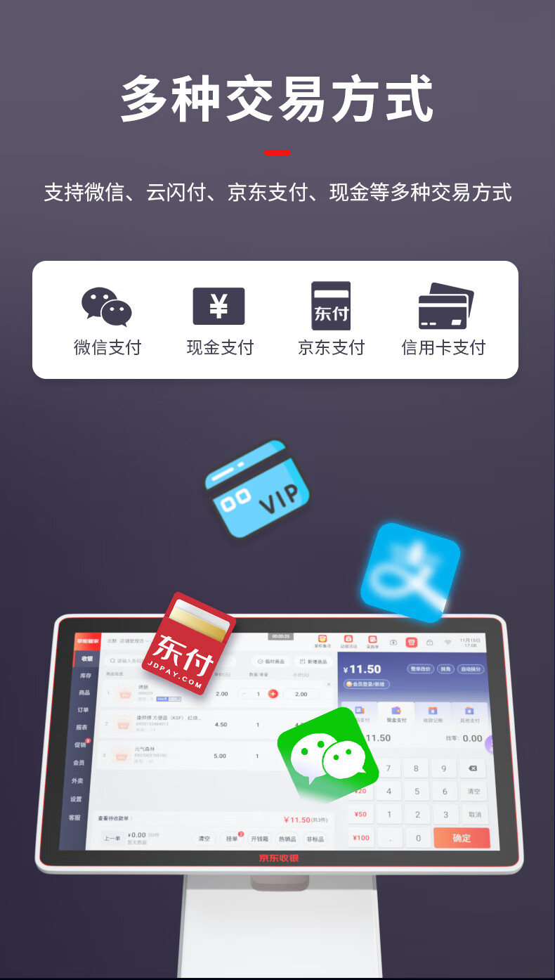 京东收银【新款】京东收银京东支付收银机 便利店超市商场果蔬零售 微信扫码支付收银系统 双屏+小票机+扫码枪+扫码盒