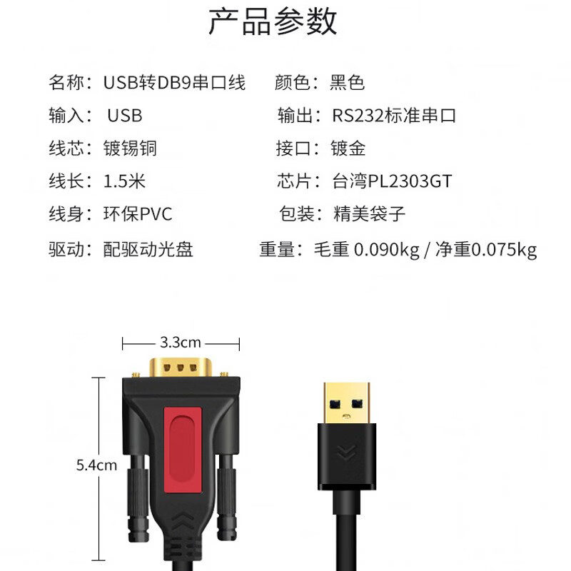 春程USB转串口线公头 USB转RS232线母头9针串口数据线 USB接口的电脑与各种串口设备连接线 数据转换器 USB转串口线母头镀金1.5米 黑色